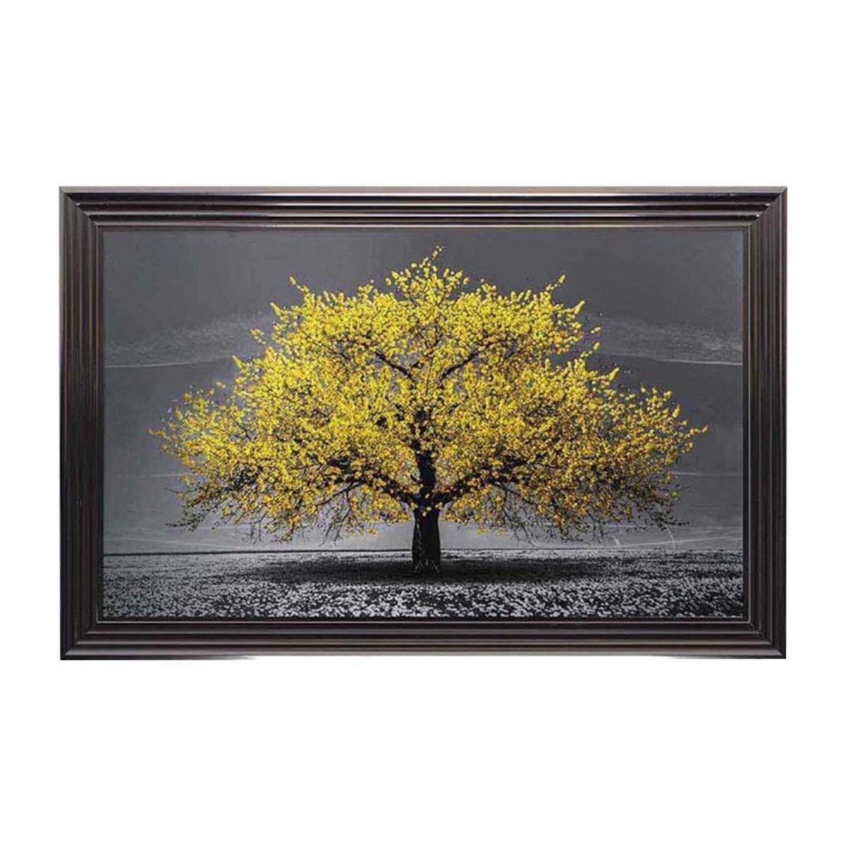 Decorative framed print depicting a yellow cherry tree. Embellished with hand-applied liquid art. In a high quality metallic frame. Our Cherry Tree framed picture is simply stunning. This piece of wall art will captivate attention with its vibrant yellow colour and hand-applied liquid art that glistens in the light. This piece of artwork is perfect for those wanting to add a pop of colour to their home. What’s particularly attractive is the way the yellow blossom stands out against the rest of the print, which is monochrome. Made in the UK, this framed print looks beautiful, especially when displayed with our other tree prints, the Blossom Tree framed art and the Money Tree framed picture. Some pieces of wall art can be fairly weighty, so make sure the wall you hang it on can support it. Dimensions. Width: 115cm (45 in). Height: 75cm (30 in). Depth: 4cm (2 in). Weight: 8kg.