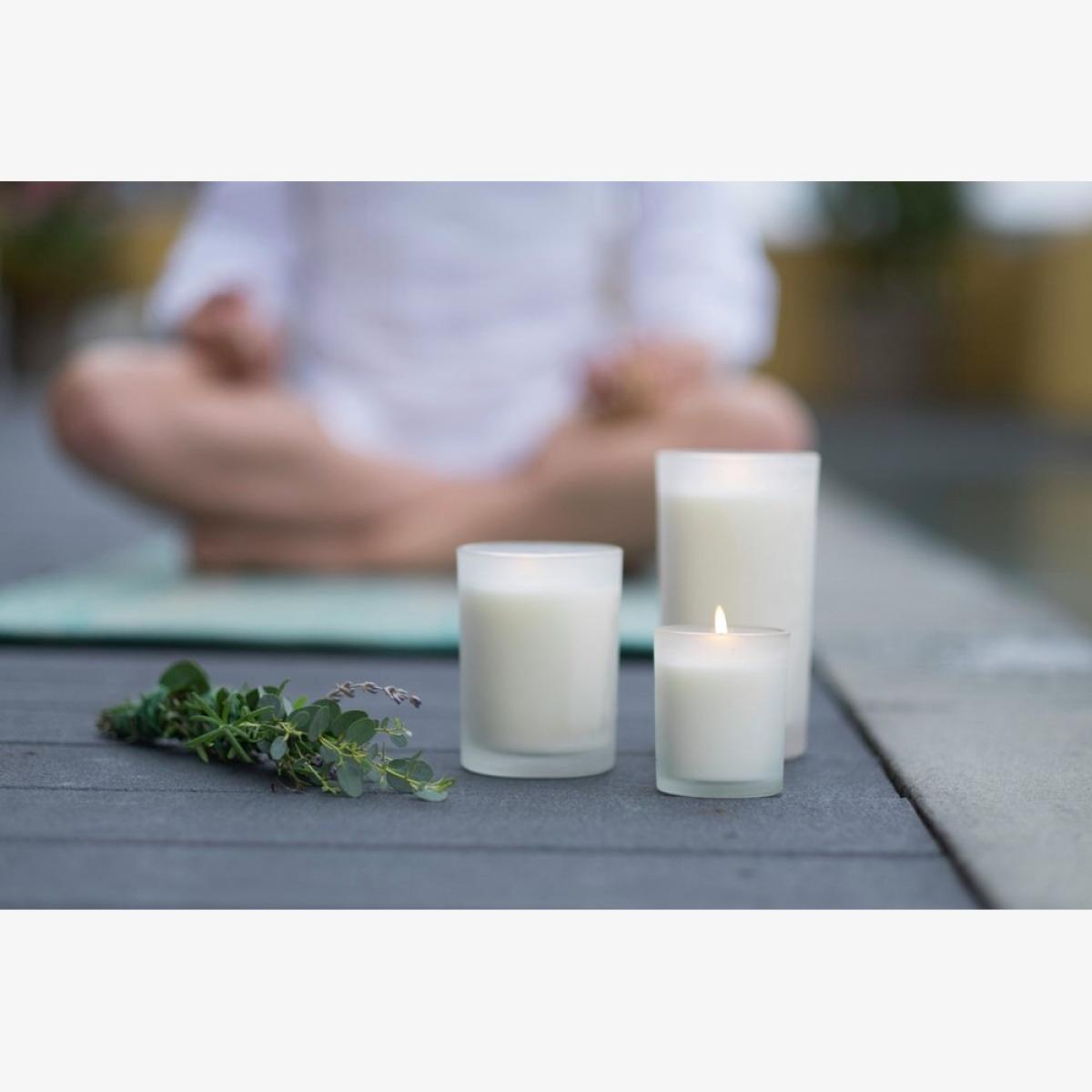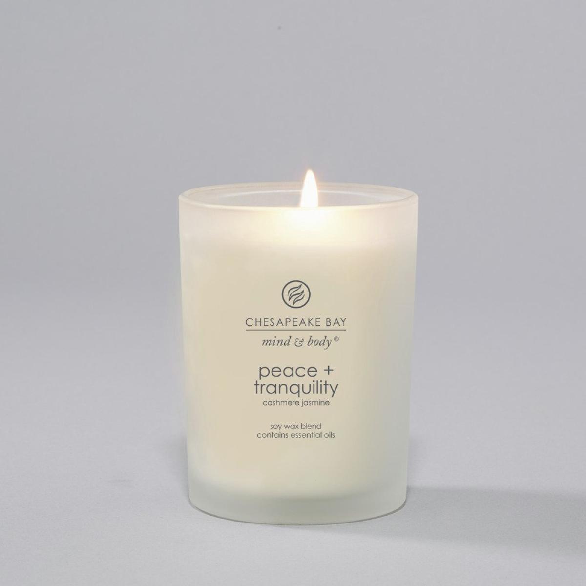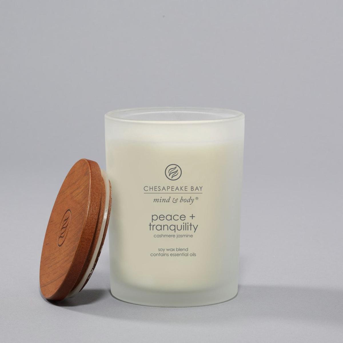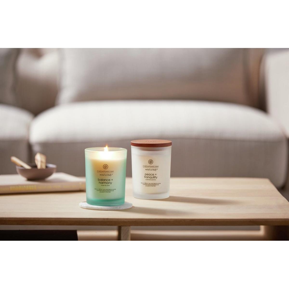 Our Chesapeake Bay Mind & Body Candles are infused with scents to help restore balance when consumers need to centre and self-reflect. The soft, sophisticated fragrances of our aromatherapy inspired candles are made with essential oils and a soy wax blend. The frosted glass vessels are designed in soothing tones, that complement the fragrances, and can help to create a peaceful environment with their colour and ambient glow when alight. The clean, simple design also includes a wood style lid to complement any decor. Soy Wax Blend for a smooth, even burn, 100% natural fibres, rigorously tested for the best burn possible. Beautiful frosted glass in soothing colours to help create a peaceful environment. Peace & Tranquility (Cashmere Jasmine) scent. Soy wax. Approximate burn time 57 hours. Size H11.4, Diameter 8.3cm.