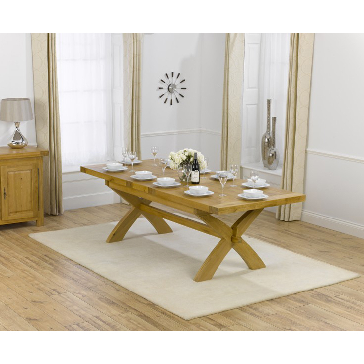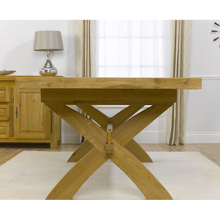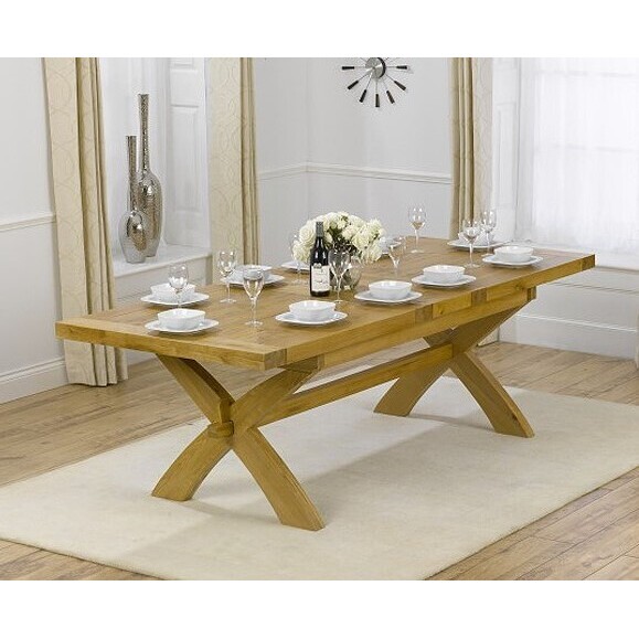 A stunningly robust fusion of traditional elegance and durability, the Cheshire 200cm Solid Oak Extending Dining Table is perfectly practical and uncompromising on style. Comfortably seating 6 people without the extension and 8 people when extended, the table is brilliant for everyday dining and special occasions. Beautifully crafted from solid oak, the Cheshire Table is finished in a light protective lacquer, bringing a subtle sheen to the oak and highlighting the natural depth and beauty of the wood. Curved, crossed legs bring a sophisticated twist to this remarkable table while providing reliable support to the thick surface. When occasions arise that require extra space, the Cheshire Table couldn’t be easier to extend. The table separates at the centre, revealing the oak extension panel that swivels up and slots into place, extending the table to an impressive 240cm. When not in use, the panel is stored internally. The Cheshire Dining Table is also available with a variety of chairs.