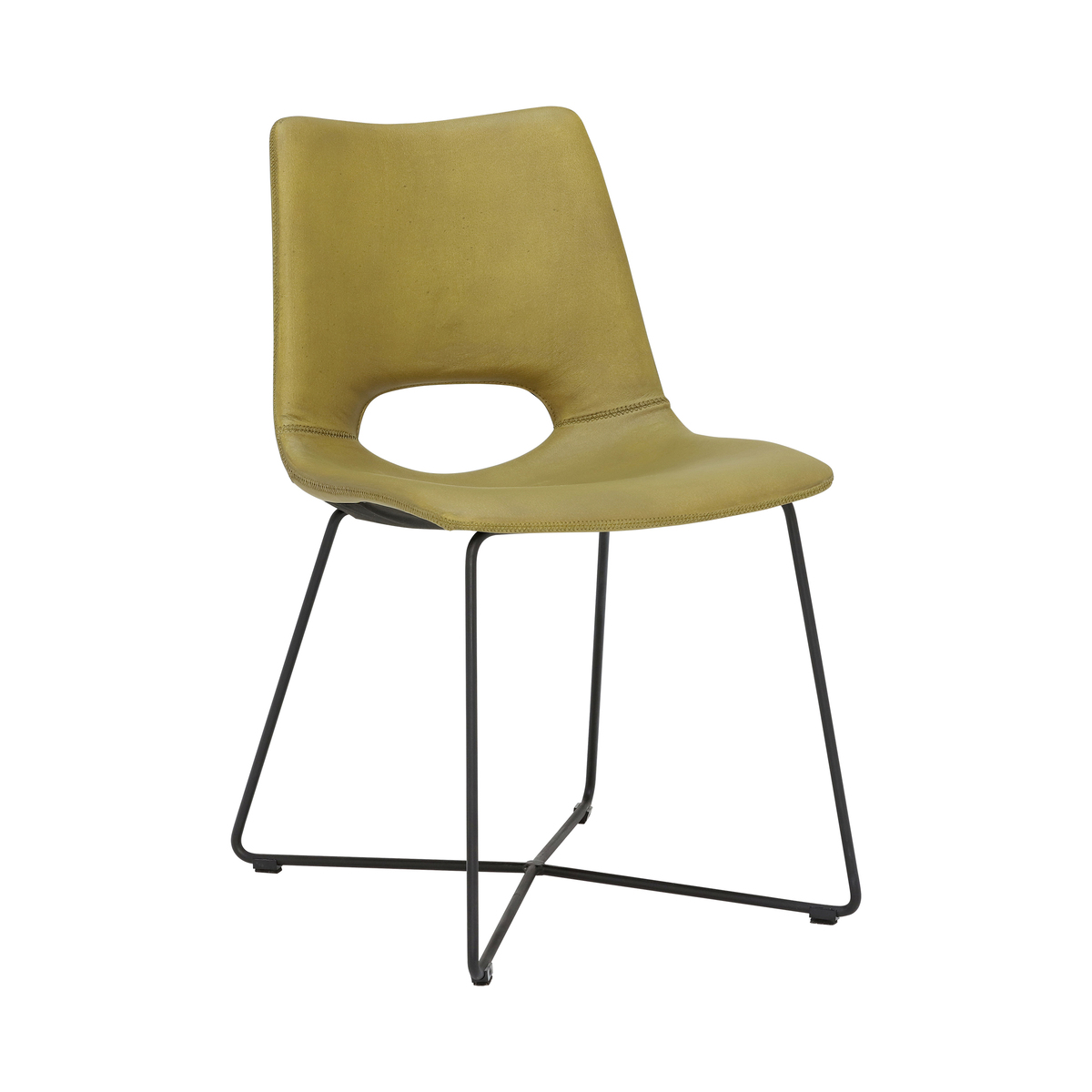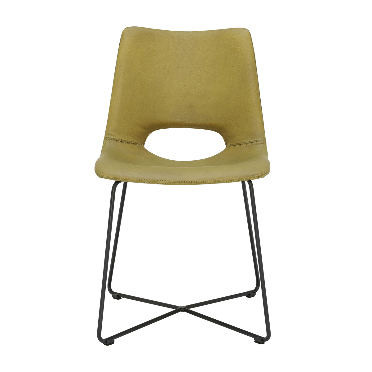 Bring a stylish edge to the everyday with the Chesil leather dining chair. Its seat is expertly sculpted and padded with foam for a supremely comfortable experience, while slim metal legs with a criss-cross base ensure excellent stability. This modern dining chair can be upholstered in a range of hand-coloured leathers, so you can create the look you want with ease. Finished with exposed stitching and a cut-out back, this is a piece that stands out above the ordinary. Shown in Lime Matt Leather with Matt Black Metal legs.