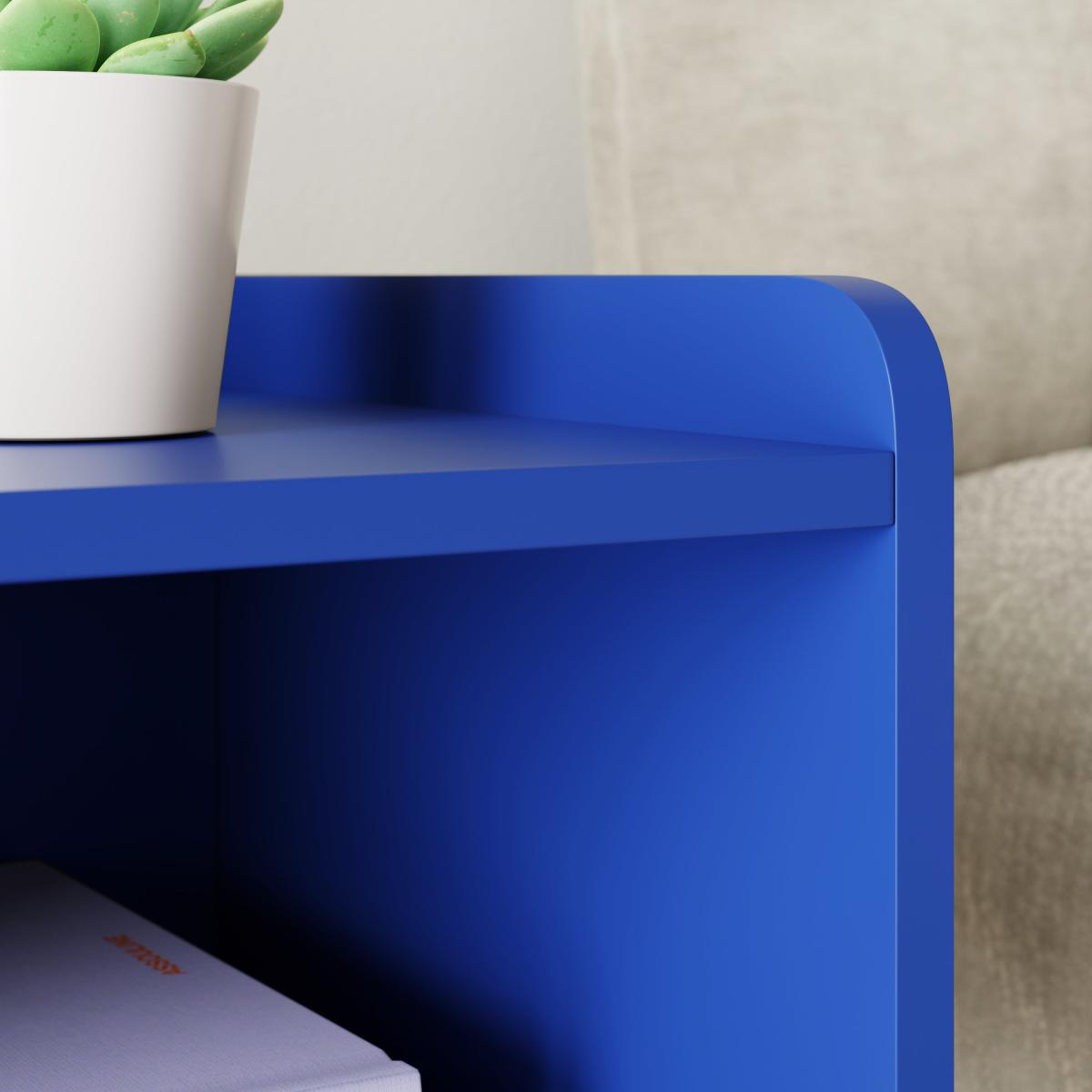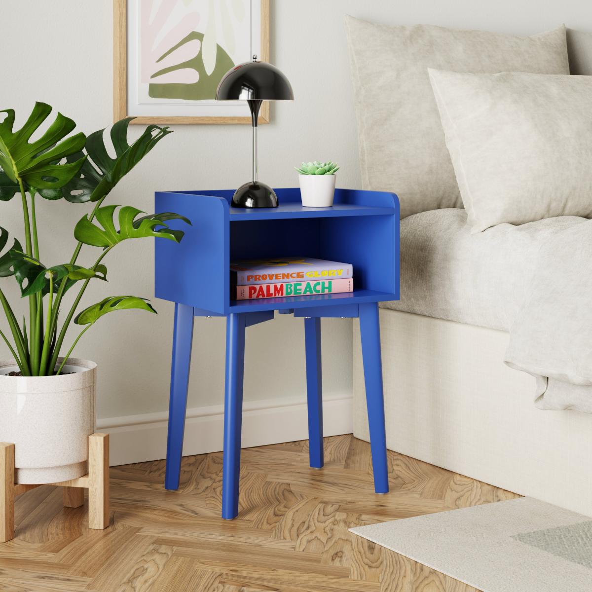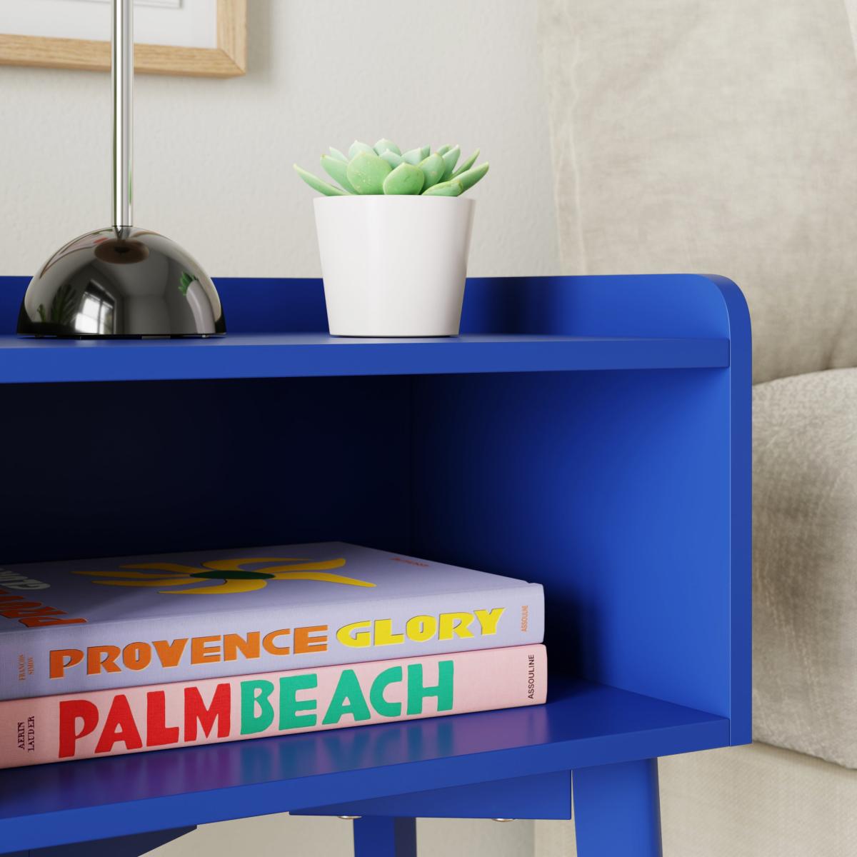 I love this blue bedside, as it adds a bold yet versatile pop of colour that works particularly well in both modern and eclectic interiors. The rich blue finish makes it a standout piece without overwhelming a space, so it pairs beautifully with neutral bedding or a patterned bed linen. Practical styling tips include keeping the top surface uncluttered with just a lamp or a favourite book, and using beneath the drawer for storing essentials like chargers or bedtime accessories. Its sleek, clean lines lend themselves well to contemporary settings, but it can also bring a fresh touch to more traditional bedrooms when styled with other colourful accents or natural textures.