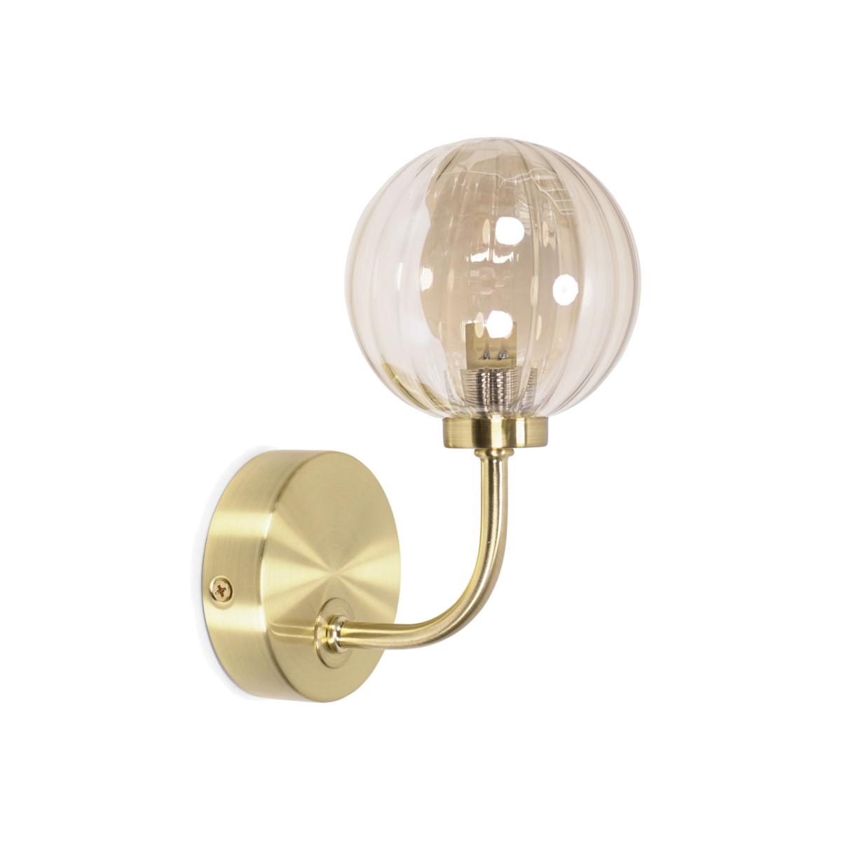 Chessy Ribbed Glass Globe Shade Gold Stem Wall Light with LED Bulb - Gold