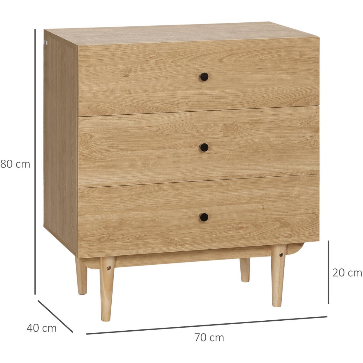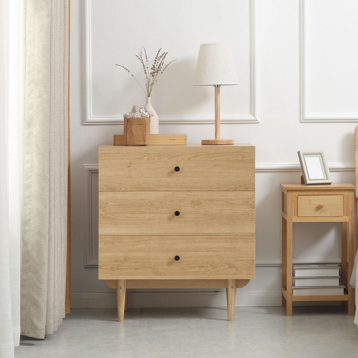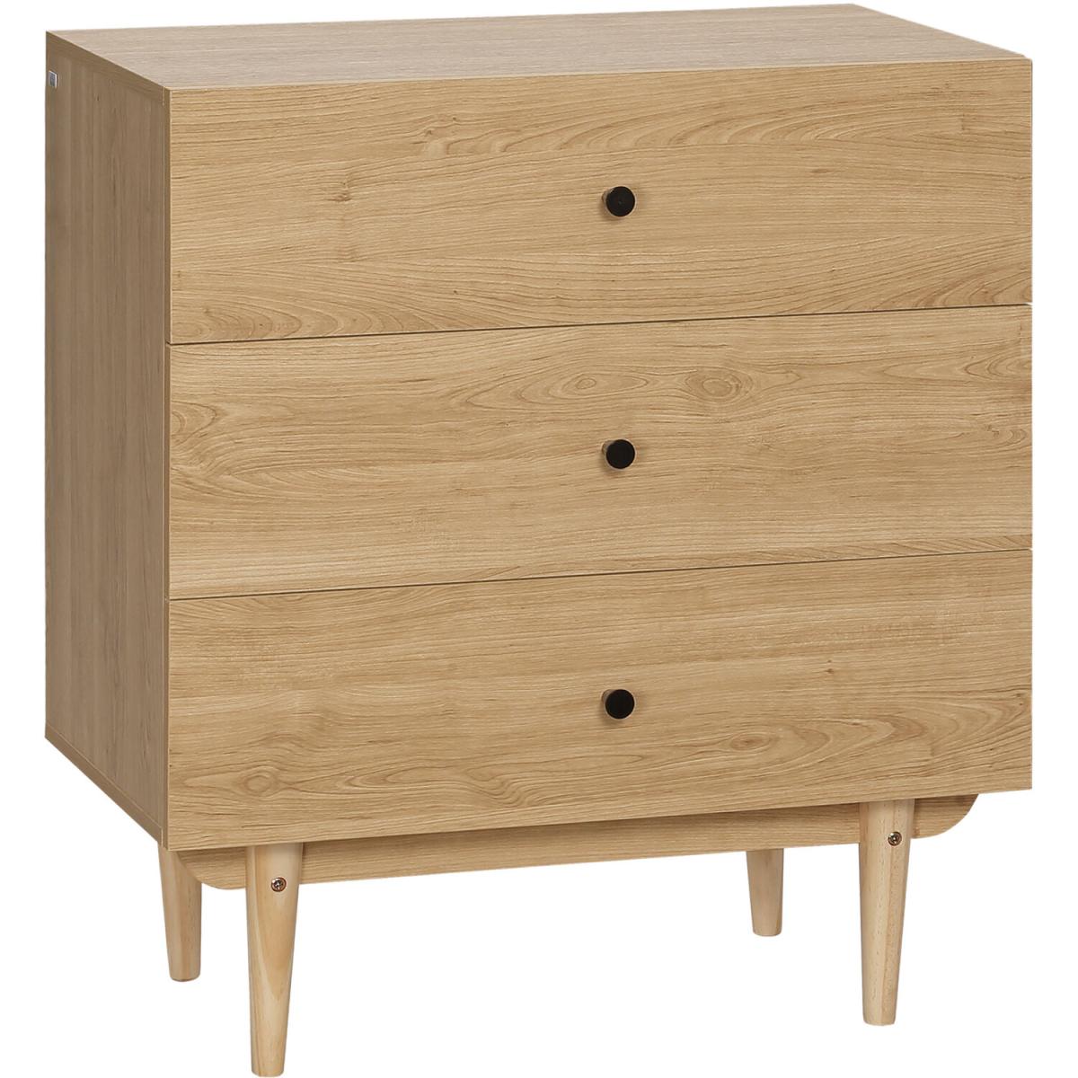 Chest of Drawers 3-Drawer Dresser Storage Organiser - Wood-Effect - Natural wood finish