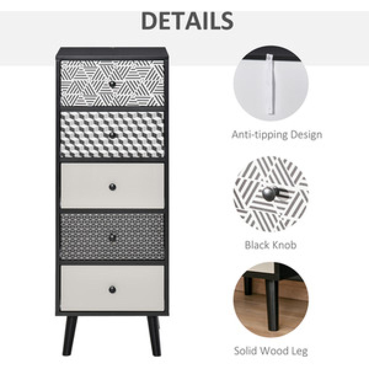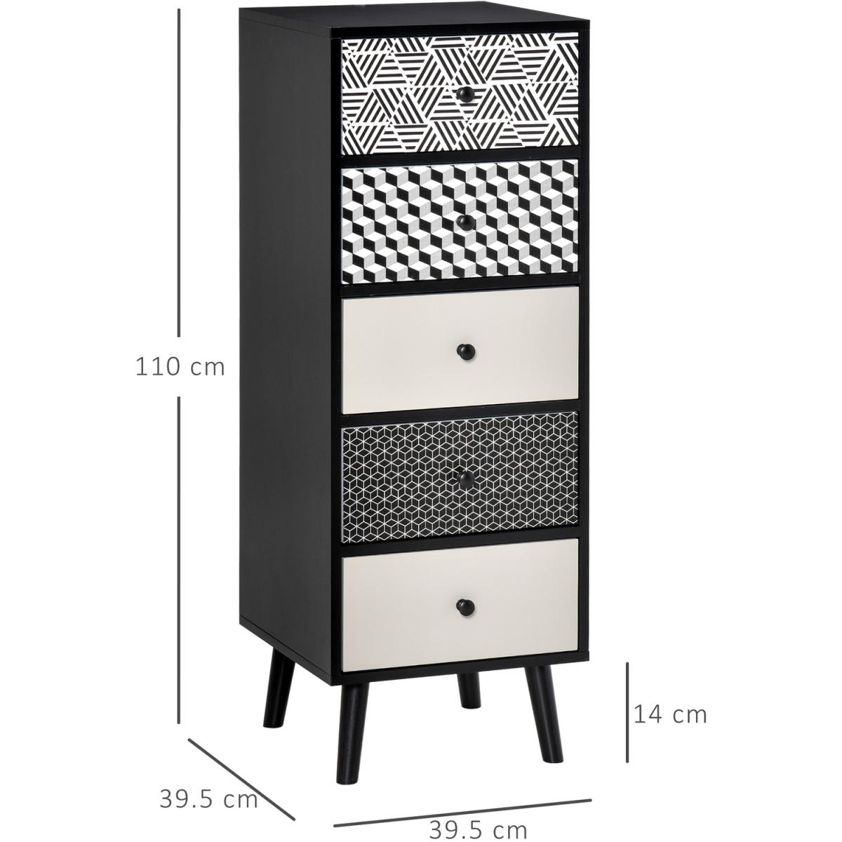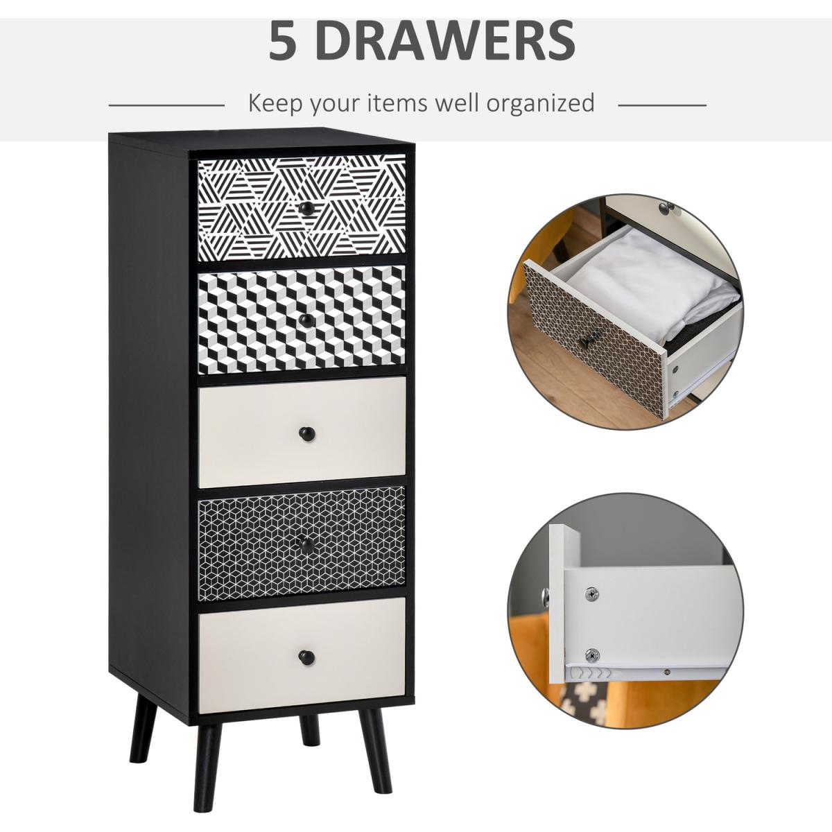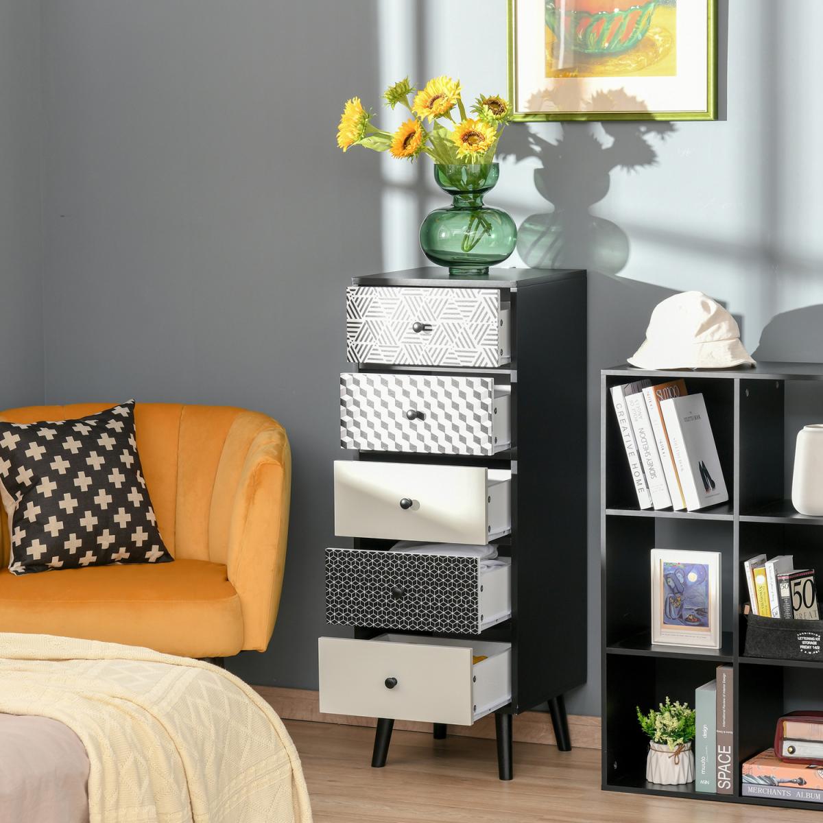 Add unique character and interest to any area of your home with this drawer dresser from HOMCOM. Its narrow footprint makes it an ideal addition to small spaces, providing much-needed storage without taking up too much space. The 5 pull-out drawers have the ability to organize clothes, beddings, and other essentials. Whether it's for the bedroom, the living room, or even the attic, this is the piece to stand proud in place.