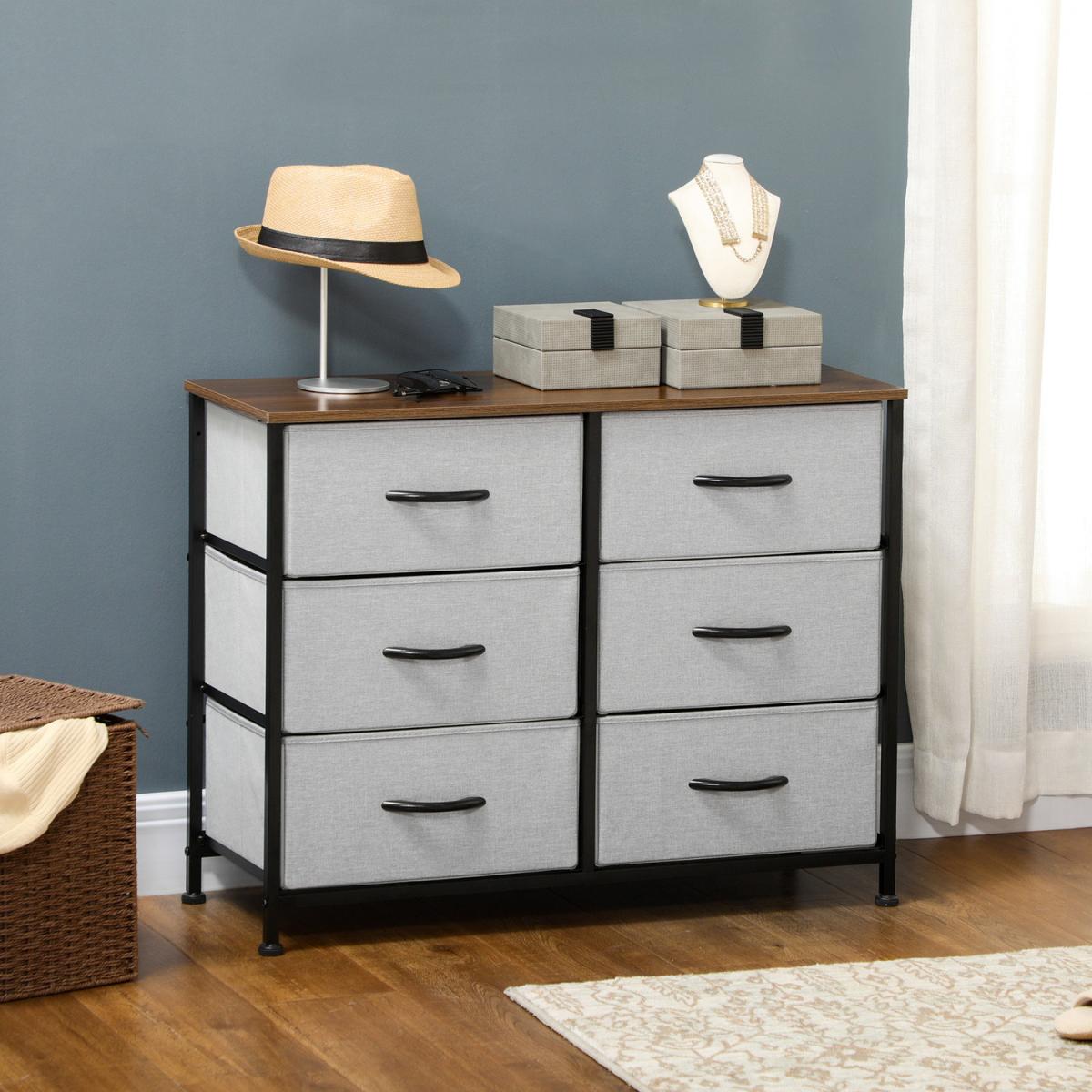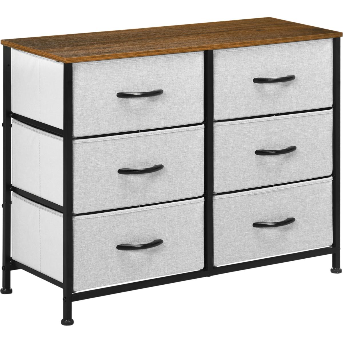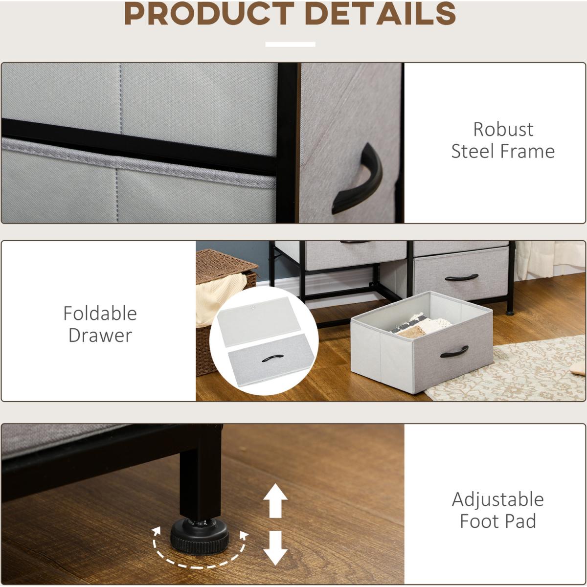 Home storage with this HOMCOM fabric chest of drawers. The eight fabric drawers offer room for lots of things - keep t-shirts, tops, bottoms and more organised. The large space also makes it suitable for shared use. The wood-effect top offers more room a great place to display your favourite photos. The steel frame makes a strong core, with adjustable feet for balance. Comes with anti-tipping straps for safety. Use all over the home and office.