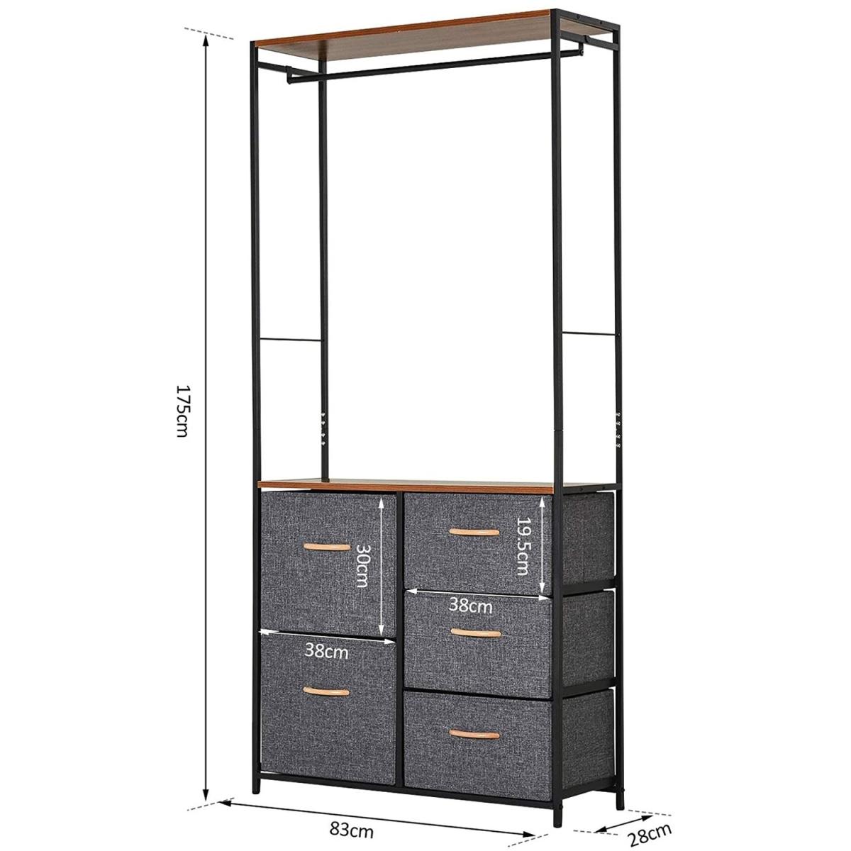 Say hello to an easy and simple way to organise the bedroom and beyond thanks to this storage organisation unit from HOMCOM. It is formed of two parts: a top hanger for clothes and coats, two large material drawers and three small material drawers which are perfect for keeping shoes, bags and foldable clothing. The frame, made from steel, ensures a sturdy structure that can support up to 45kg and is finished with a smooth particle board shelf for extra holding room and four small feet for balance.