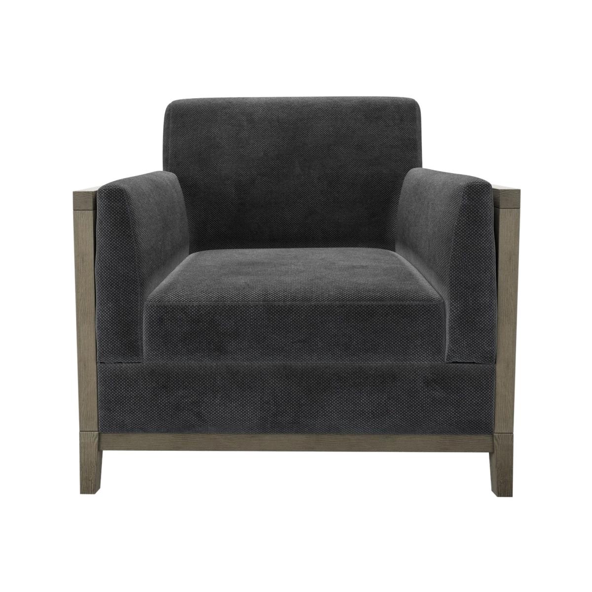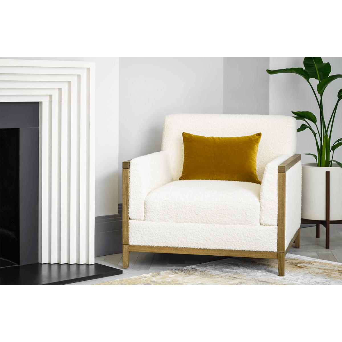 I love this armchair for its bold, textured silhouette and versatile shade of raven speckled chenille, which adds depth without overwhelming a space. It works particularly well in contemporary and transitional interiors, where its understated elegance complements modern furnishings, but it can also soften eclectic or mid-century schemes. Styling tips include pairing it with neutral or monochrome cushions to let its fabric and frame stand out, or mixing with rich textures like velvet or leather for layered interest. Its compact size makes it ideal for reading nooks, guest rooms, or lounge areas, and placing it near a side table with a cosy throw or statement lamp can create a welcoming, stylish corner.