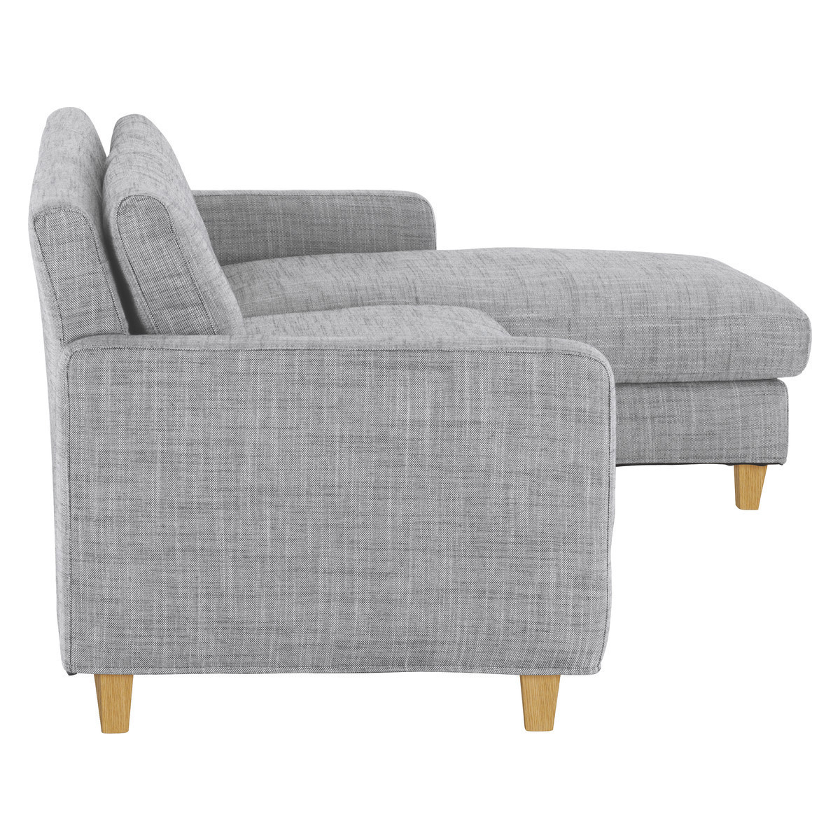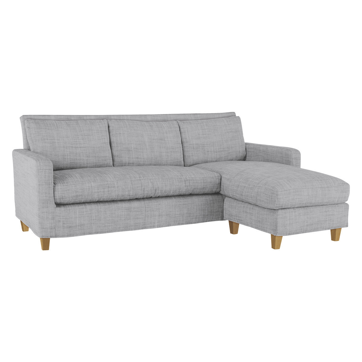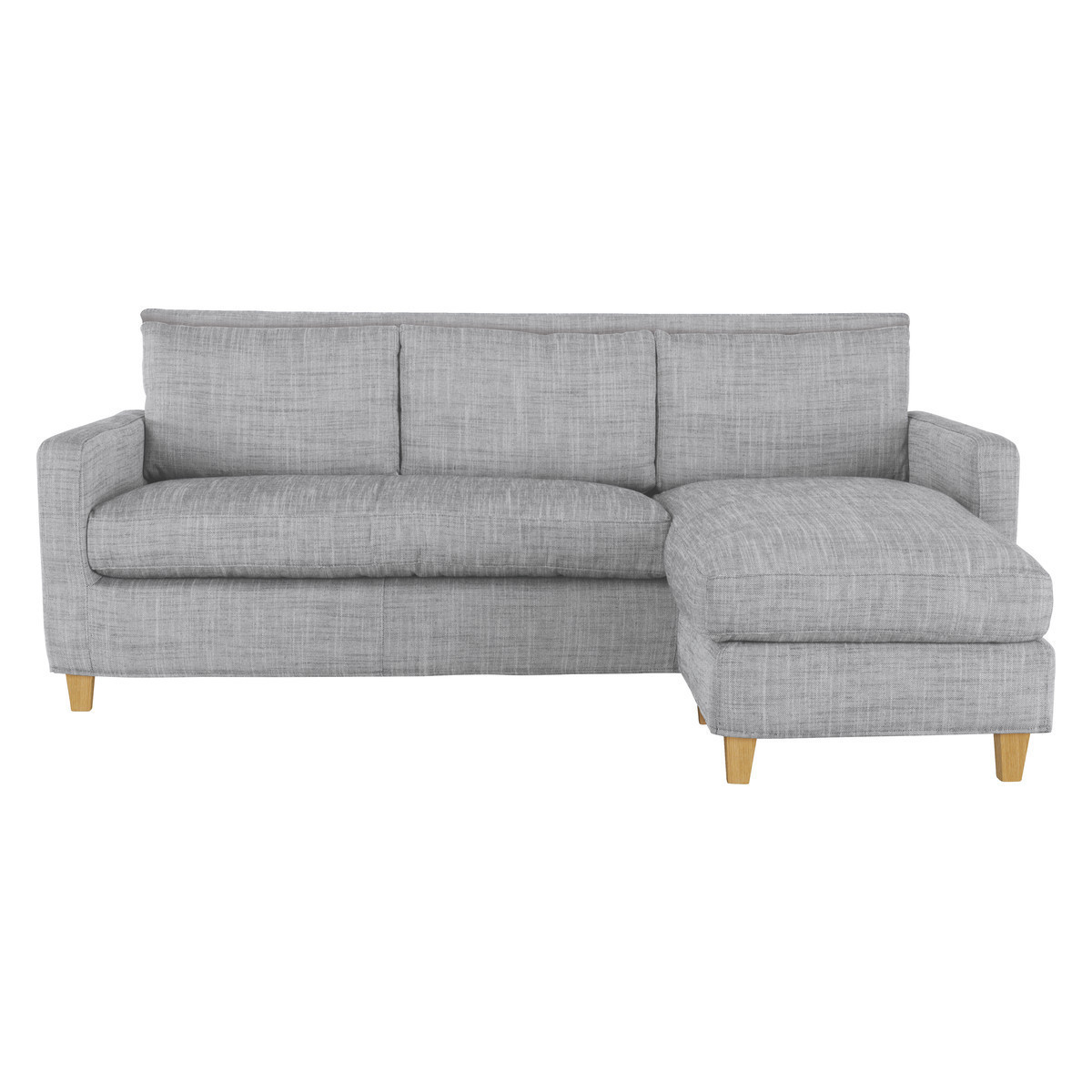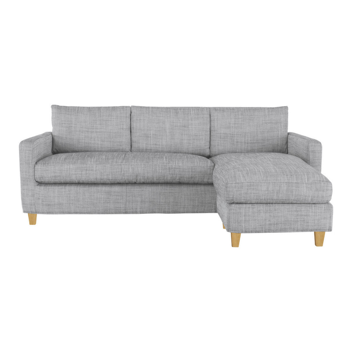 Lounge in style with this Italian made Chester black & white 3 seater chaise sofa, which features a slim profile and a feather and fibre seat cushion, for a classic and timeless look. Designed by Matthew Hilton for Habitat and is fully upholstered in a removable, durable cover with oak stained feet. Versatile in design, the longer chaise part of the sofa can be placed on the left or right side to suit the shape of your space. Part of the Habitat bestselling classic Chester sofa range, available in leather and fabric options, in various sizes and colours and with oak stained or dark stained feet.
