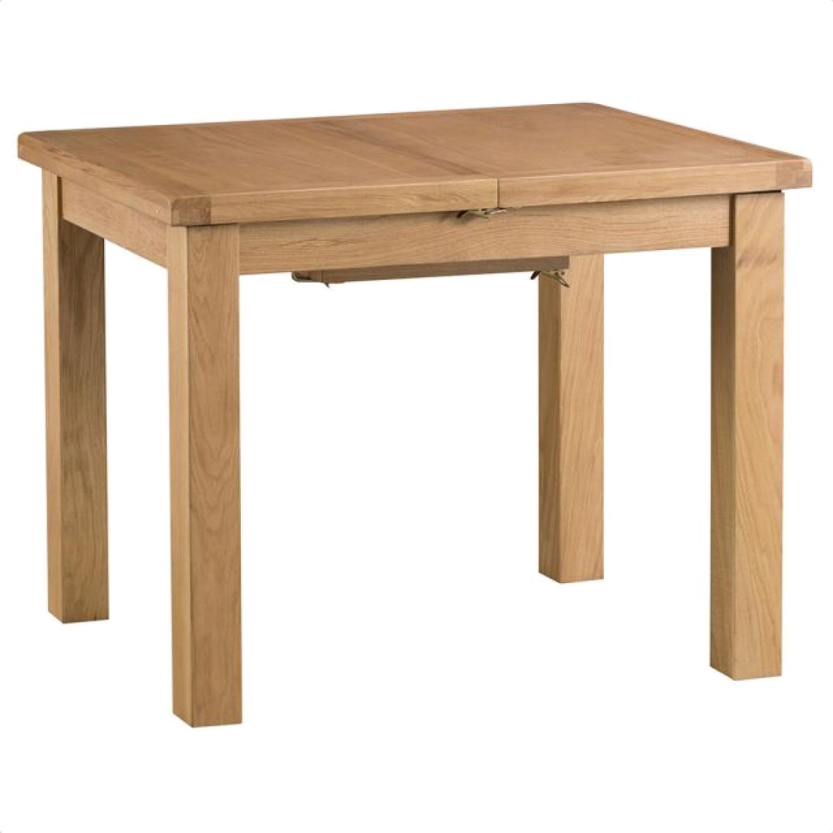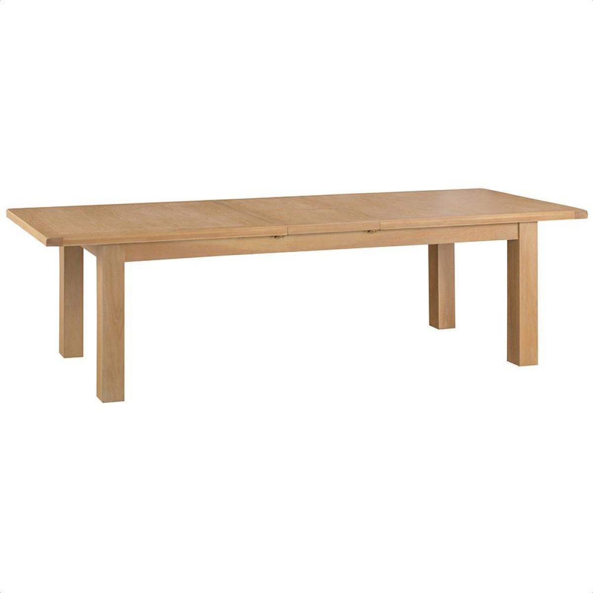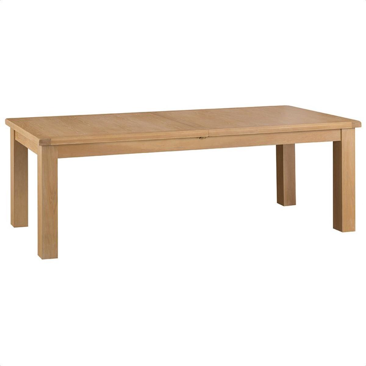 Crafted from a solid oak frame with real oak veneers, The chester dining table collection will look great in traditional or modern settings. Resting on 4 chunky table legs, the 2 sections on the table top open up when required to reveal 2 butterfly extension leaves, thus increasing your seating capacity. Available in 4 different sizes, there is an oak dining table to suit dining rooms and kitchens of all sizes. Pair the chester oak dining table with a coordinating Chester Dining Chairs (sold separately) and you can dine in style. Solid oak frame Real wood veneers Assembly required Dimensions:1m Table - 100cm-140cm W x 75cm D x 78cm H1.3m Table - 125cm-175cm W x 85cm D x 78cm H1.8m Table - 170cm-220cm W x 90cm D x 78cm H2.4m Table - 240cm-290cm W x 95cm D x 78cm H All screens vary in colour reproduction and whilst every effort has been made to display the colour as accurately as possible it is for guidance only.