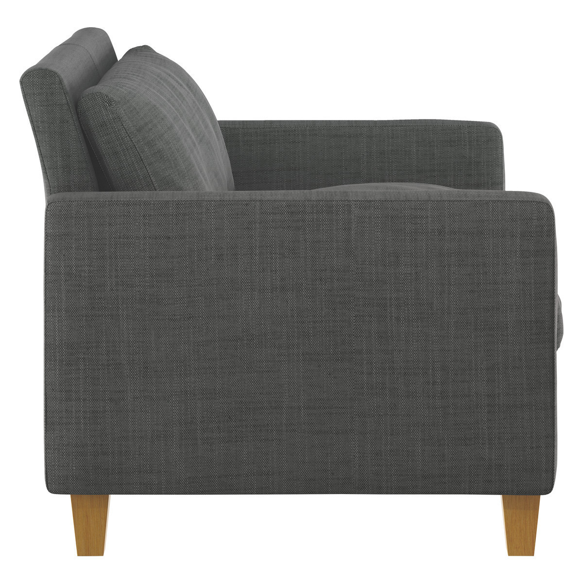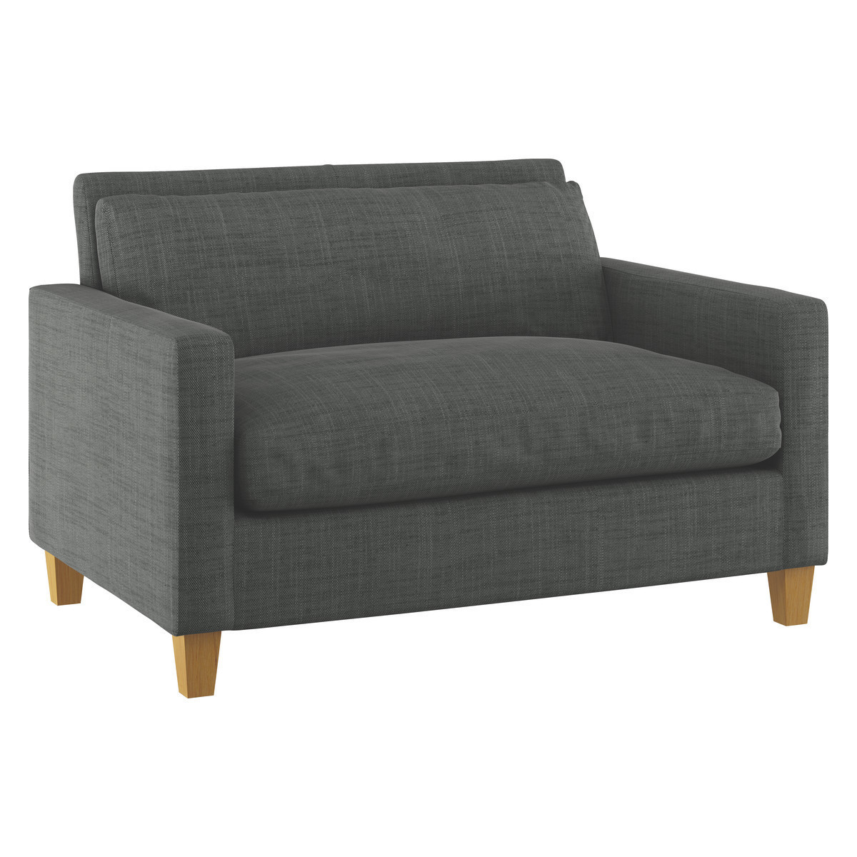 Chester Charcoal Grey Italian Woven Compact Sofa, Oak Stained Feet, Charcoal