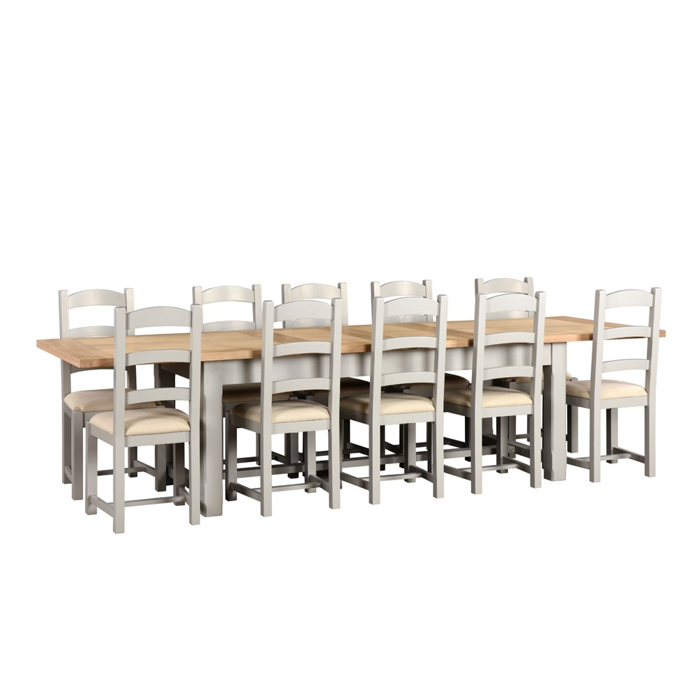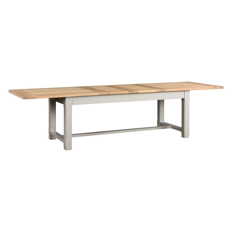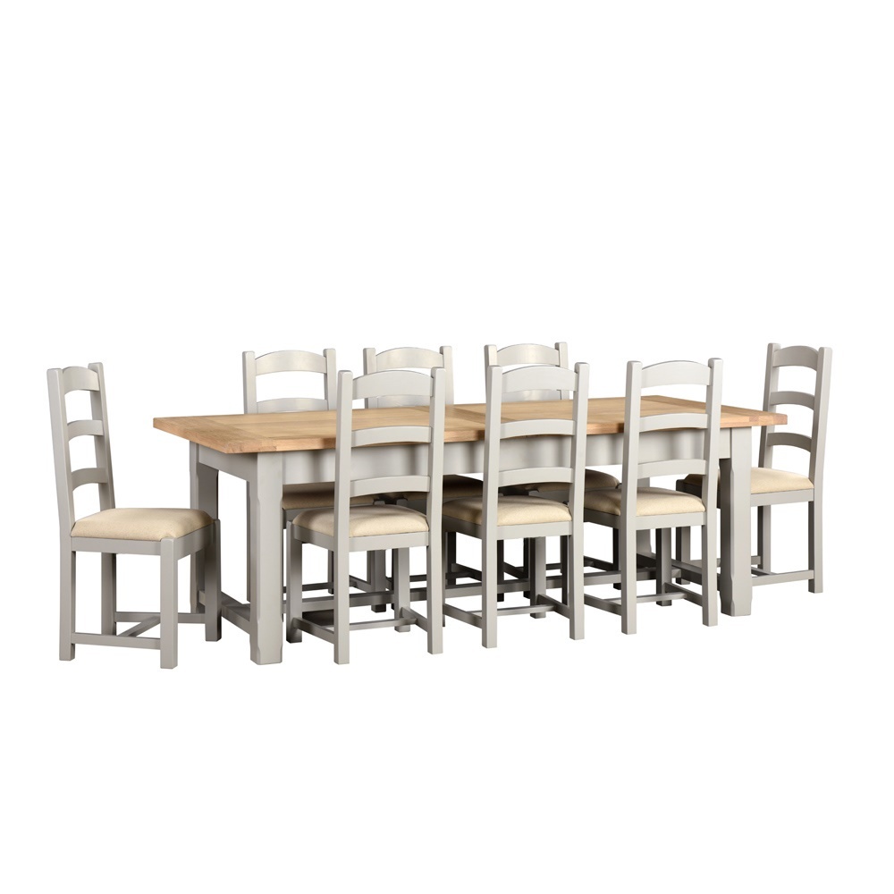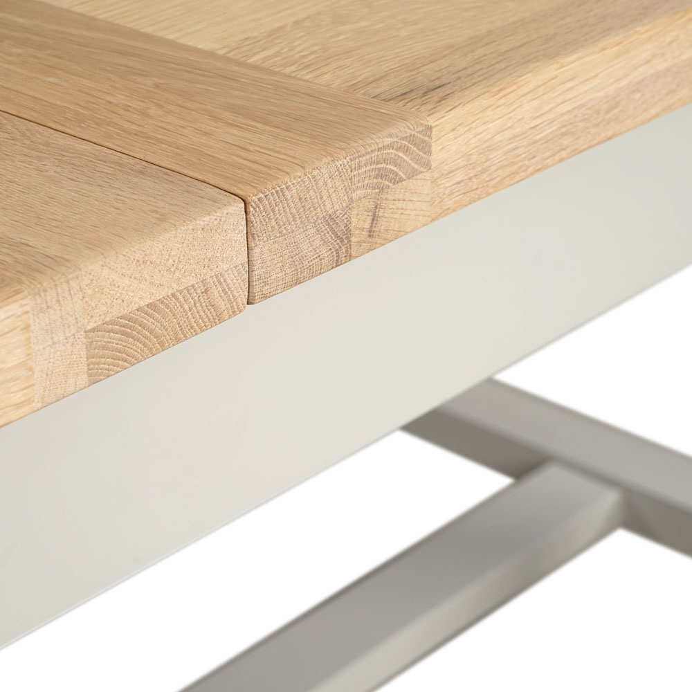 At 220cm, this expertly crafted dining table is already ideal sized for everyday dining, but when you have guests round for dinner or a party, you can extend it to 265cm. And if yet more people turn up, it has another trick up its sleeve - it can go up to 310cm to create an eye-catching centrepiece that will easily seat ten. The durable oak and high quality oak veneer surface has been waxed to bring out the grain and shrug off spills, while the grey paint finish on the frame enhances its contemporary country-style appeal. And because you're going to need chairs - a lot of chairs. May we suggest our Chester Dove Grey dining chairs? They'll finish it off beautifully.