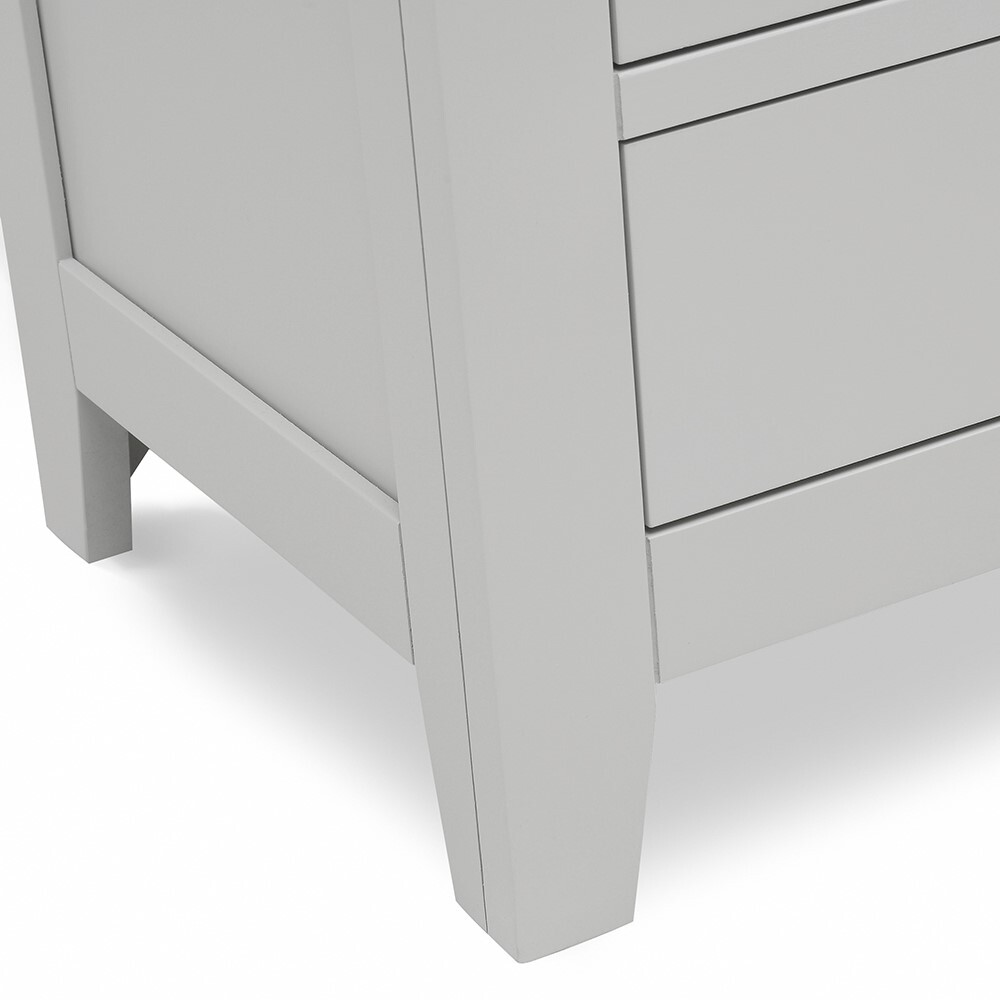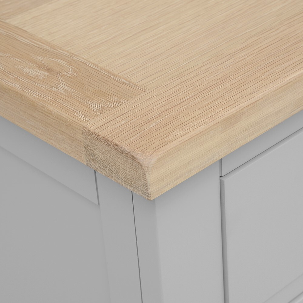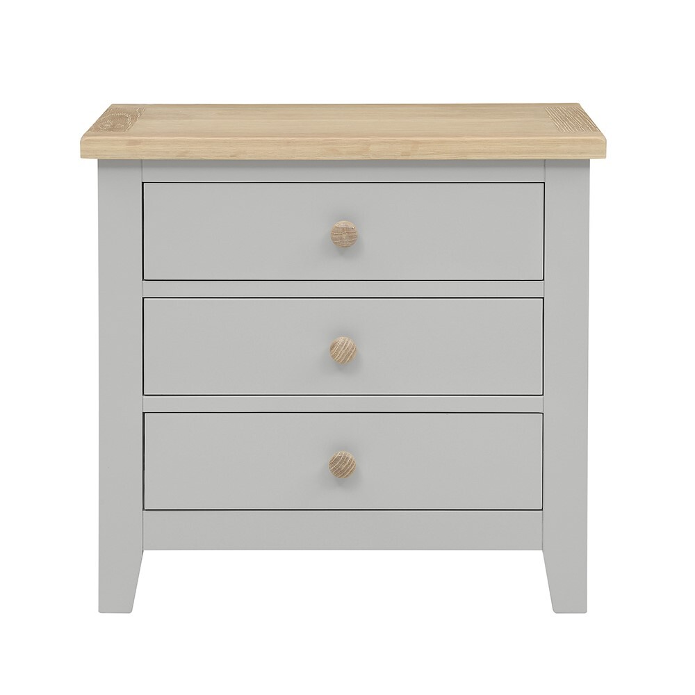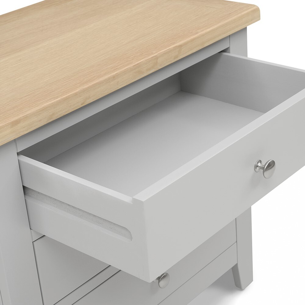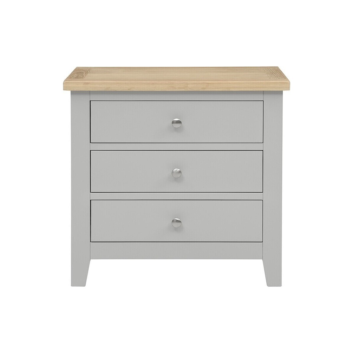 Just think how smart this handsome bedside table will look standing beside one of our Chester Dove Grey beds. And of course, one for the other side wouldn't go amiss either. In a chic grey paint finish with a lacquered oak and high quality oak veneer top, it also has three handy drawers with polished metal handles to keep all your night-time essentials stowed away but close to hand.
