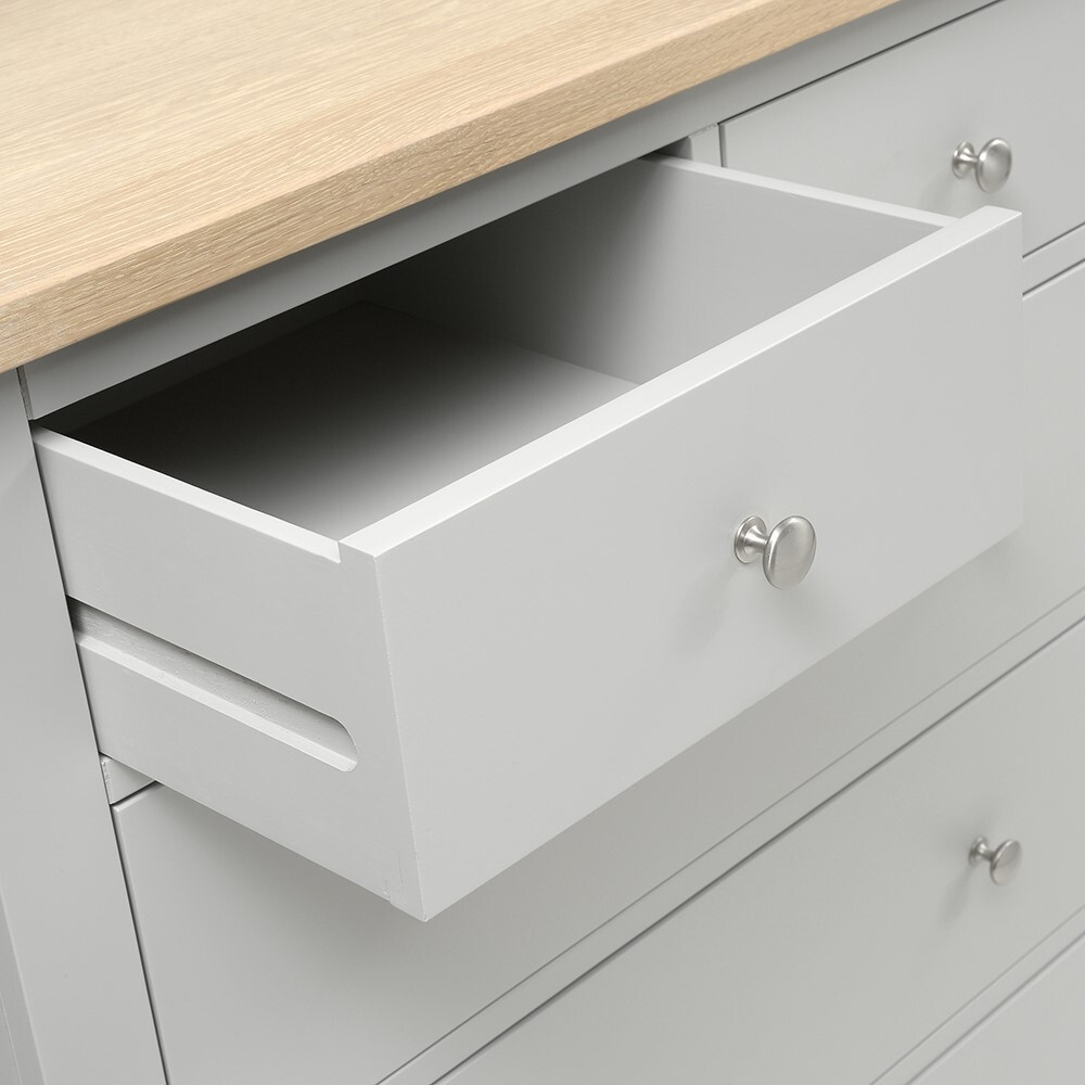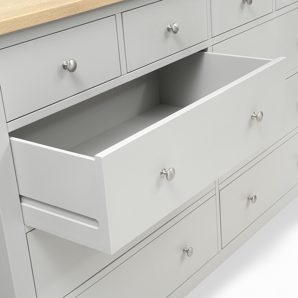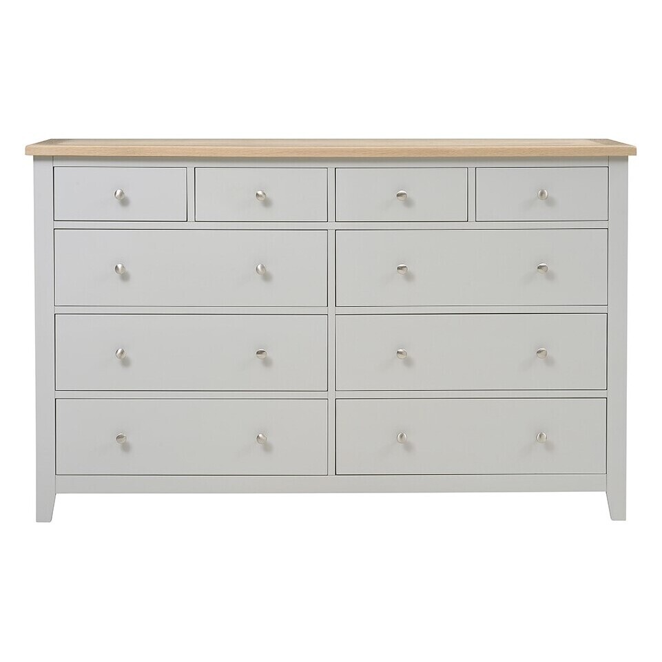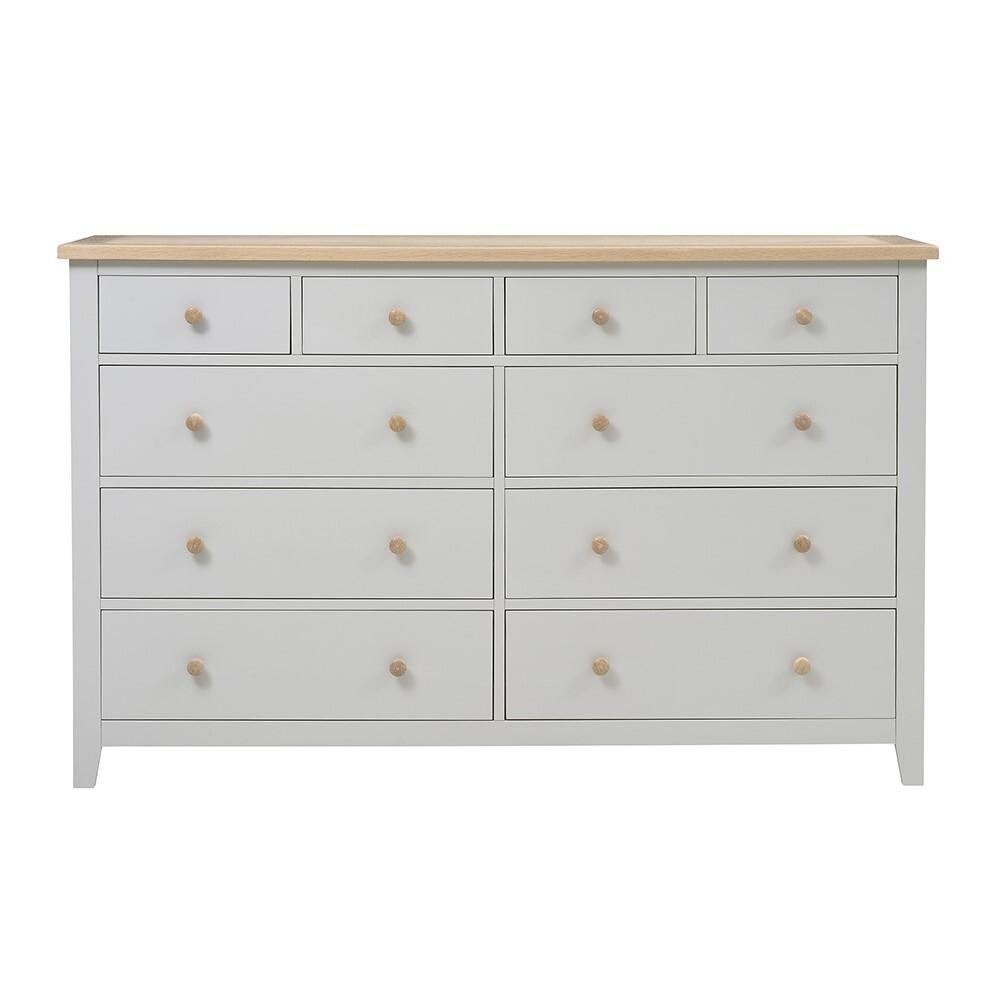 If you've always been a little short on storage and you've been looking for a sturdy solution, our beautiful Chester Dove Grey 10 Drawer Chest provides plenty of space. With four smaller top drawers perfect for knick-knacks or socks, and six larger drawers for stowing away those chunky knits and seasonal essentials, the beautiful Dove Grey painted finish will slot seamlessly into any decor style. Whether you share it with a partner or plan to have it all to yourself, your search for ample bedroom storage ends here.