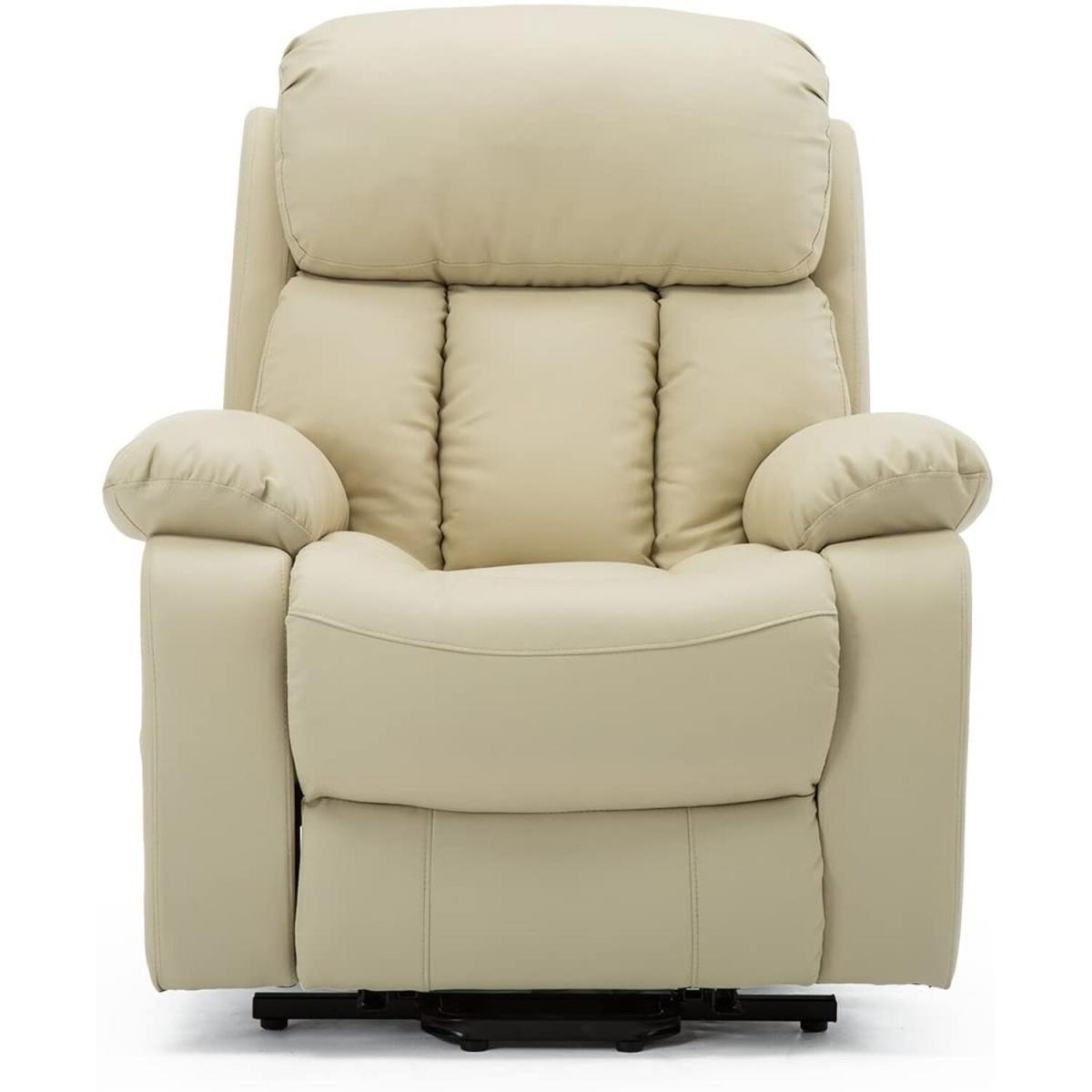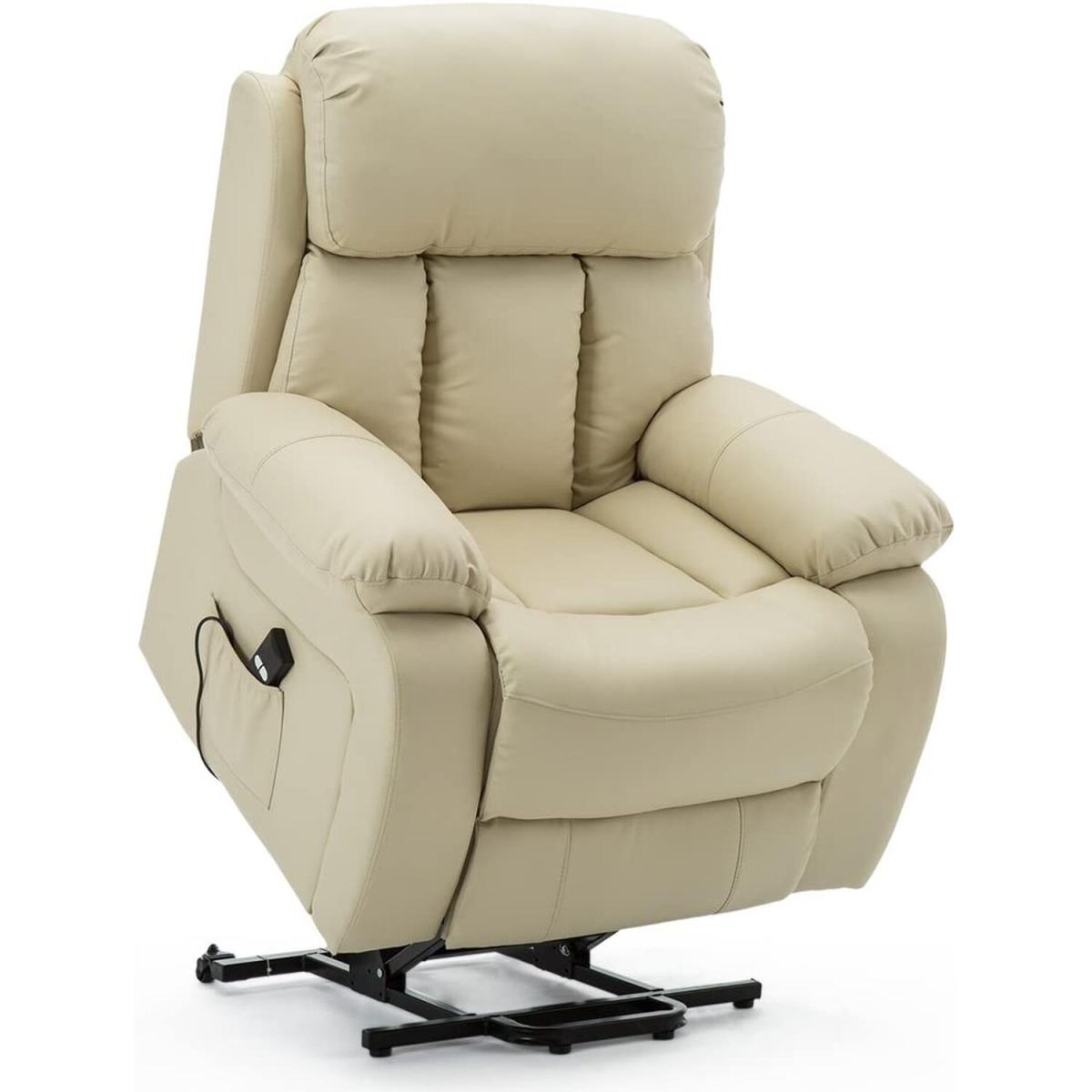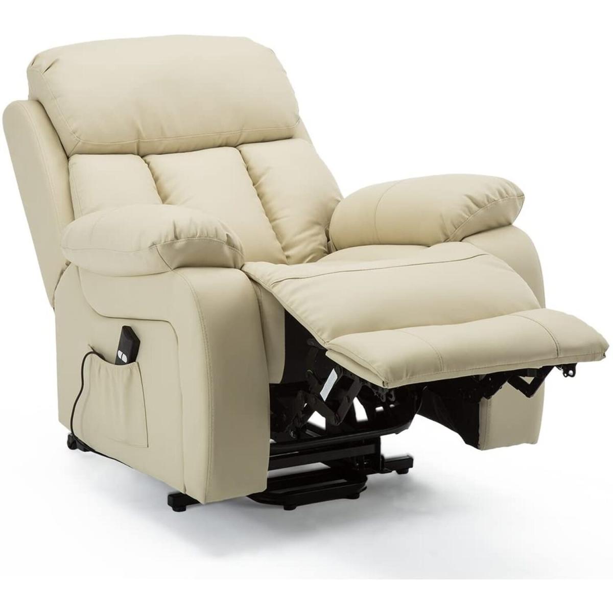 Easy to Use 2-Button Leather Electric Rise Recliner with Heat and massage The Chester Riser Recliner Chair features a single motor mechanism and has been designed for ease of use. The simple-to-operate, two-button handset allows you to either rise or recline your chair at the touch of a button. The rise function will enable you to raise the chair to an almost standing position, making ideal for those who require assistance when transferring to or from the chair. Whilst the recline function allows you to adjust the chair to a comfortable snooze position for ultimate relaxation. The soft foam padding in the backrest and headrest offers just the right balance between comfort and support. And the comfortable padded armrests help you choose a position that offers complete relaxation for your arms. The attached controller lets you heat the base of the backrest to warm the muscles in your lumbar region. You can also choose to have a soothing massage of your upper and lower back, thighs and calves. This vibration massage is provided by eight built-in pads placed at strategic points in the chair to relieve tired or aching muscles. The controller for the chair can be neatly stored in the side pocket. Available in three colours black, brown and cream. All of our Recliners are supplied in two separate sections, the base and the backrest. This allows easy removal from the box and transport within the home, navigating doorways and staircases. Once situated, the backrest simply clips into the rear section of the base to allow instant relaxation and comfort in your new chair.