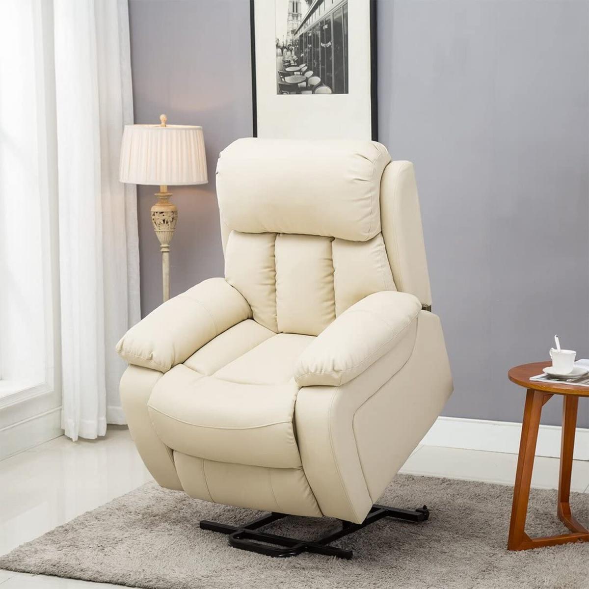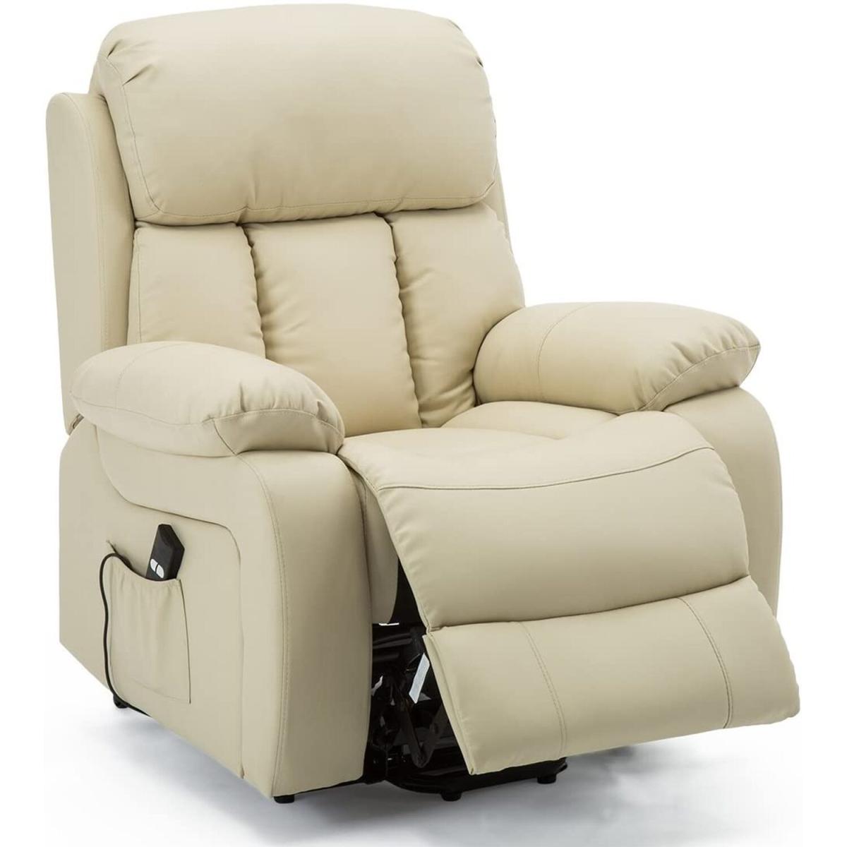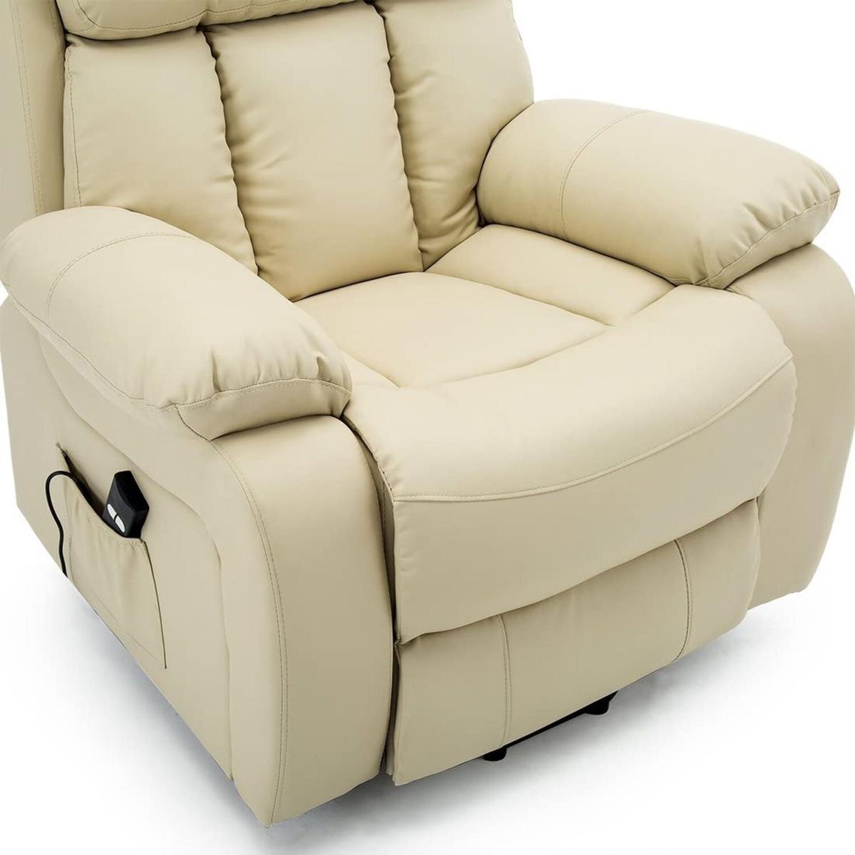 Easy to Use 2-Button Leather Electric Rise Recliner with Heat and massage The Chester Riser Recliner Chair features a single motor mechanism and has been designed for ease of use. The simple-to-operate, two-button handset allows you to either rise or recline your chair at the touch of a button. The rise function will enable you to raise the chair to an almost standing position, making ideal for those who require assistance when transferring to or from the chair. Whilst the recline function allows you to adjust the chair to a comfortable snooze position for ultimate relaxation. The soft foam padding in the backrest and headrest offers just the right balance between comfort and support. And the comfortable padded armrests help you choose a position that offers complete relaxation for your arms. The attached controller lets you heat the base of the backrest to warm the muscles in your lumbar region. You can also choose to have a soothing massage of your upper and lower back, thighs and calves. This vibration massage is provided by eight built-in pads placed at strategic points in the chair to relieve tired or aching muscles. The controller for the chair can be neatly stored in the side pocket. Available in three colours black, brown and cream. All of our Recliners are supplied in two separate sections, the base and the backrest. This allows easy removal from the box and transport within the home, navigating doorways and staircases. Once situated, the backrest simply clips into the rear section of the base to allow instant relaxation and comfort in your new chair.
