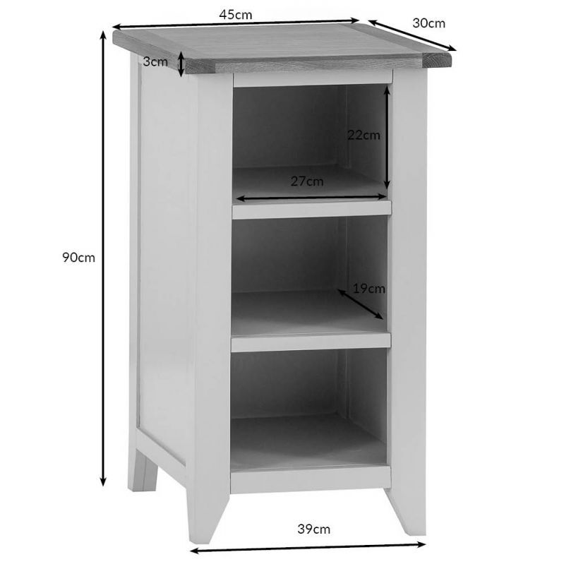 If you have a small space to fill, or you just don’t have a massive amount of books, the Chester Grey Painted Oak Small Narrow Bookcase may be just what you’re looking for. Oozing country charm from every fibre, this Mini Bookcase is perfect not just for holding books but also DVD’s and computer games. Ideal for compact spaces, this gorgeous shelving unit allows you to elegantly display your favourite books, keeping any room in the home clean and tidy in the process. It would be remiss of us not to mention the splendid contrast between the oak top and stone grey painted frame which is highly fashionable at present. If you’re a bit of a bookworm and require more space there are two larger alternatives within the Chester Grey collection. Please note, the manufacturer refers to the colour of this range as Truffle. As such, the word 'Truffle' is displayed on the packaging. The images on-site were taken in our photography studio and are an extremely accurate reflection of colour.
