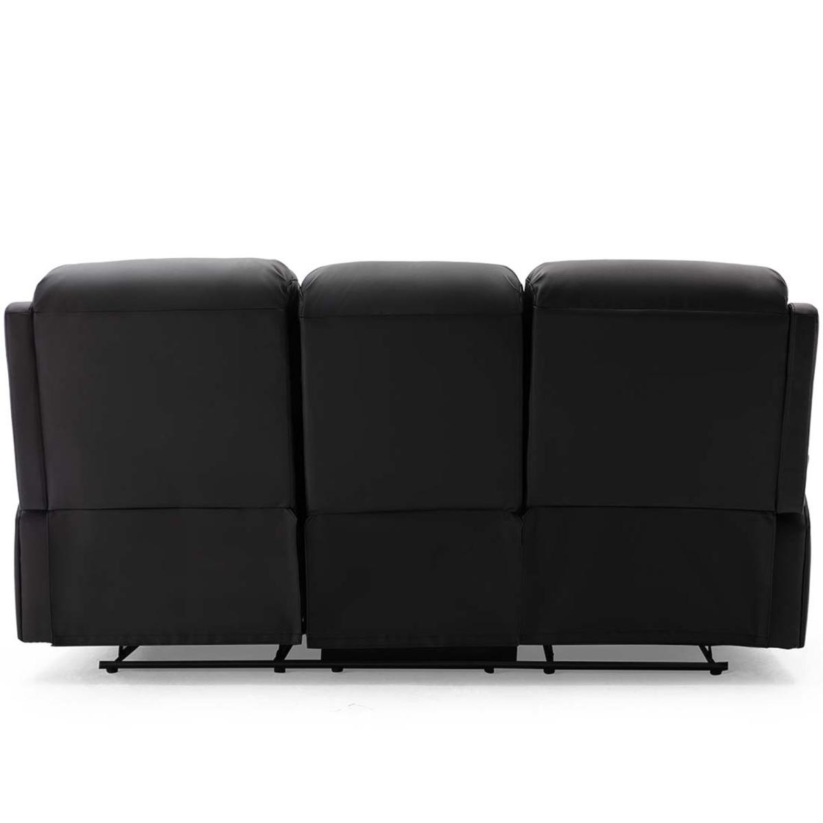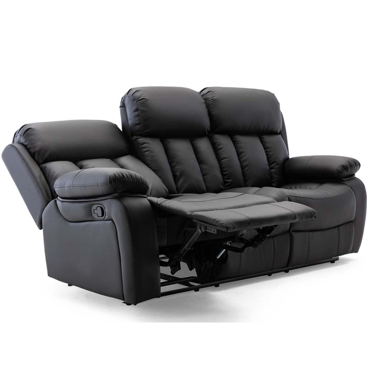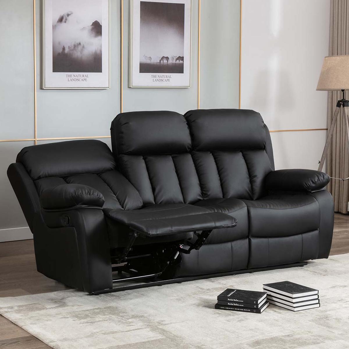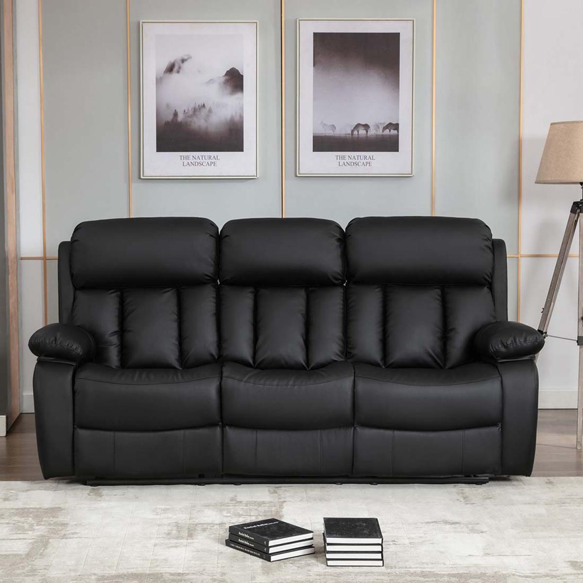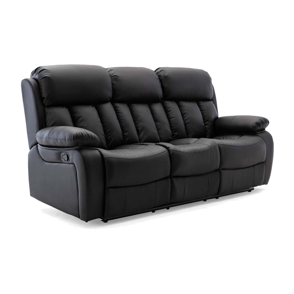 Chester Manual High Back Luxury Bond Grade Leather Recliner 3 Seater Sofa - Black