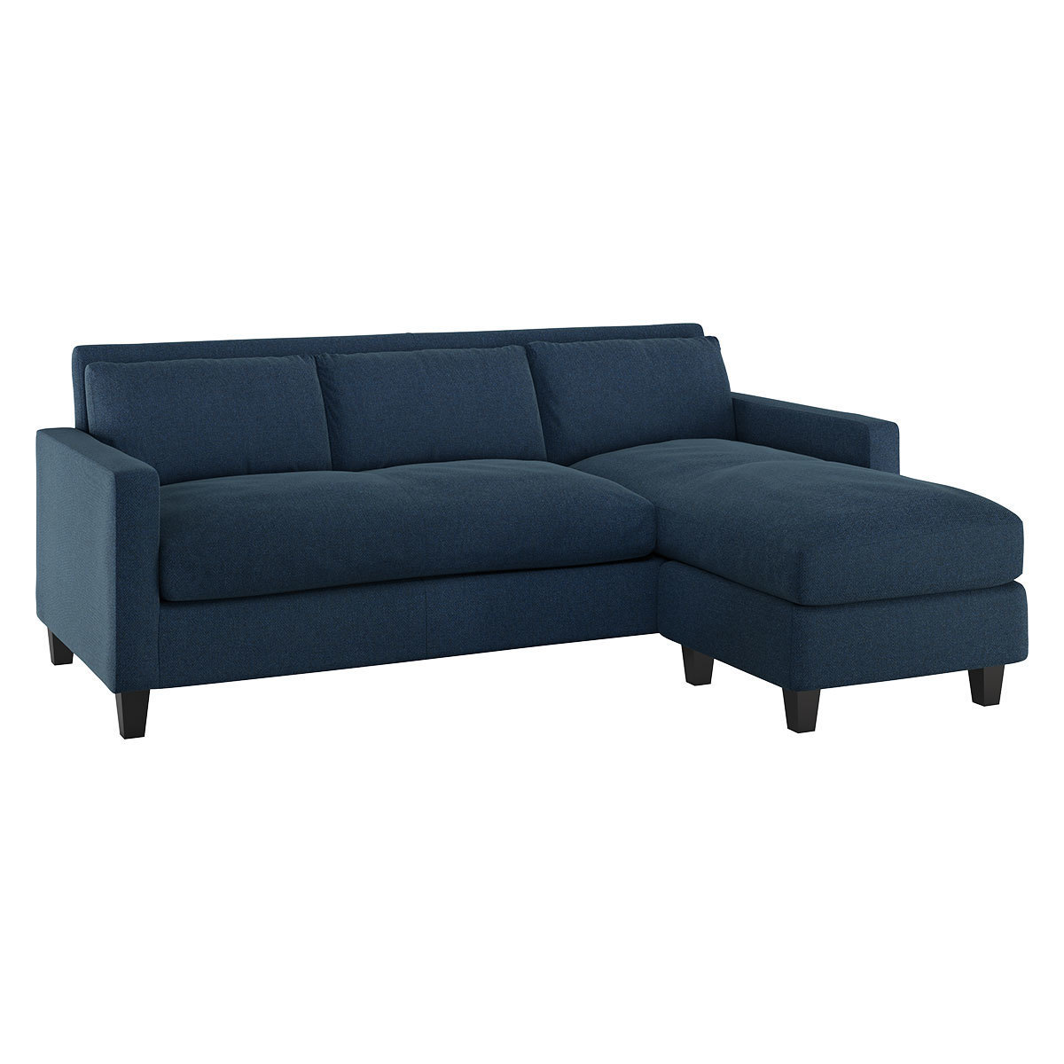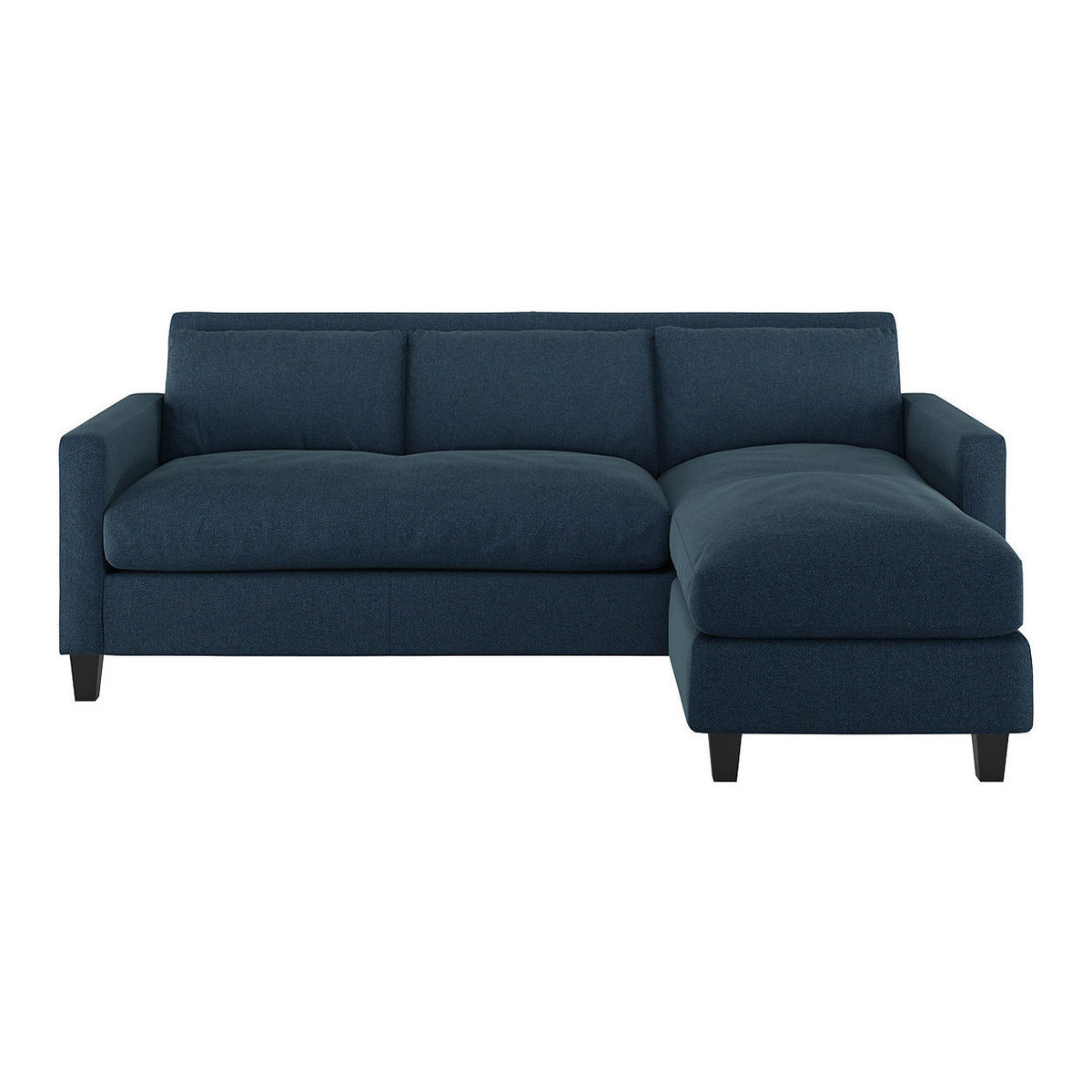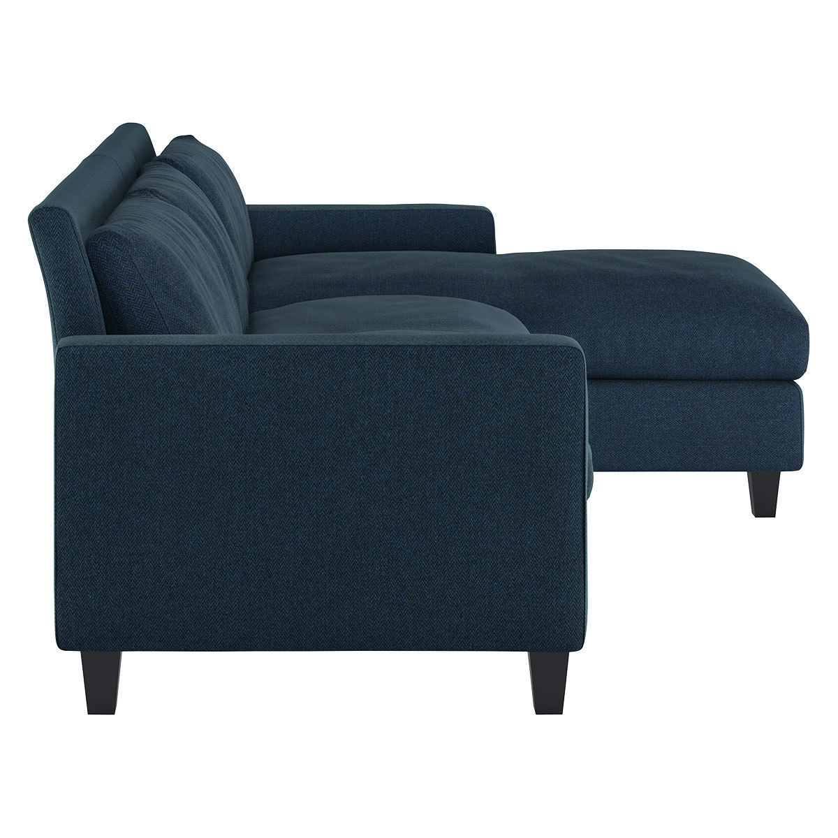 Chester Navy Blue Herringbone Wool Mix 3 Seater Sofa Chaise, Navy