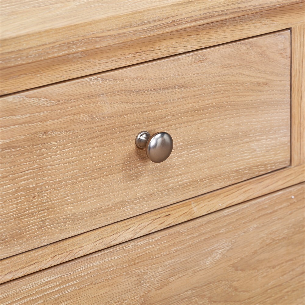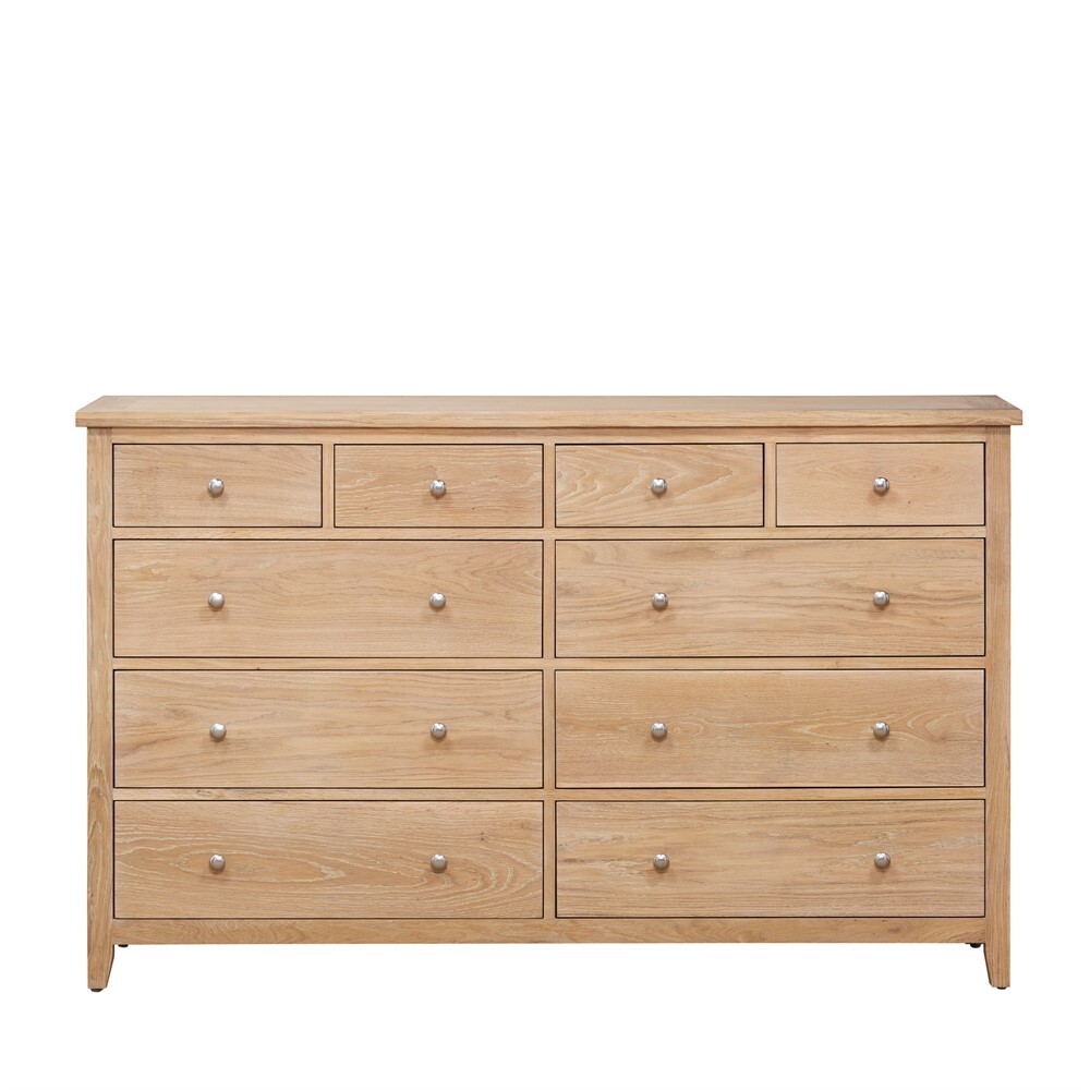 The perfect peace offering if you struggle over bedroom storage, this beautifully crafted chest features ten solid oak fronted drawers. With four smaller and six wider it's easily divisible, making it much more helpful when it comes to deciding who gets what! Also available in a 8-drawer chest.