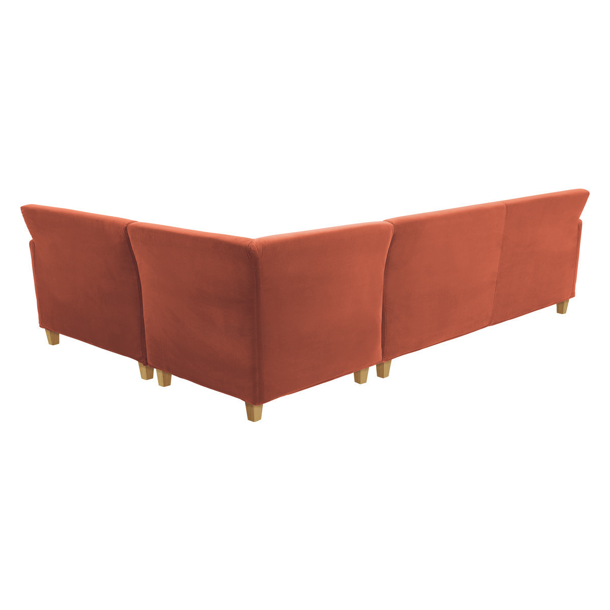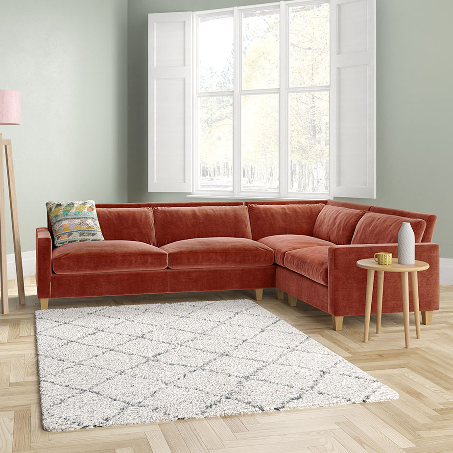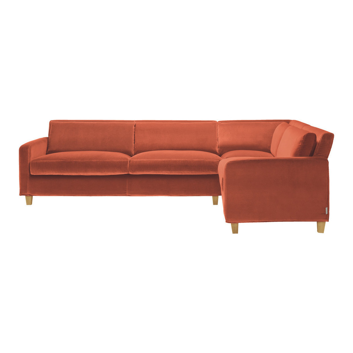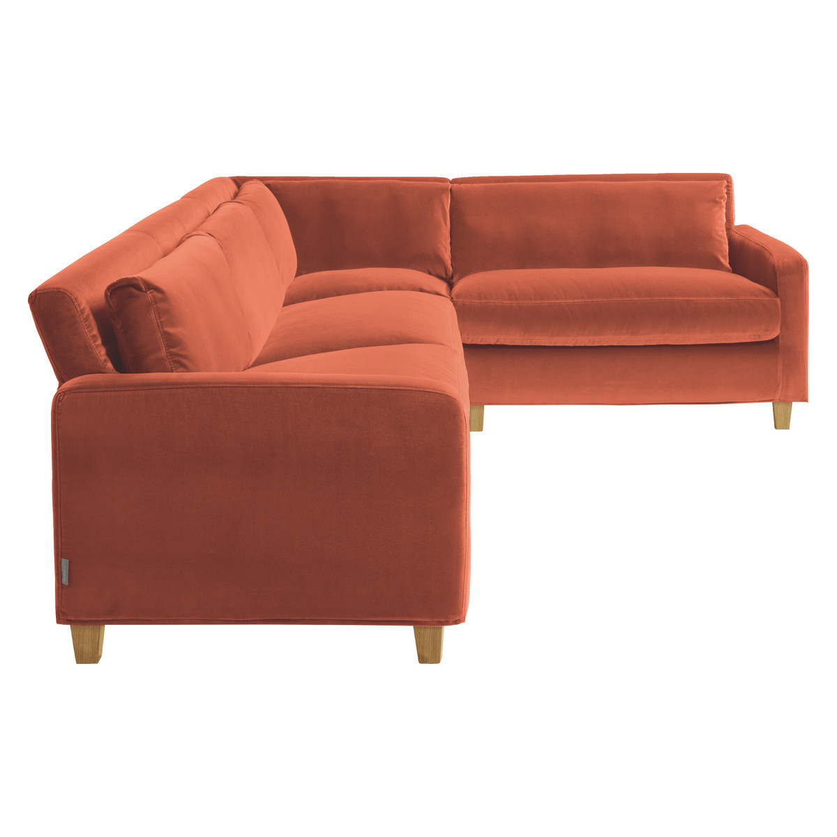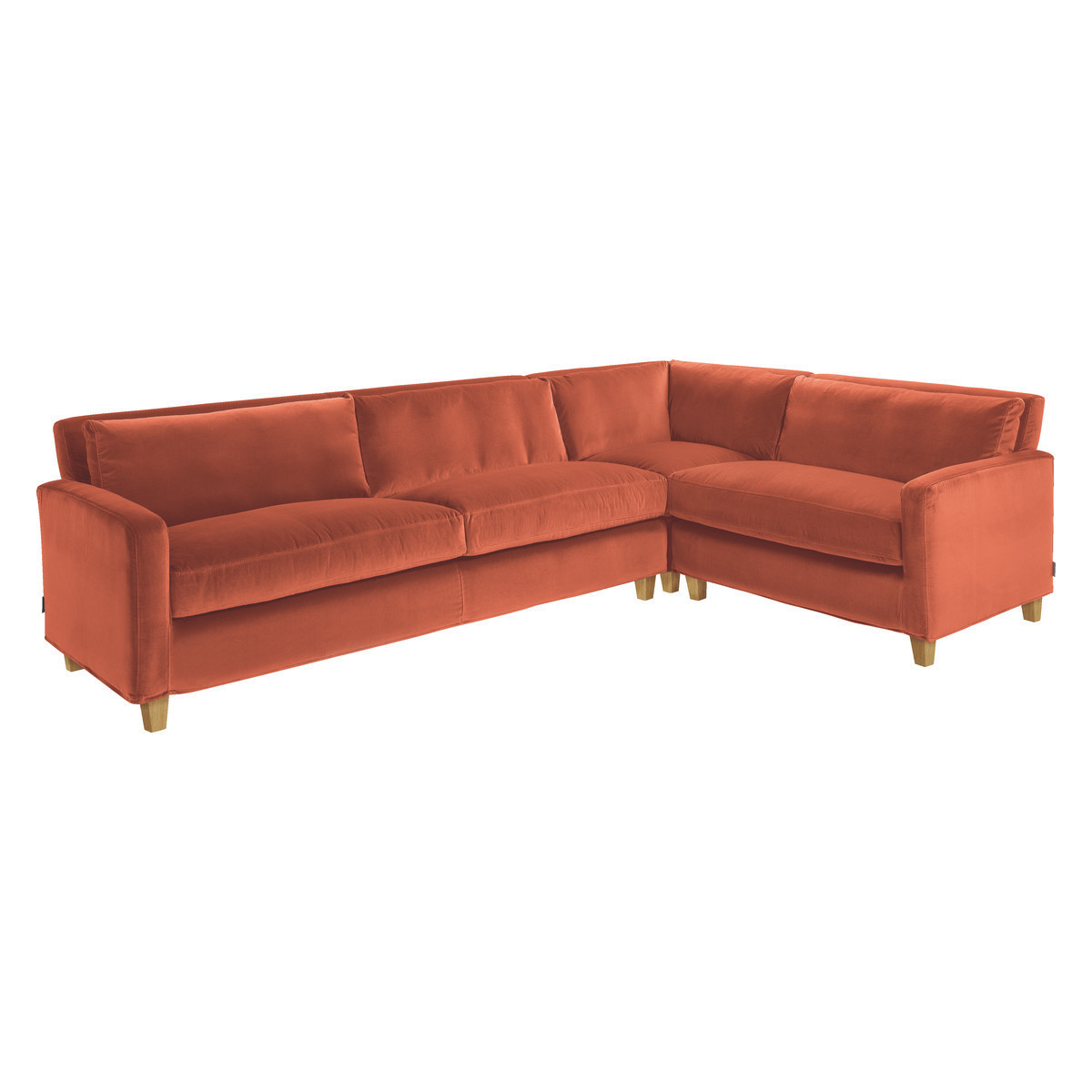 Lounge in style with this Italian made Chester orange left-arm corner sofa, which features a slim profile and a feather and fibre seat cushions, for a classic and timeless look. Designed by Matthew Hilton for Habitat, the corner sofa offers flexibility in configuring the unit to fit your space with a left hand corner set up. The sofa is fully upholstered in a removable, durable cover with oak stained feet. Part of the Habitat bestselling classic Chester sofa range, available in leather and fabric options, in various sizes and colours and with oak stained or dark stained feet.