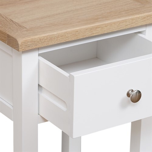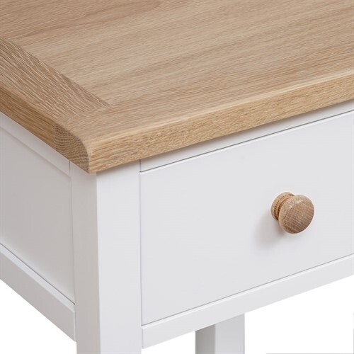 With a practical slim-line design that's a perfect fit for smaller bedrooms or the guest room, we love this versatile little table with its white paint finish, useful drawer and lower shelf.