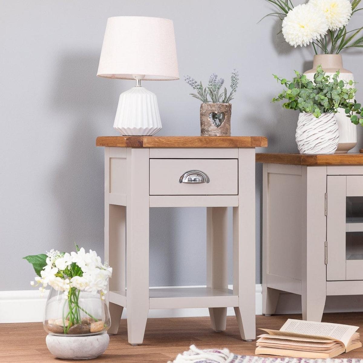 Chester Stone Painted Oak 1 Drawer Small Lamp Table