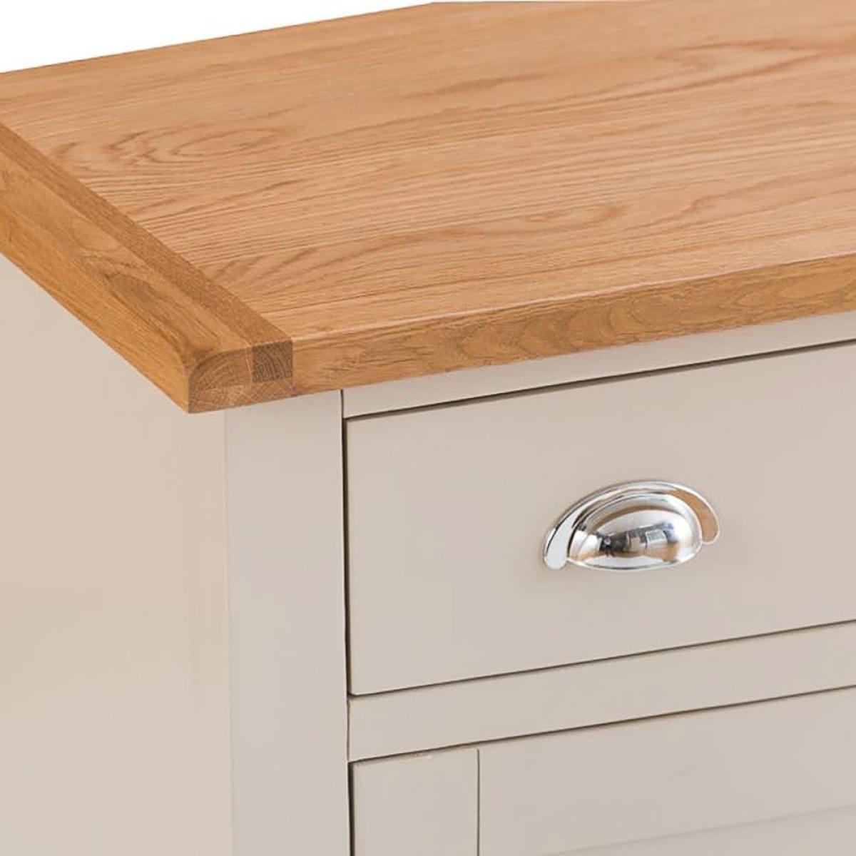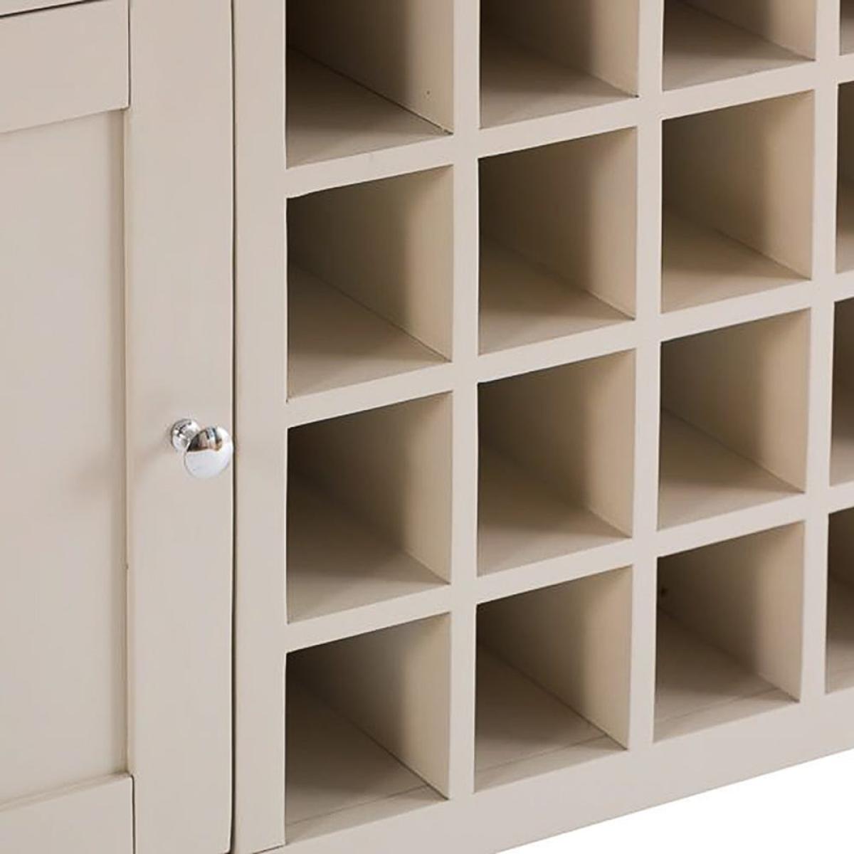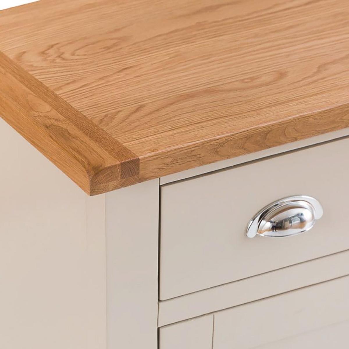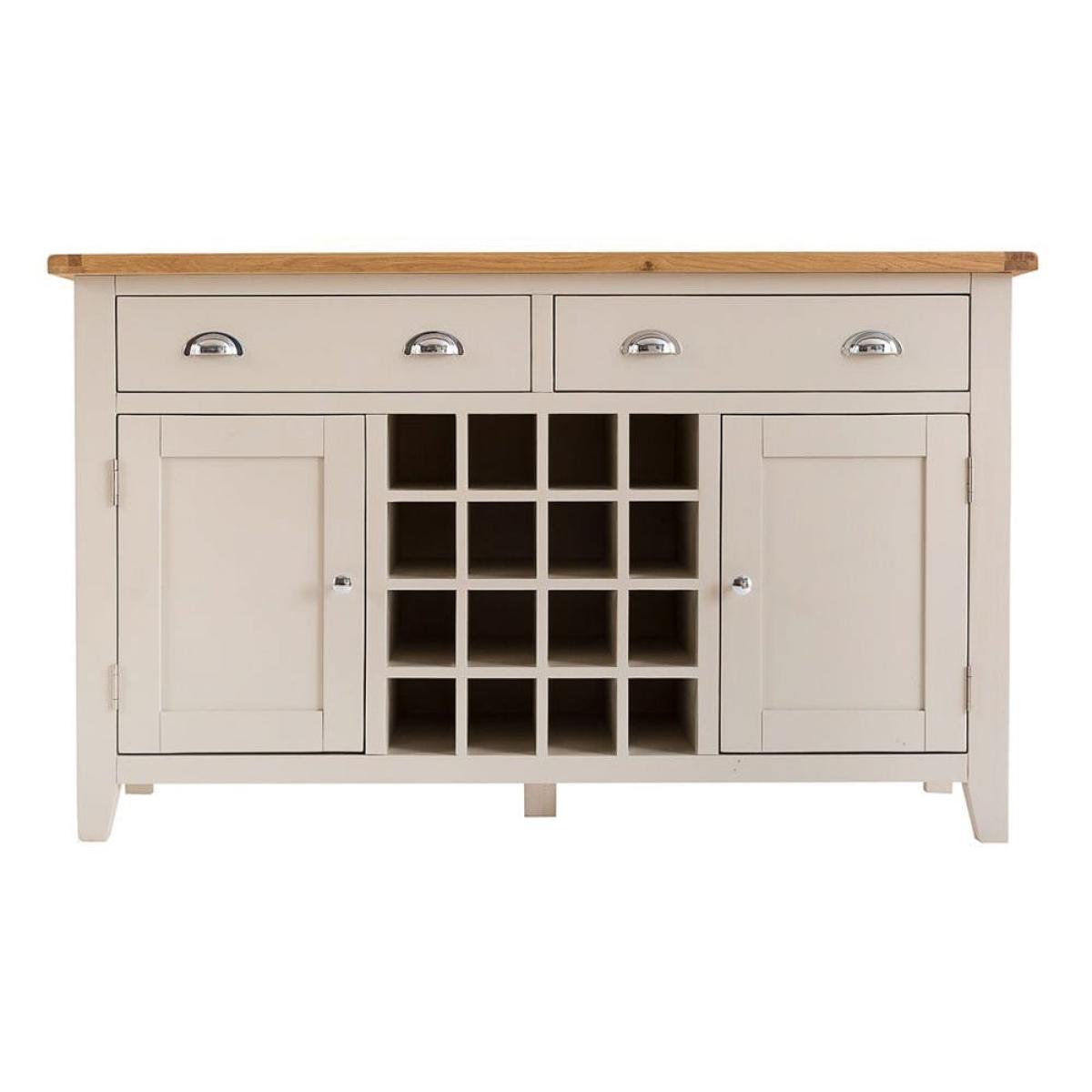 Bottoms up – it’s time to raise a glass to the Chester stone painted oak two-door large sideboard with wine rack. Its sleek symmetrical design is pleasing to look at and enhanced by the finer details, such as the shiny chrome handles and gorgeous oak top surface. Finished in a subtle stone shade, the cupboards and drawers make an attractive storage spot for all your glasses and corkscrews. Slide a few of your favourite bottles onto the built-in wine rack, and immediately slide them back out again when everyone comes calling just in time for wine o’clock. Please note, the manufacturer refers to the colour of this range as Truffle. As such, the word 'Truffle' is displayed on the packaging. The images on-site were taken in our photography studio and are an extremely accurate reflection of colour.
