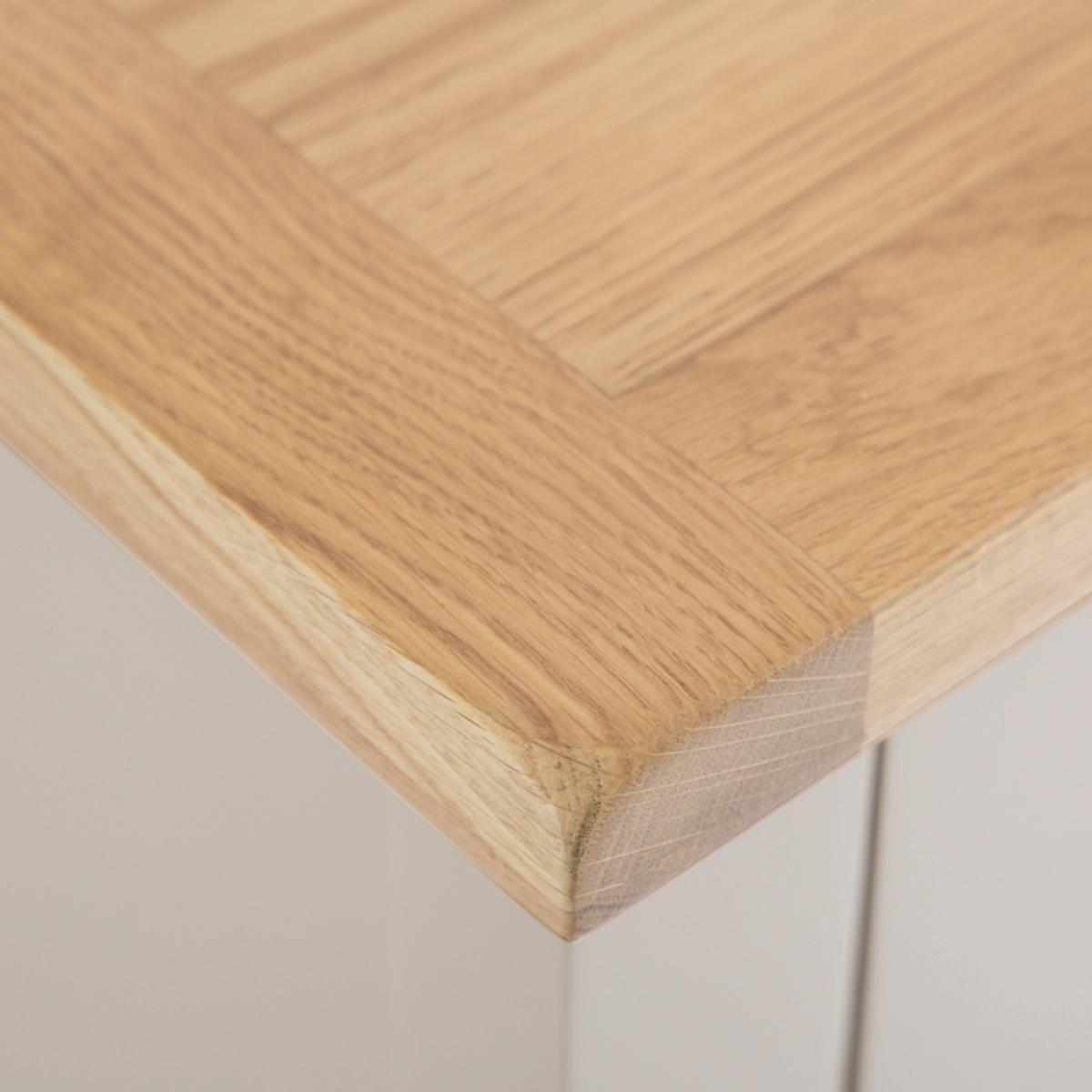 The Chester Stone Painted Oak 4 Drawers Tallboy is everything you need when you want to utilise your wall space without making the bedroom feel crowded. It's ideal for adding the eclectic and lived-in touch of character you've been searching for, and it does it all without making the space feel cluttered. The star of the show has to be the oak top and stone grey painted finish, but that's not to say there aren't other aspects to appreciate. The rounded lines of the chrome handles add the perfect contemporary touch you wouldn't expect to find, whilst the lines of your new Chest of Drawers pay homage to the farmhouse style. Please note, the manufacturer refers to the colour of this range as Truffle. As such, the word 'Truffle' is displayed on the packaging. The images on-site were taken in our photography studio and are an extremely accurate reflection of colour.
