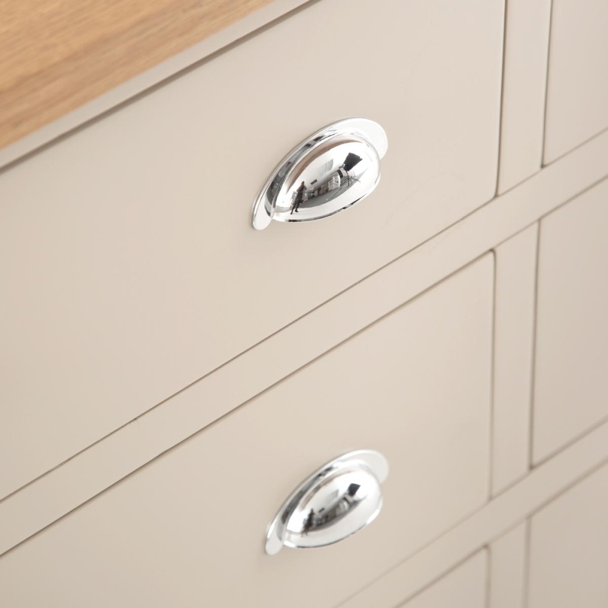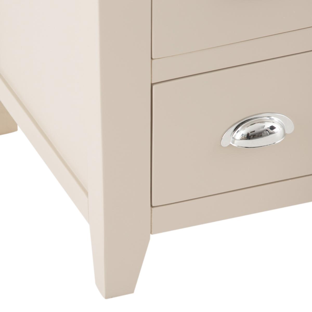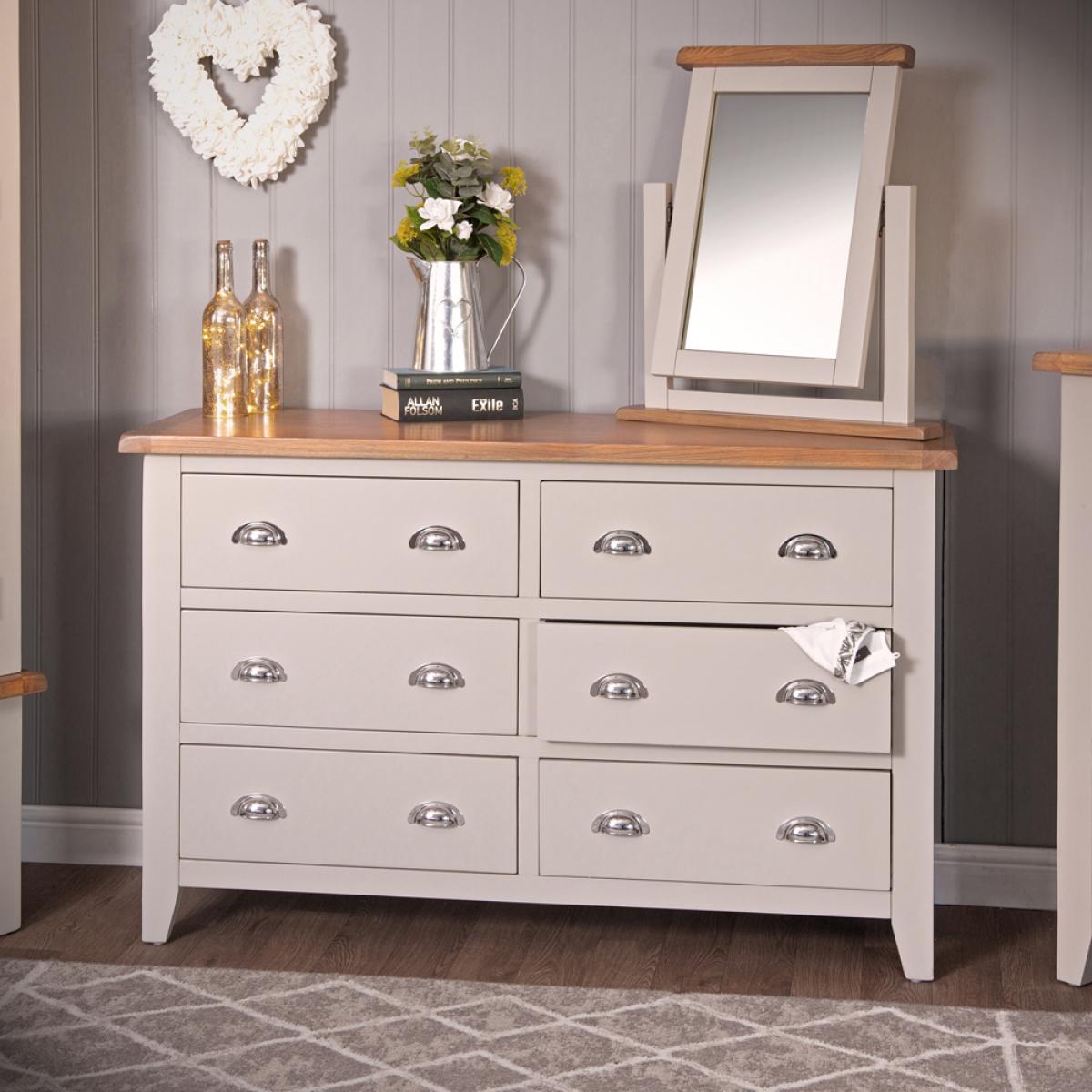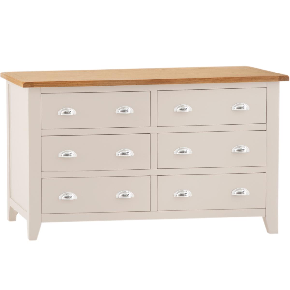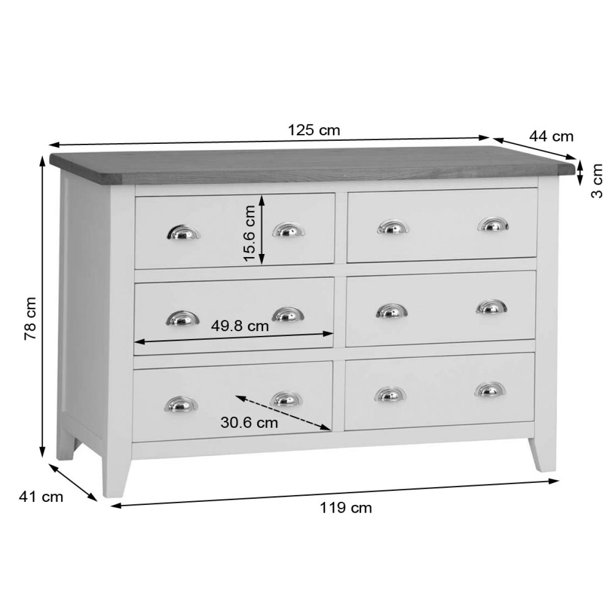 The first time we laid eyes on the Chester Grey Painted Oak 6 Drawer Chest we knew we’d created something rather special. The drawers are finished with aplomb by the contemporary chrome handles, and the expert precision of the great painted finish is the stuff dreams are made of. For us the highlight has to be the look and feel of the oak top. It’s one of the hallmarks of the Chester Grey Collection, and it’s one you can have in any room in the house thanks to our 2-man delivery service. The only thing left to do is decide where you want your new Chest of Drawers. Please note, the manufacturer refers to the colour of this range as Truffle. As such, the word 'Truffle' is displayed on the packaging. The images on-site were taken in our photography studio and are an extremely accurate reflection of colour.