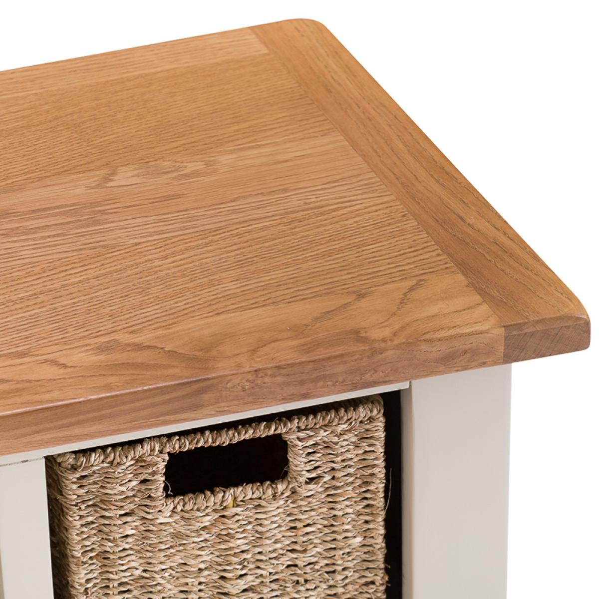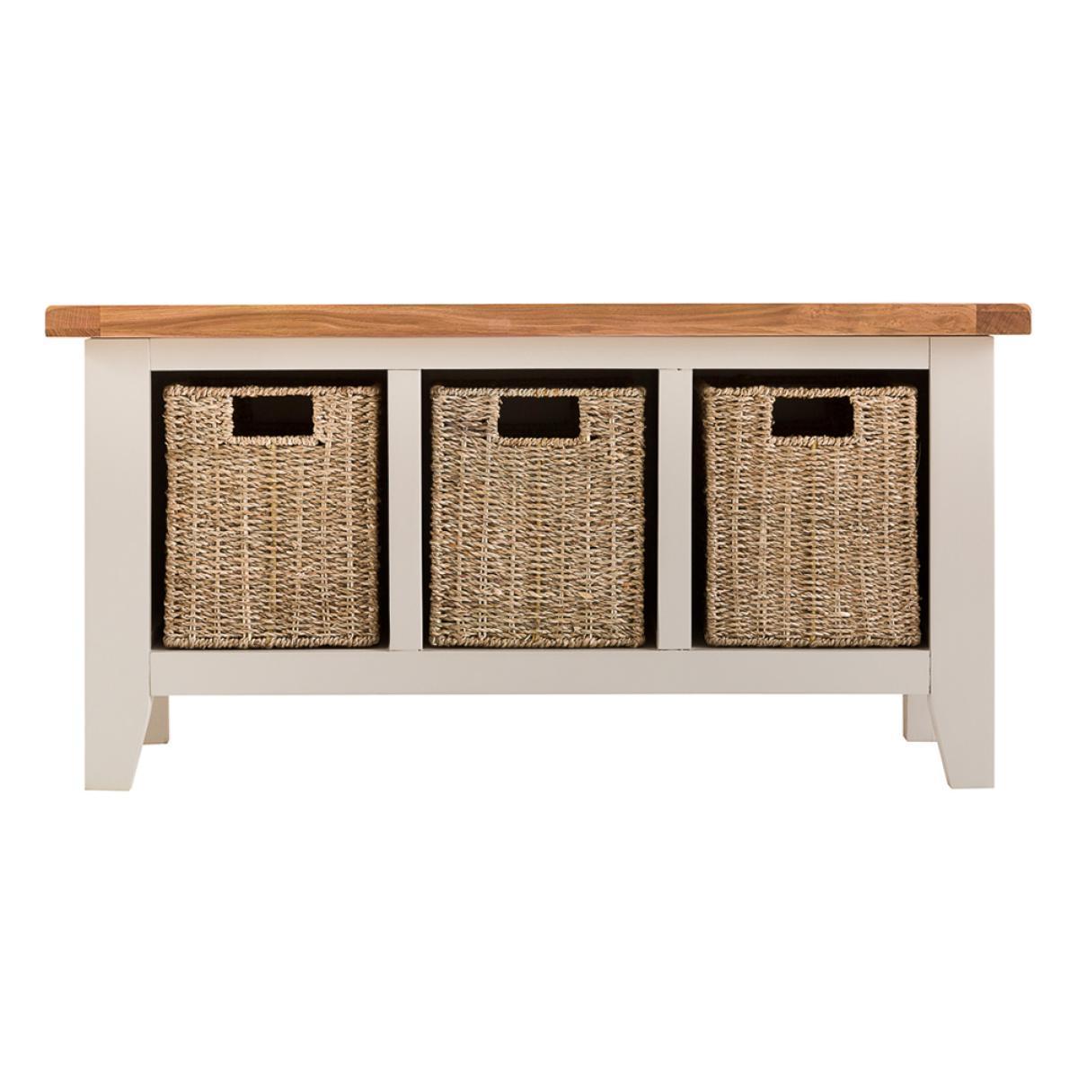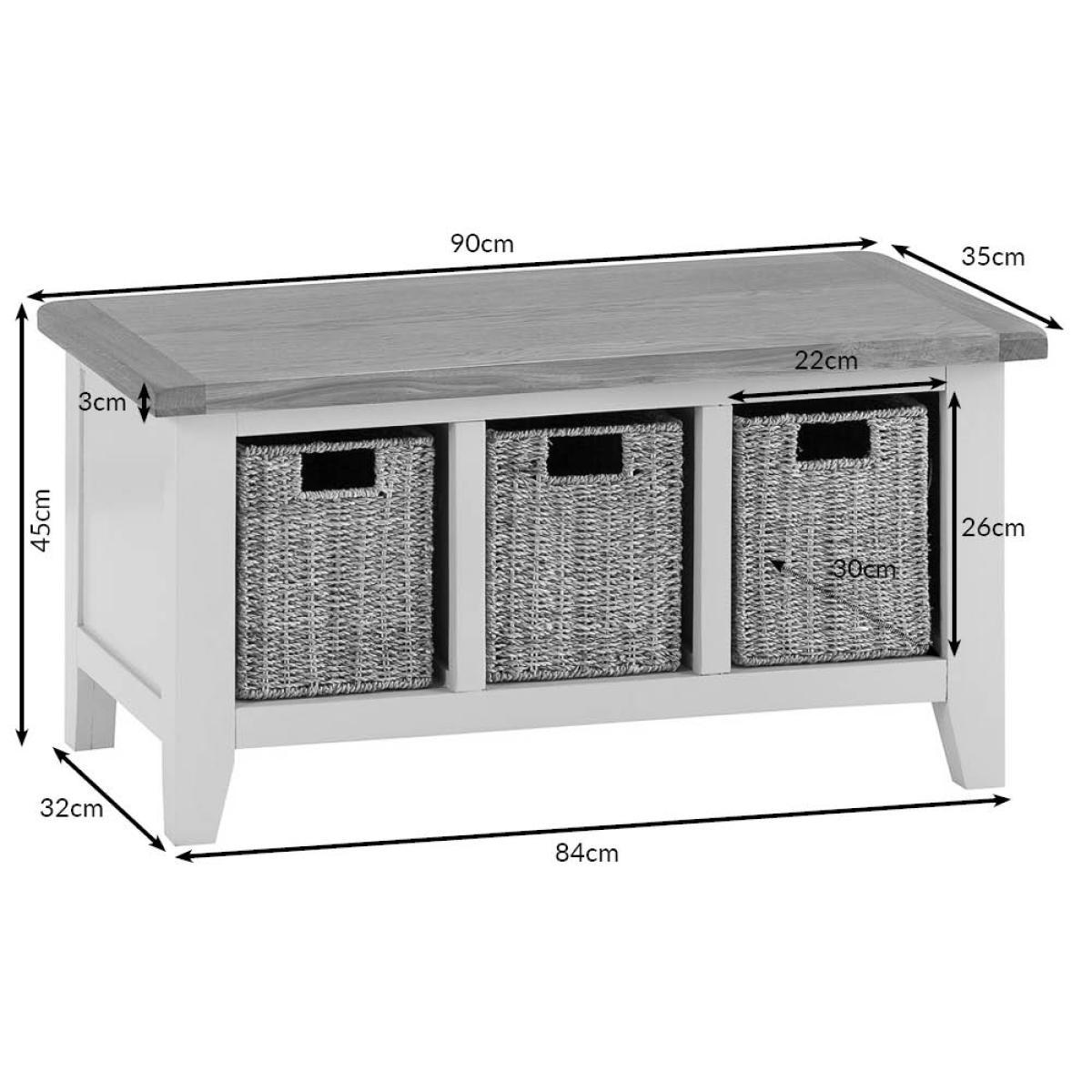The Chester Grey Painted Oak Hall Bench is the item that makes you feel sorry for people that don’t have a hallway. If you are lucky enough to have a long, flowing hallway and room to relax and unwind as you kick your shoes off after a hard day, what better way to do it than on a beautiful oak and stone grey Hall Bench such as this? Wicker baskets provide a shrewd little addition and are of course included as part of the item. These baskets allow you to keep your hallway or porch clean and tidy as you can simply pop your shoes in to them when they’re not required. This may be a hallway furniture item by name, but in theory it could be used in any room in the home as a storage unit or even a toy box. Beautiful, versatile, unique. What’s not to love? Please note, the manufacturer refers to the colour of this range as Truffle. As such, the word 'Truffle' is displayed on the packaging. The images on-site were taken in our photography studio and are an extremely accurate reflection of colour.