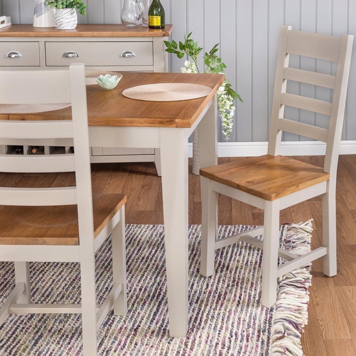 Pull up a chair and tuck in – the Chester stone painted oak slat back dining chair with wooden seat was made for comfort and style. Lean against the slatted back and relax. A traditional twist on a contemporary classic style, the comfy seat of this chair sits 46cm above the floor. Its thick and chunky legs combine beautifully with the striking natural oak wooden seat to create a charming and rustic look. This farmhouse-style chair is brought seamlessly into the 21st century with the hand painted stone grey finish signature to this collection. Please note, the manufacturer refers to the colour of this range as Truffle. As such, the word 'Truffle' is displayed on the packaging. The images on-site were taken in our photography studio and are an extremely accurate reflection of colour.