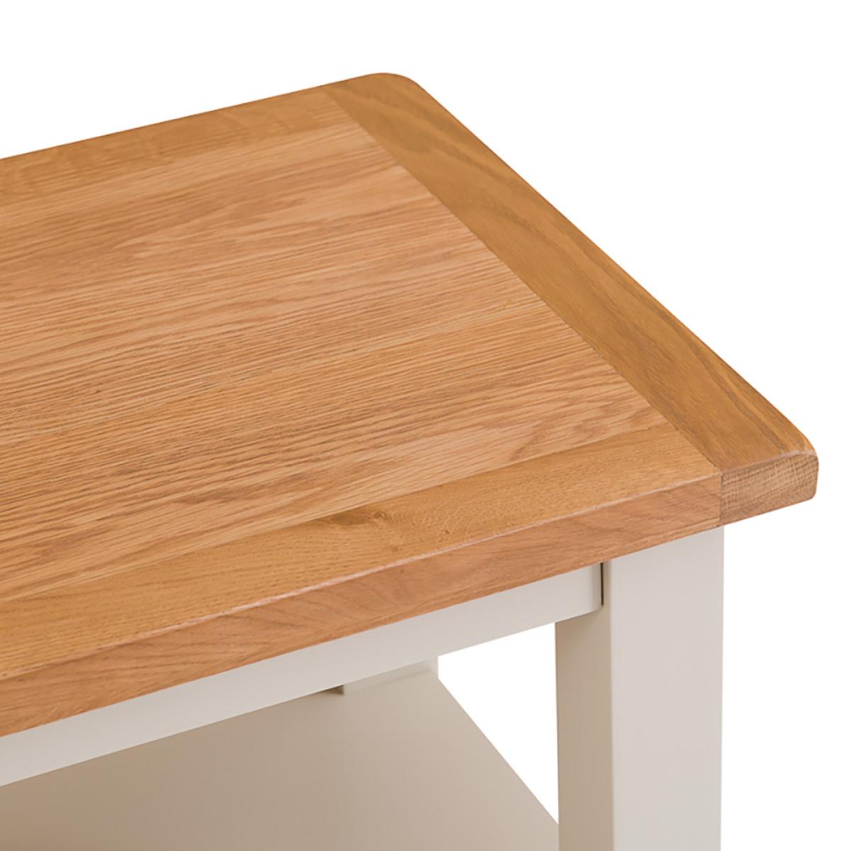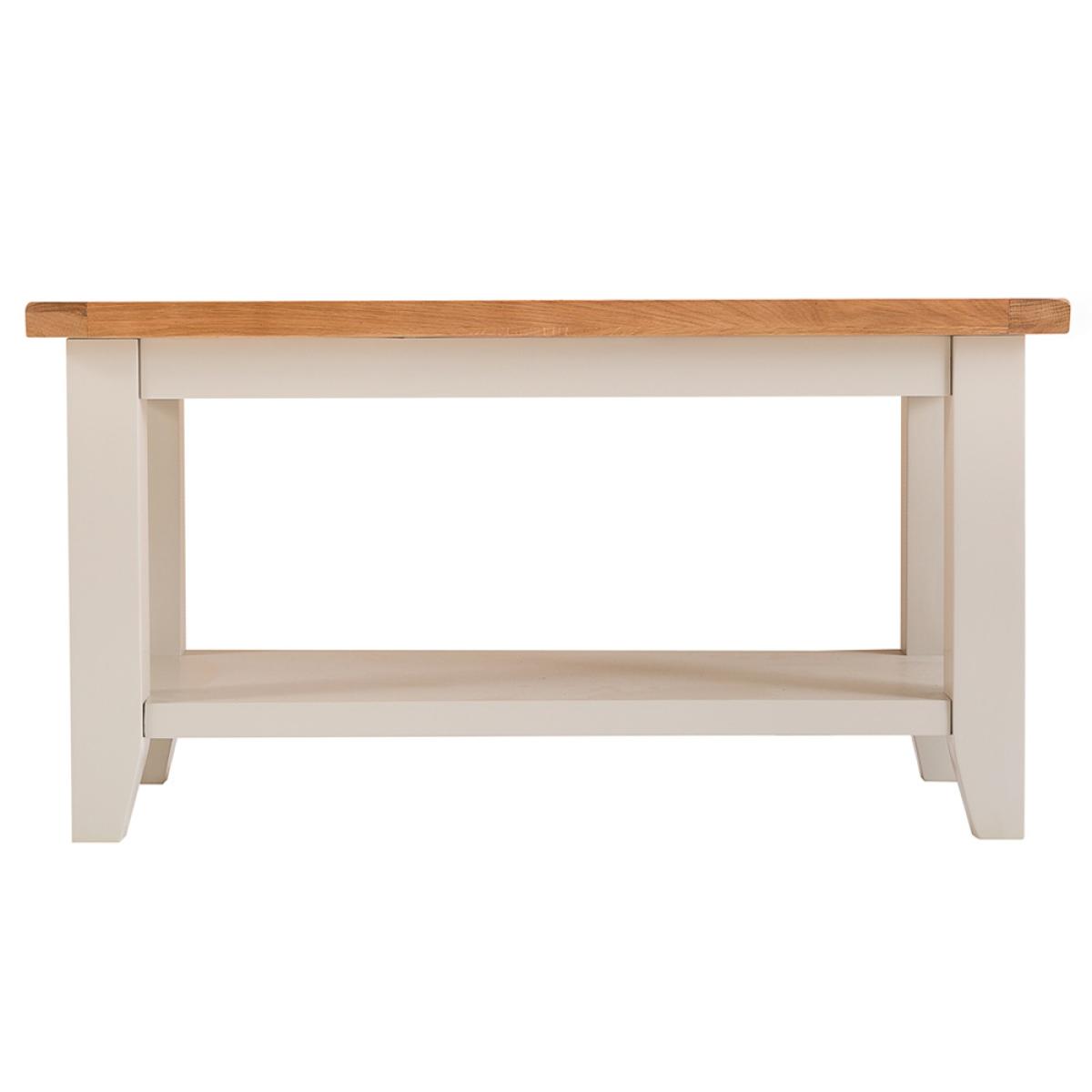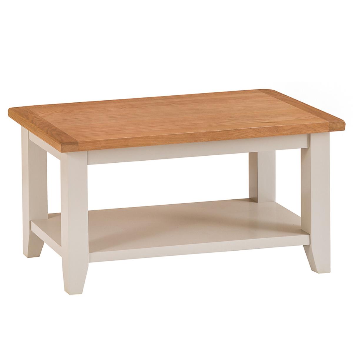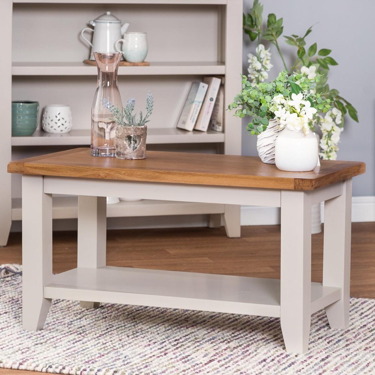 If space is at a premium the Chester Grey Painted Oak Small Coffee Table is a stylish and practical alternative to the larger version in this collection. Add a touch of country charm to your living space with this Coffee Table, comprising of a large open storage area beneath a generously proportioned top surface. The oak top provides a wonderful contrast against the stone grey painted finish throughout the rest of the Coffee Table. This mix of contemporary and country styles within a single unit is so in-vogue right now and with this wonderful Coffee Table you can stay ahead of the curve. Looking for something larger? There’s a Large Coffee Table within the Chester Grey collection which also features a drawer. Please note, the manufacturer refers to the colour of this range as Truffle. As such, the word 'Truffle' is displayed on the packaging. The images on-site were taken in our photography studio and are an extremely accurate reflection of colour.