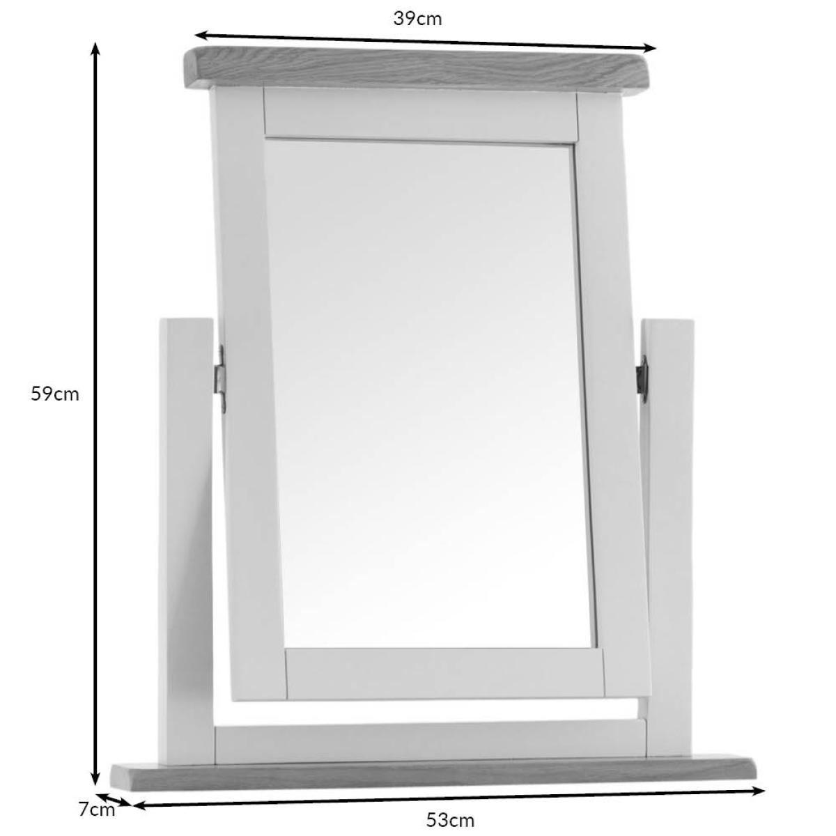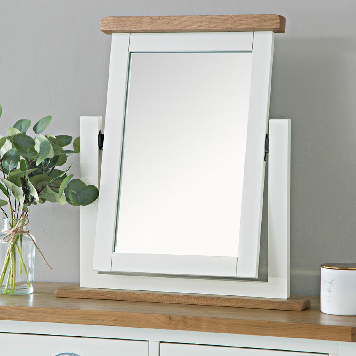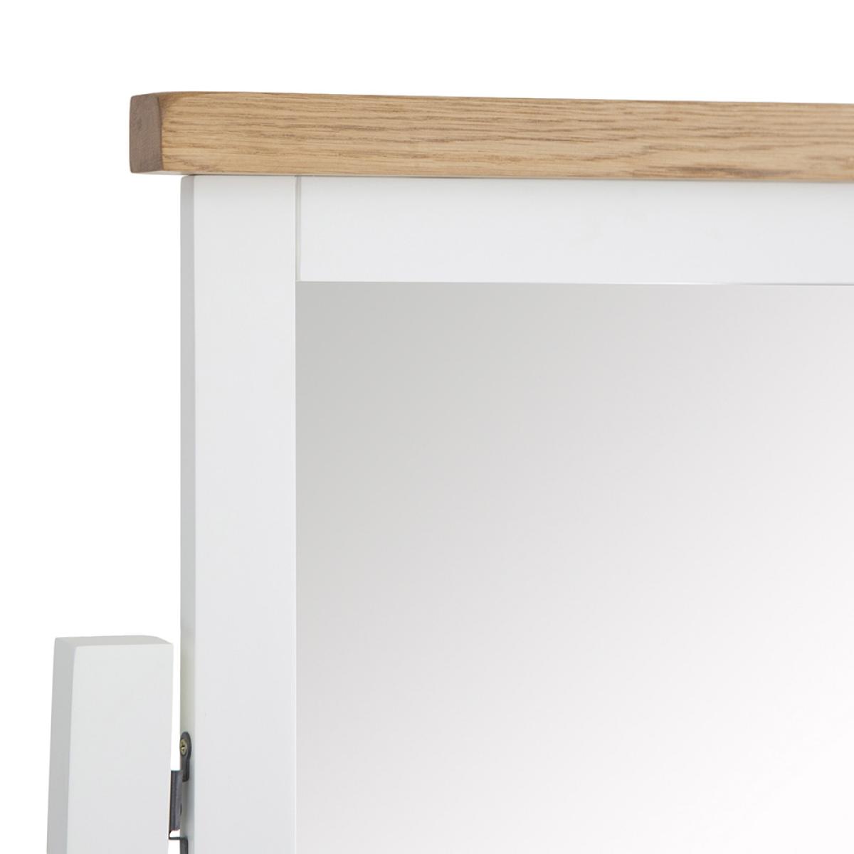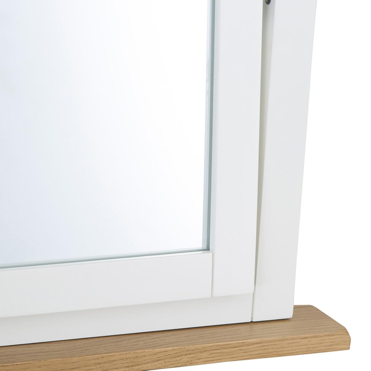 When you want to add the final finishing touches to the master bedroom, there's no better way to do it than with the Chester White Painted Oak Dressing Table Mirror. It's a Vanity Mirror which catches the eye for all the right reasons, which is perfect when you're creating a look that you want to do exactly that. The white painted finish and finely crafted rustic frame invite you to take your seat, and take your time. All you need to do now is sit and relax whilst you turn on the style like never before. Please note: This item is not pure/brilliant White. It is very slightly off white, described as 'old white'.