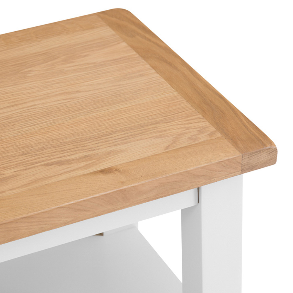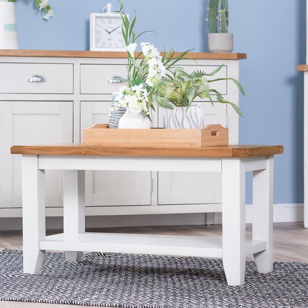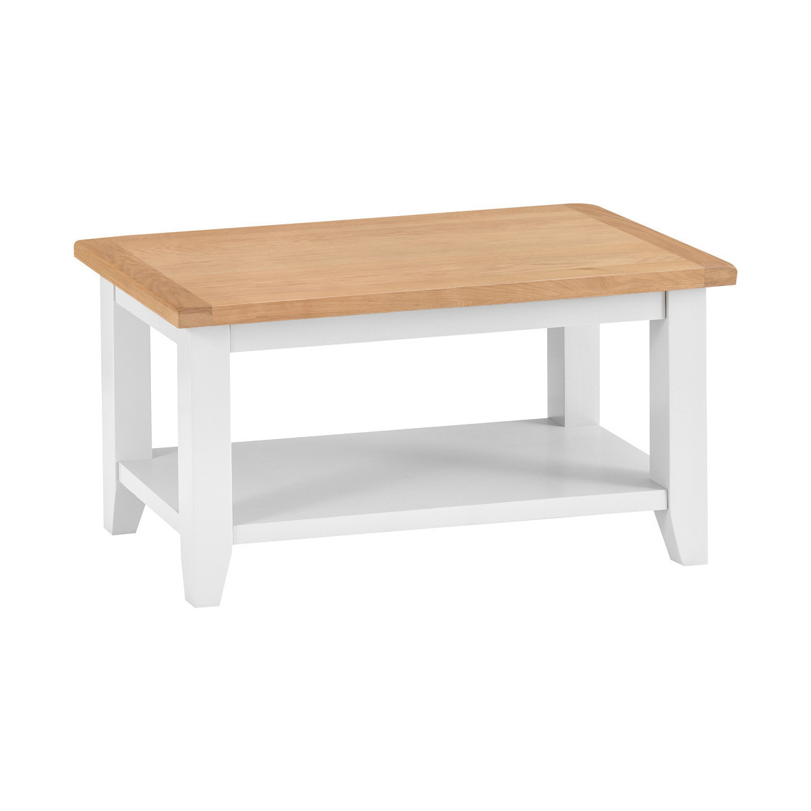 Looking for a stylish and contemporary Coffee Table that doesn't break the bank? You're in the right place. The Chester White Painted Oak Small Coffee Table exudes country charm and frankly, the neutral colour of this unit ensures it blends perfectly with a whole host of interior styles. If space is at a premium this is the perfect alternative to the larger coffee table in this collection and comprises of a large open storage area beneath a generously proportioned top surface. The crisp white painted frame is complimented beautifully by a stunning oak top that provides a rustic twist on a contemporary design. Looking for something larger? There's a Large Coffee Table within the Chester White collection which also features a drawer. Please note: This item is not pure/brilliant White. It is very slightly off white, described as 'old white'.