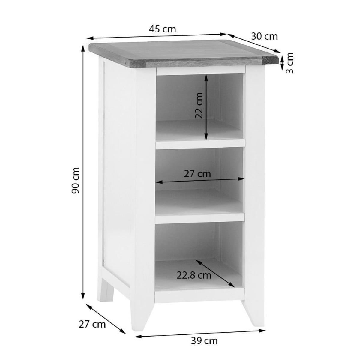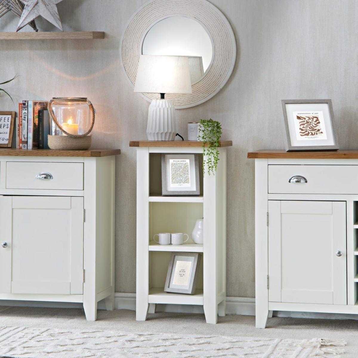 Arriving fully assembled and ready to house your home library, the Chester white painted oak small narrow bookcase adds display space and storage to your home – without compromising on floorspace. Versatile and tactile, its thick frame whispers of rural cottage charm. Each of the three shelves sits 22cm apart, so you’ll have plenty of space for all your tallest hardbacks or stacks of well-loved paperbacks. And this attractive white painted unit isn’t just meant for books. The gleaming oak top surface is a fabulous perch for a lamp and candles to make your living space feel extra snug. Please note: This item is not pure/brilliant White. It is an off-white, described as 'old white'.