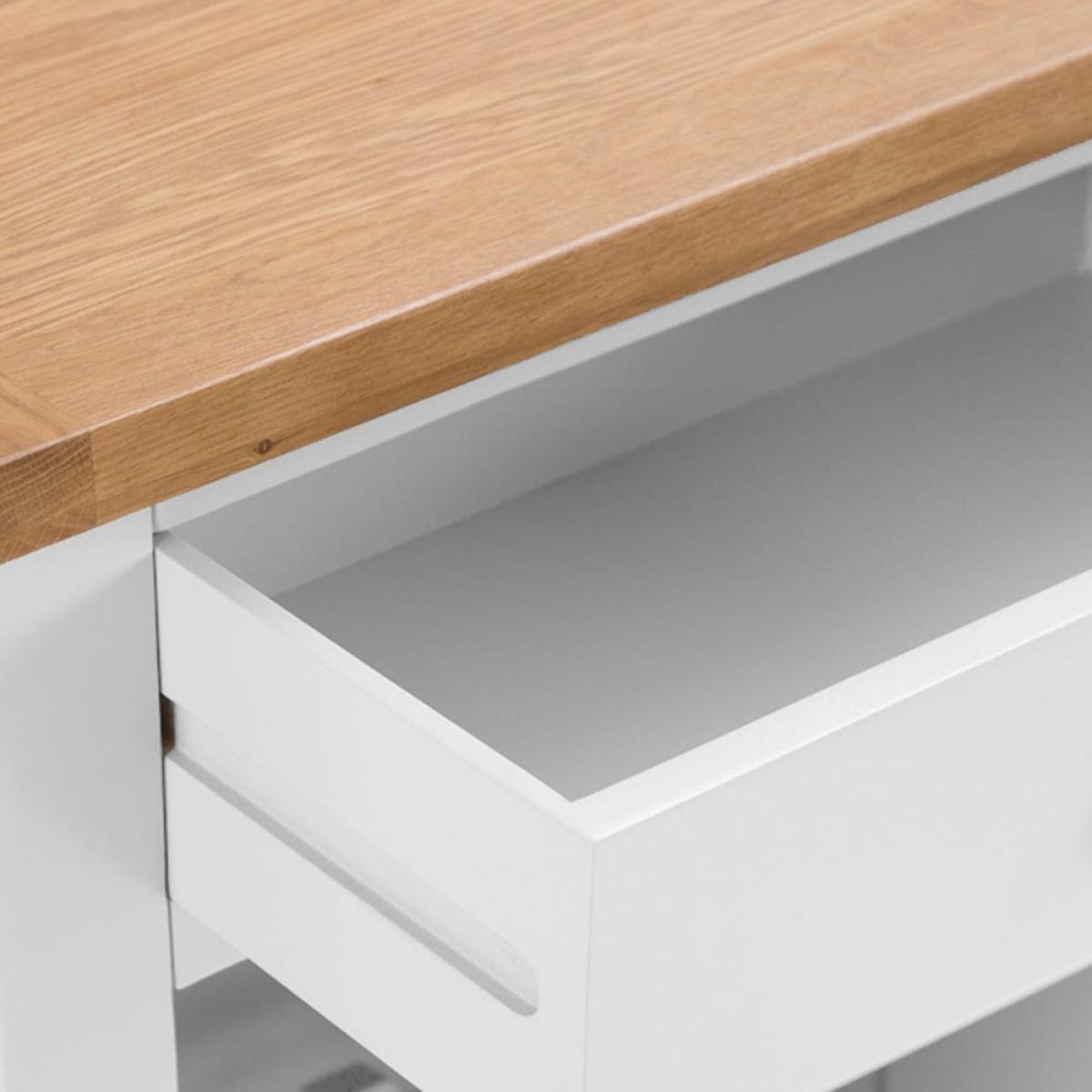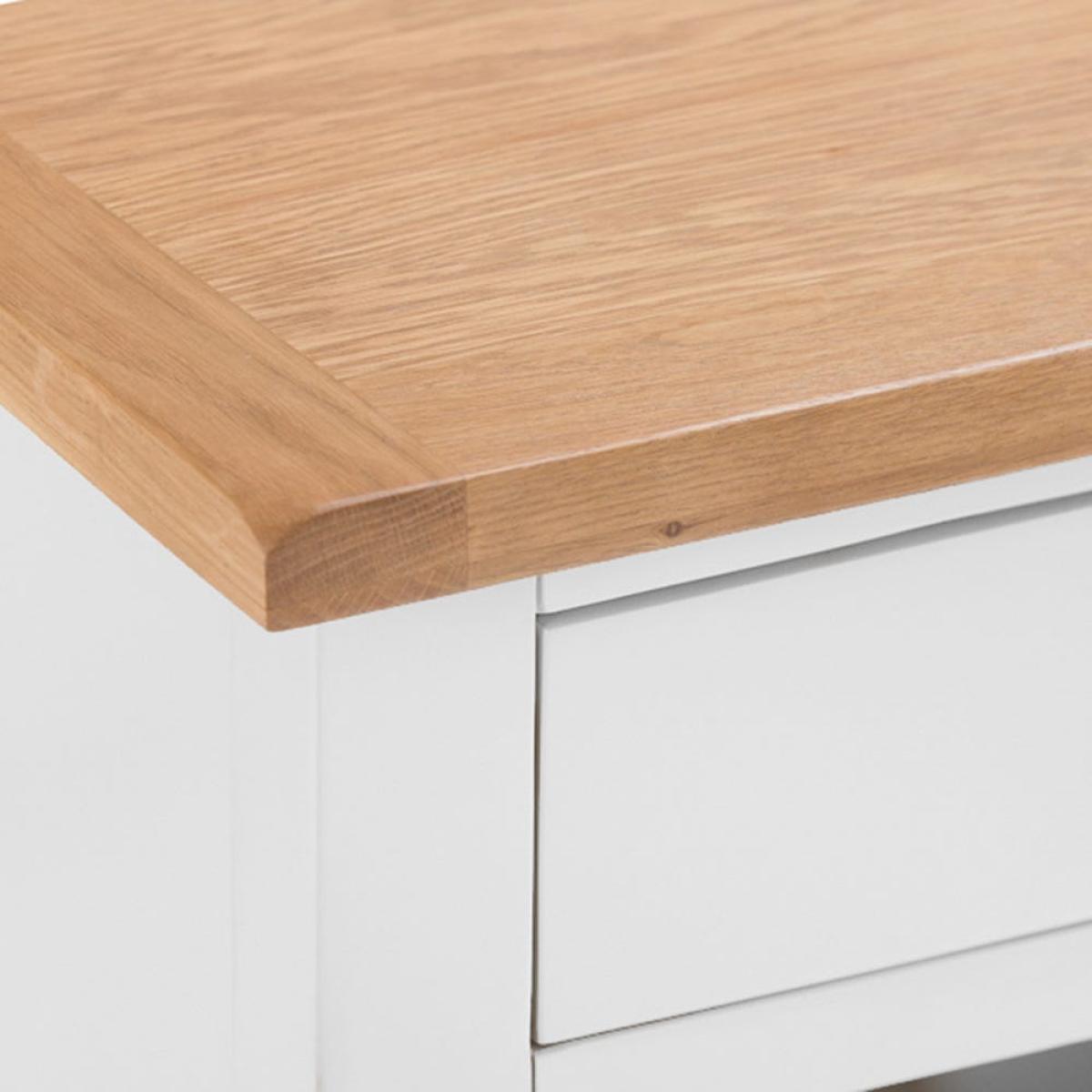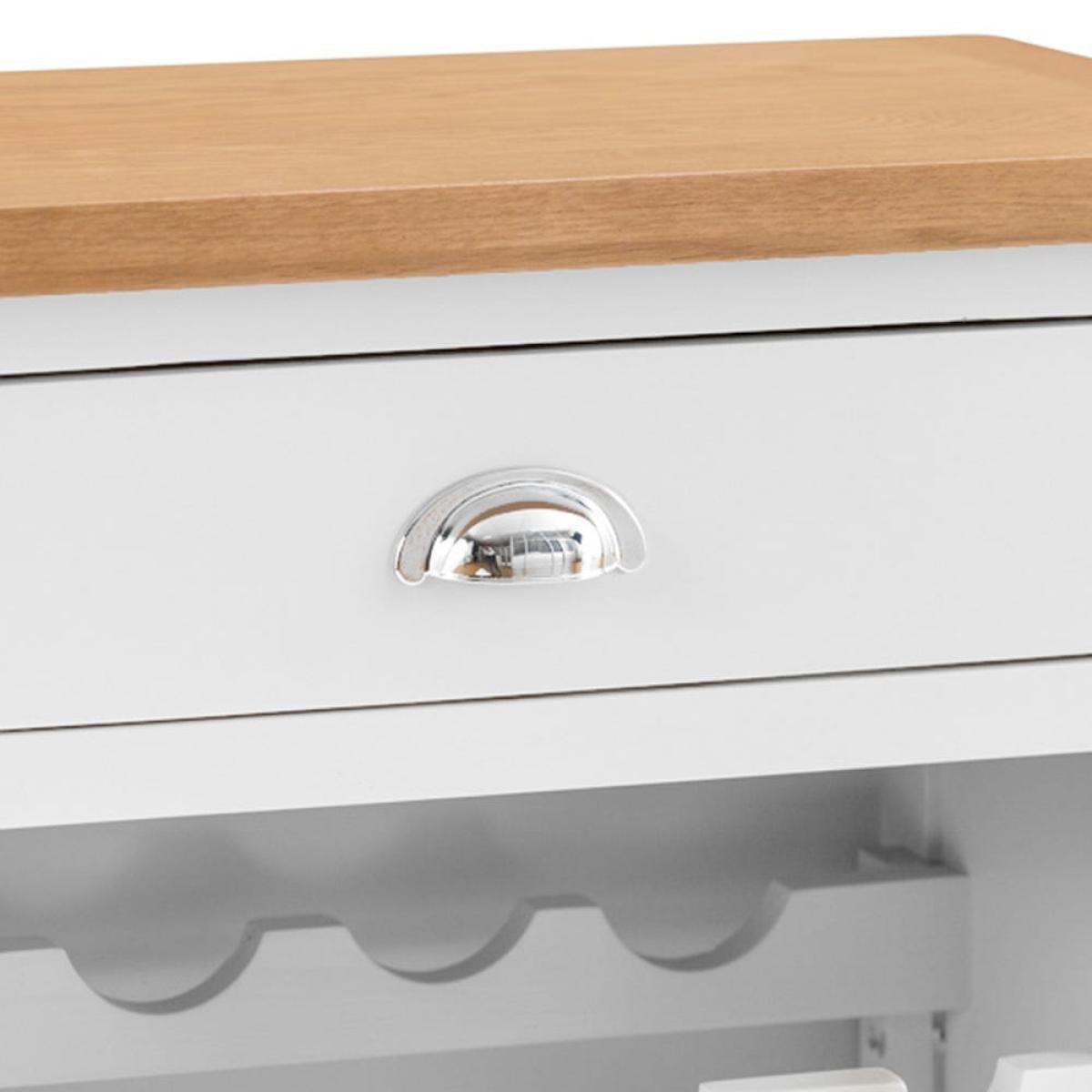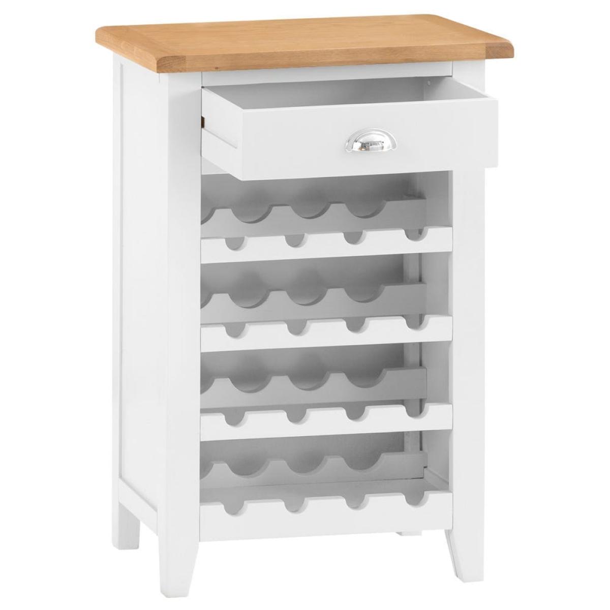 If you often find yourself hosting everyone, the Chester white painted oak wine cabinet is here to help. It’s a cabinet for all interiors, with its blend of modern features like the chrome handles accentuated by the solid farmhouse frame. Able to hold 16 wine bottles, there’s a space for all your finest reds, whites and everything in between on this luxurious white painted wine cabinet. The expertly dovetailed drawer is a handy cubby for corkscrews and wine stoppers. Stack the sleek oak top surface with jugs and glasses to keep everyone topped up the whole night through. Please note:This item is not pure/brilliant White. It is an off-white, described as 'old white'.