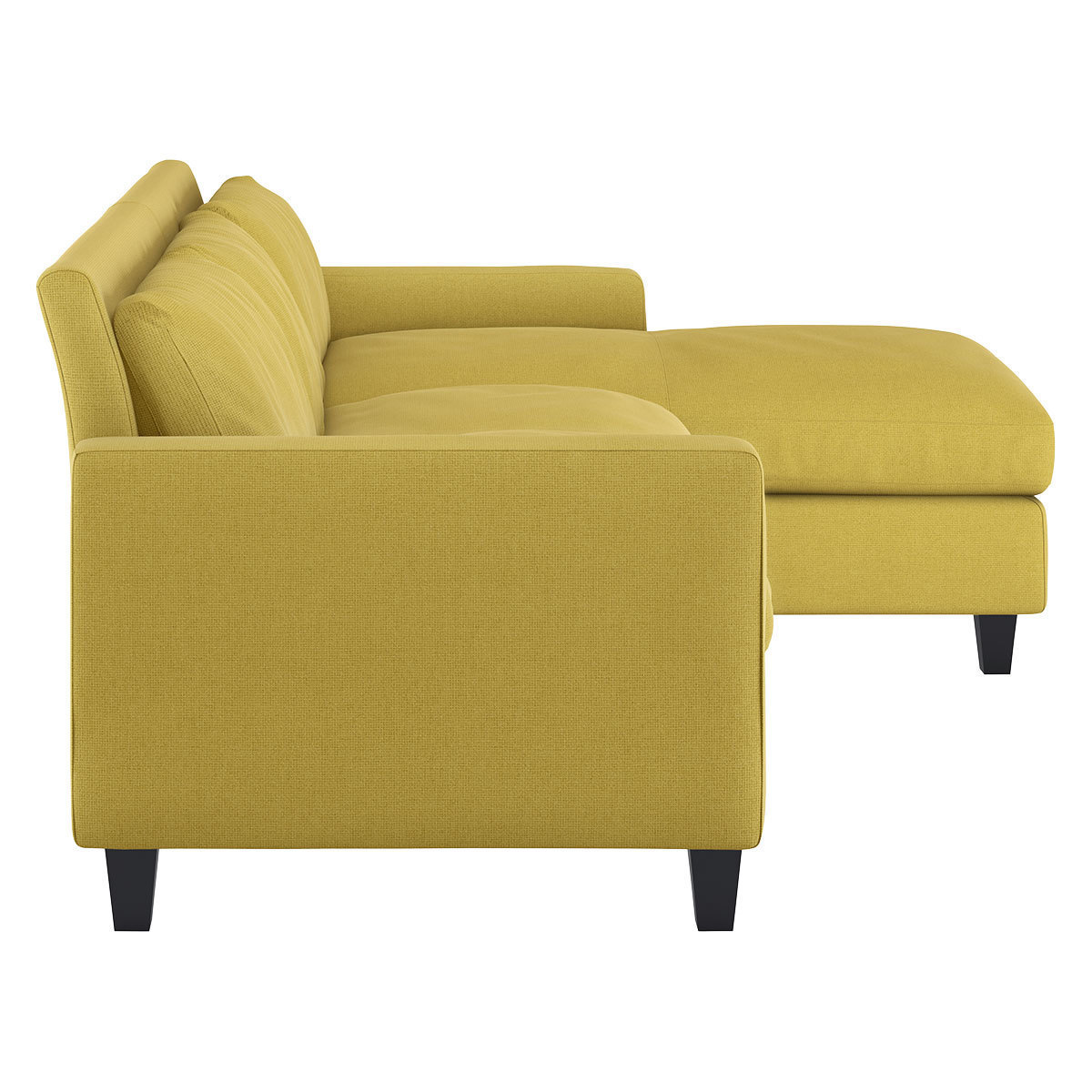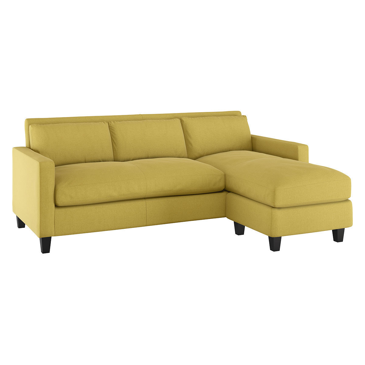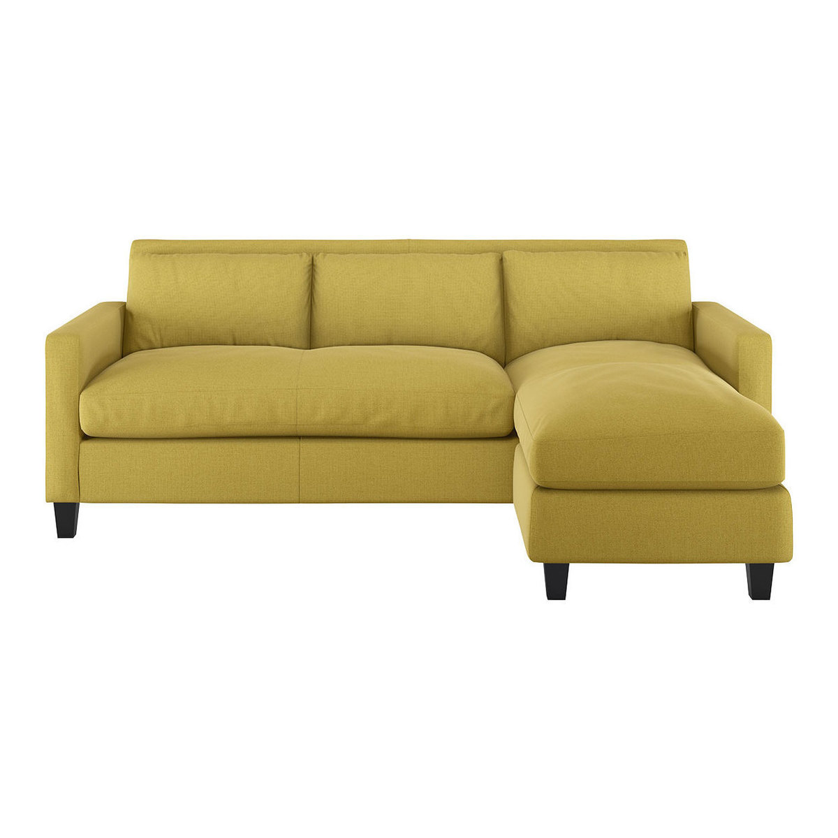 Lounge in style with this Italian made Chester 3 seater yellow chaise sofa, which features a slim profile and feather and fibre seat cushions, for a classic and timeless look. Designed by Matthew Hilton for Habitat, the 3 seater chaise sofa is fully upholstered in a removable, durable cover with dark stained feet. Part of the Habitat best selling classic Chester sofa range, available in leather and fabric options, in various sizes and colours and with oak stained or dark stained feet.