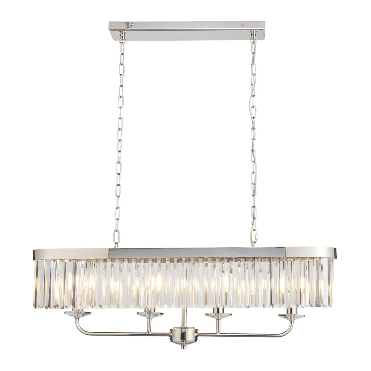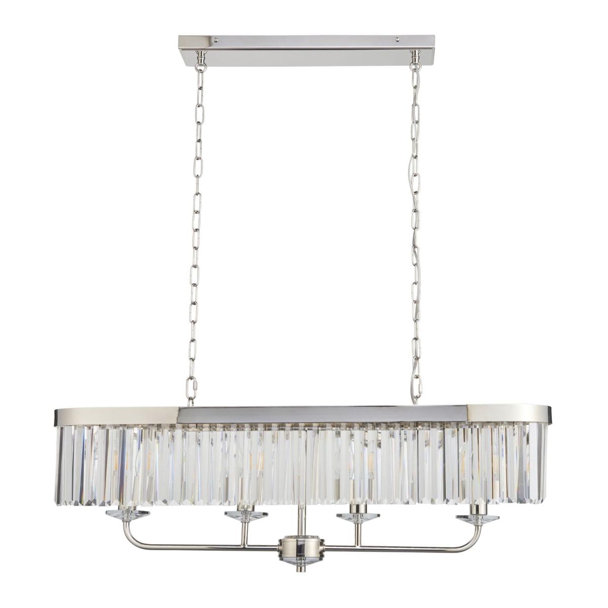 Chesterfield 4-light pendant bar, featuring a bright nickel-plated finish, decorative clear cut faceted glass and clear faceted bobèche glass detail. The Chesterfield 4-light pendant bar is a statement of elegance and sophistication. Featuring a bright nickel-plated finish, this stunning piece showcases decorative faceted glass that sparkles beautifully when illuminated. The faceted bobèche glass details add a touch of refinement, enhancing its luxurious design. Perfect for dining areas, kitchen islands or open-plan living spaces, the Chesterfield pendant bar offers both style and functionality. Its four-light design provides ample illumination, while its timeless aesthetic complements both classic and modern interiors. Chesterfield 4-light pendant bar, featuring a bright nickel-plated finish, decorative clear cut faceted glass and clear faceted bobèche glass detail. The Chesterfield 4-light pendant bar is a statement of elegance and sophistication. Featuring a bright nickel-plated finish, this stunning piece showcases decorative faceted glass that sparkles beautifully when illuminated. The faceted bobèche glass details add a touch of refinement, enhancing its luxurious design. Perfect for dining areas, kitchen islands or open-plan living spaces, the Chesterfield pendant bar offers both style and functionality. Its four-light design provides ample illumination, while its timeless aesthetic complements both classic and modern interiors.