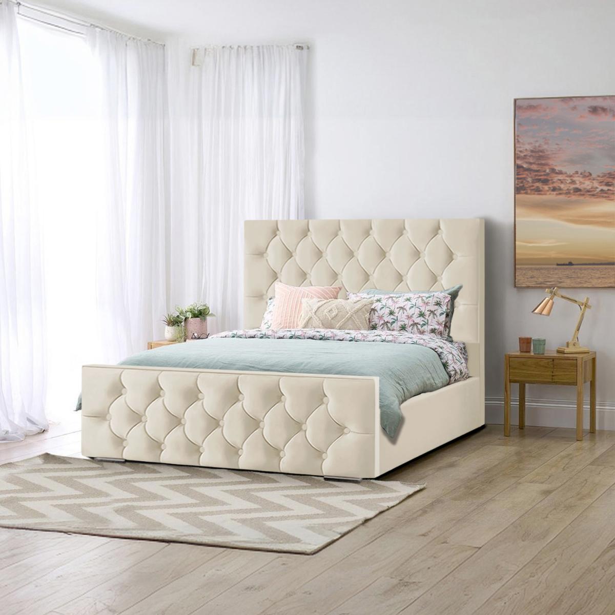This special designed bed is created in regards to modern style and gives you a look of latest trends to decorate your bedroom. The patterns created on this bed are based on unique but exquisite longitudinal margins that creates a graceful appearance. Furthermore, these elegant patterns are craved out on finest quality of velvet that enhance the aesthetic aspect of this bed. In addition, this bed also features a sublime experience of softness and coziness to offer you with a sound sleep that you have yearned for decades. Succinctly, our beds are the kinds of bed that you dream to possess and experience a relaxing slumber to eradicate all the tired of the weary days. Headboard Height 125cm
