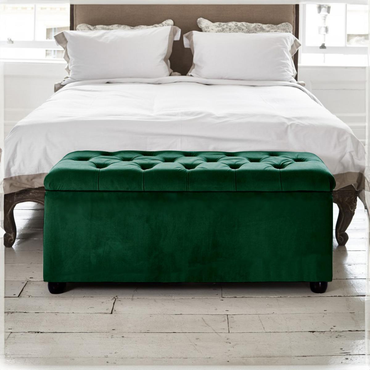 This product is made from strong wood with thick foam padding. The lid is deeply cushioned and perfect for seating, a beautiful accessory to go with beds. Upholstered in luxurious crushed and plush velvet. Available in different colours. UK Manufactured.