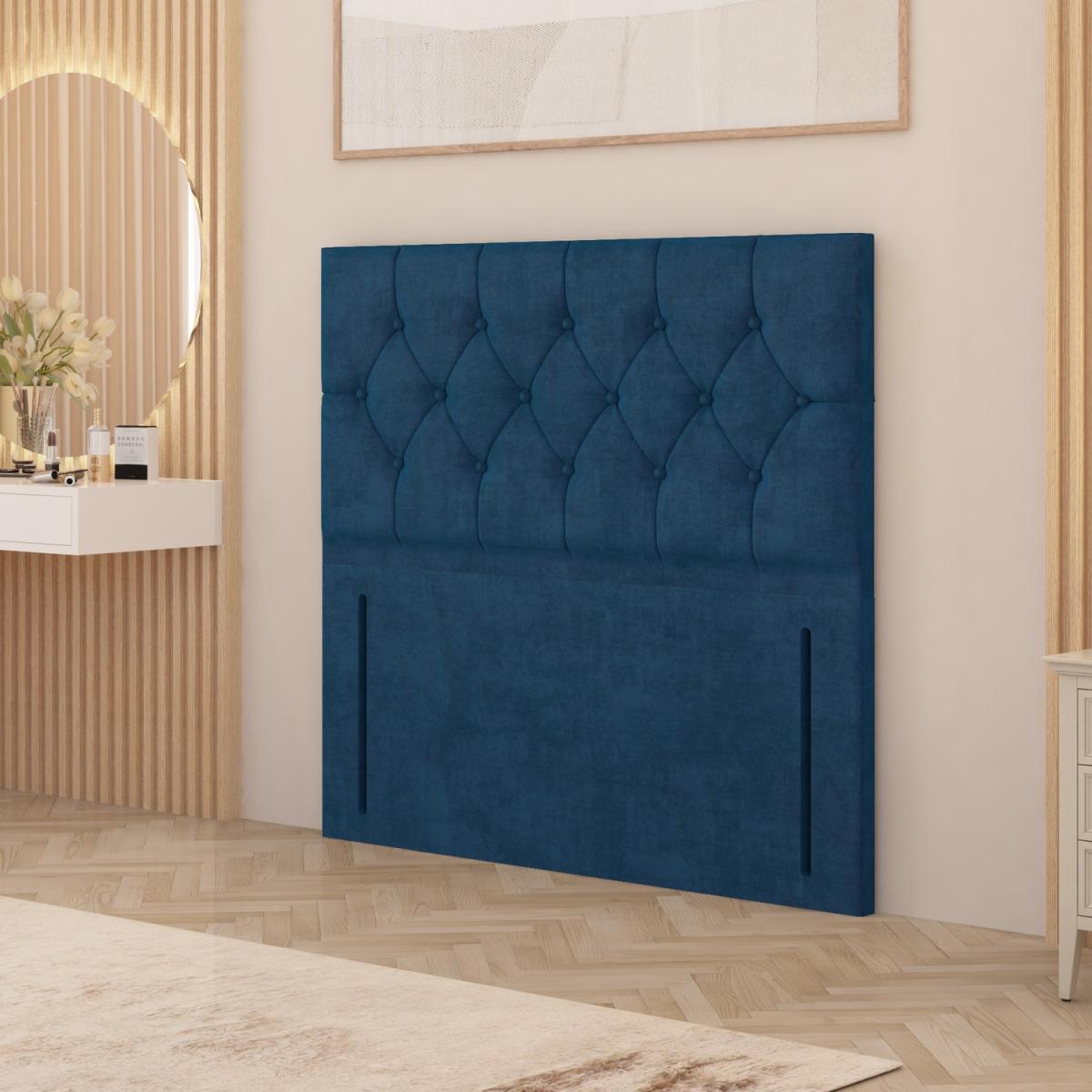 The Chesterfield Plush Velvet Floor Standing Headboard is the definition of refined luxury and contemporary craftsmanship. Upholstered in premium plush velvet, it features an intricate deep-padded chesterfield design with hand tufted button detailing for a sophisticated, tailored finish. At 54 tall, this floor standing headboard creates a striking focal point, offering both visual grandeur and superior back support for reading or relaxing in bed. Expertly handcrafted in the UK, the Chesterfield combines durability with elegance, perfectly complementing both modern and classic interiors. Designed to pair seamlessly with all standard UK divan bases. Headboard height from the floor is 54" 137cm, the front panel of the headboard is 32" 81cm. This headboard can be fitted into your existing base with screws or simply placed behind your bed and against the wall.