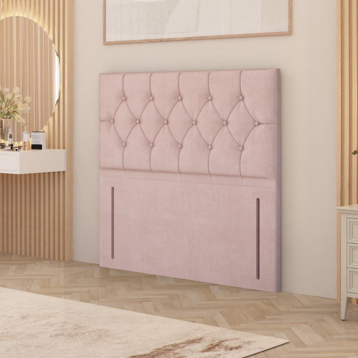 The Chesterfield Plush Velvet Floor Standing Headboard is the definition of refined luxury and contemporary craftsmanship. Upholstered in premium plush velvet, it features an intricate deep-padded chesterfield design with hand tufted button detailing for a sophisticated, tailored finish. At 54 tall, this floor standing headboard creates a striking focal point, offering both visual grandeur and superior back support for reading or relaxing in bed. Expertly handcrafted in the UK, the Chesterfield combines durability with elegance, perfectly complementing both modern and classic interiors. Designed to pair seamlessly with all standard UK divan bases. Headboard height from the floor is 54" 137cm, the front panel of the headboard is 32" 81cm. This headboard can be fitted into your existing base with screws or simply placed behind your bed and against the wall.