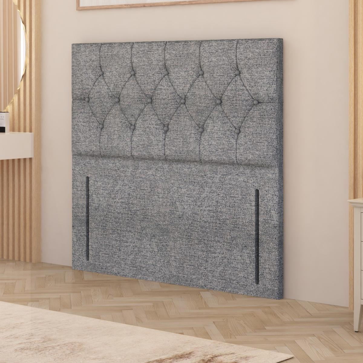 The Chesterfield Tweed Fabric Floor Standing Headboard is the definition of refined luxury and contemporary craftsmanship. Upholstered in premium Tweed Fabric, it features an intricate deep-padded chesterfield design with hand tufted button detailing for a sophisticated, tailored finish. At 54 tall, this floor standing headboard creates a striking focal point, offering both visual grandeur and superior back support for reading or relaxing in bed. Expertly handcrafted in the UK, the Chesterfield combines durability with elegance, perfectly complementing both modern and classic interiors. Designed to pair seamlessly with all standard UK divan bases. Headboard height from the floor is 54" 137cm, the front panel of the headboard is 32" 81cm. This headboard can be fitted into your existing base with screws or simply placed behind your bed and against the wall.