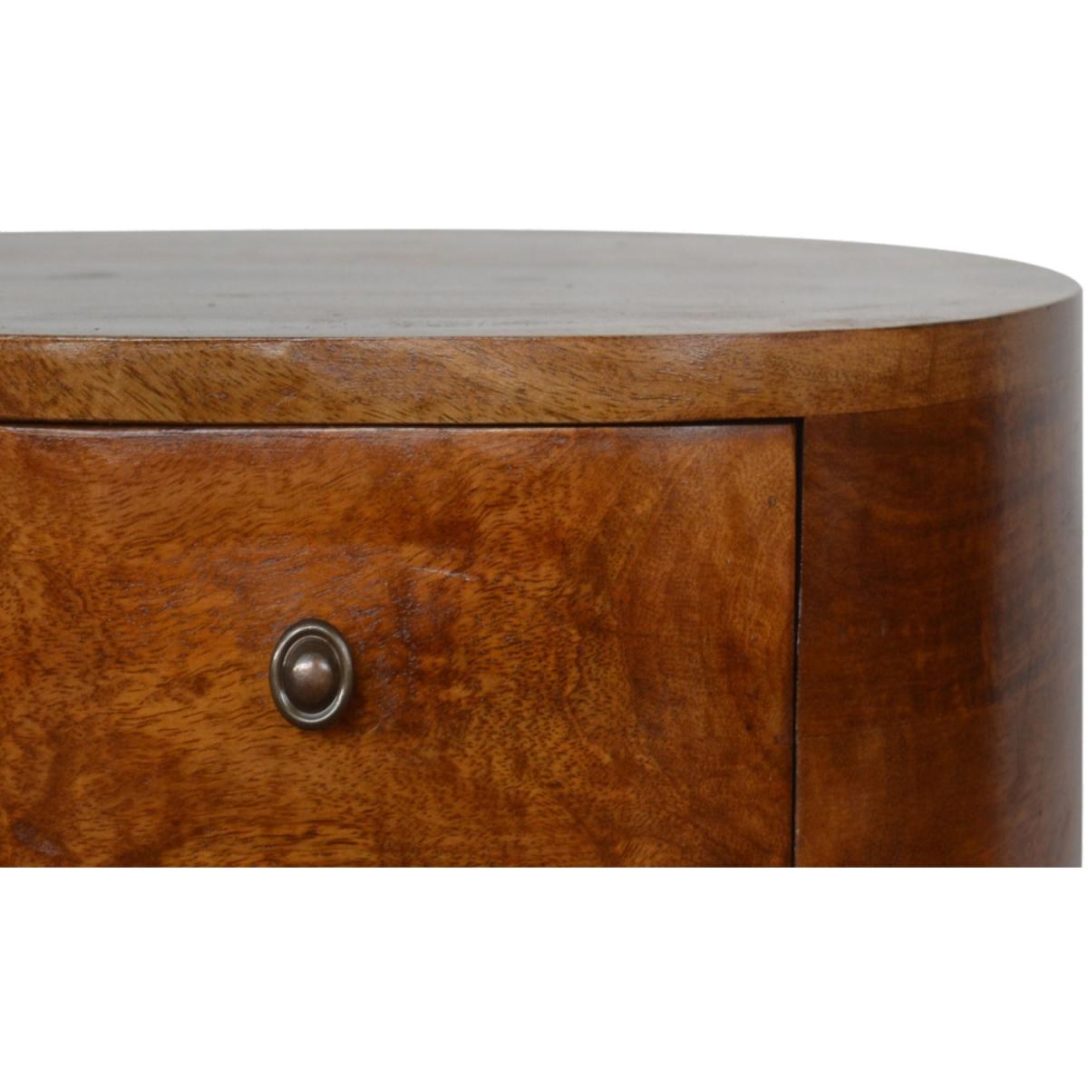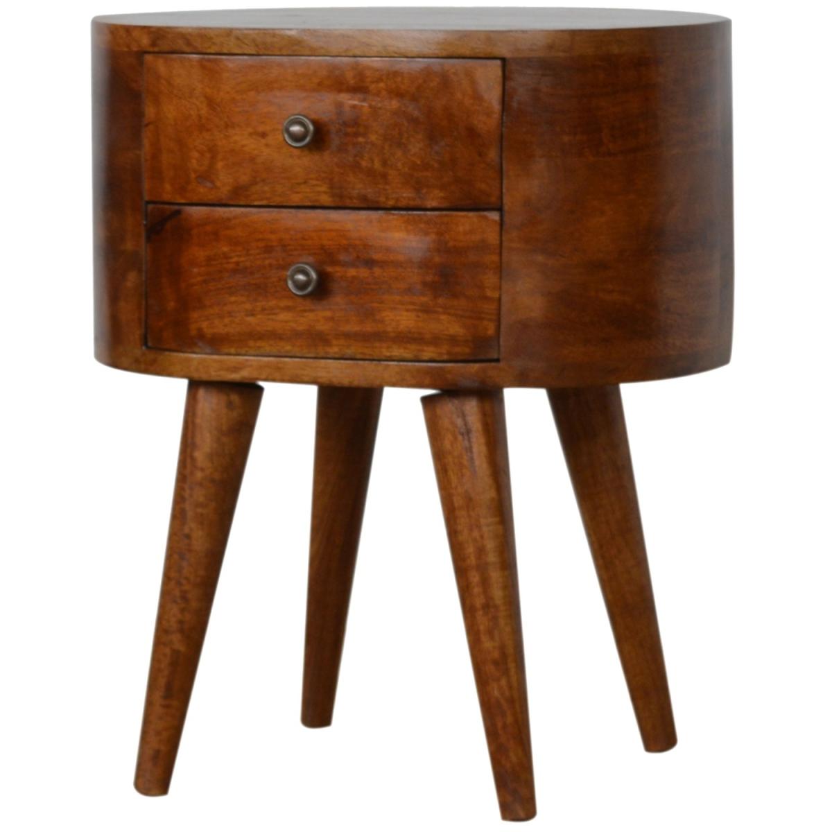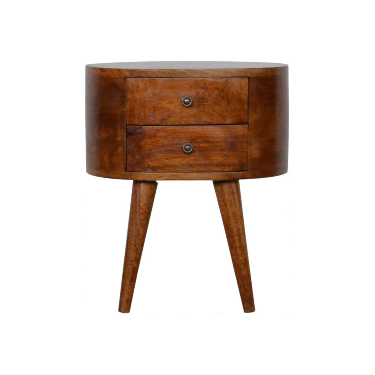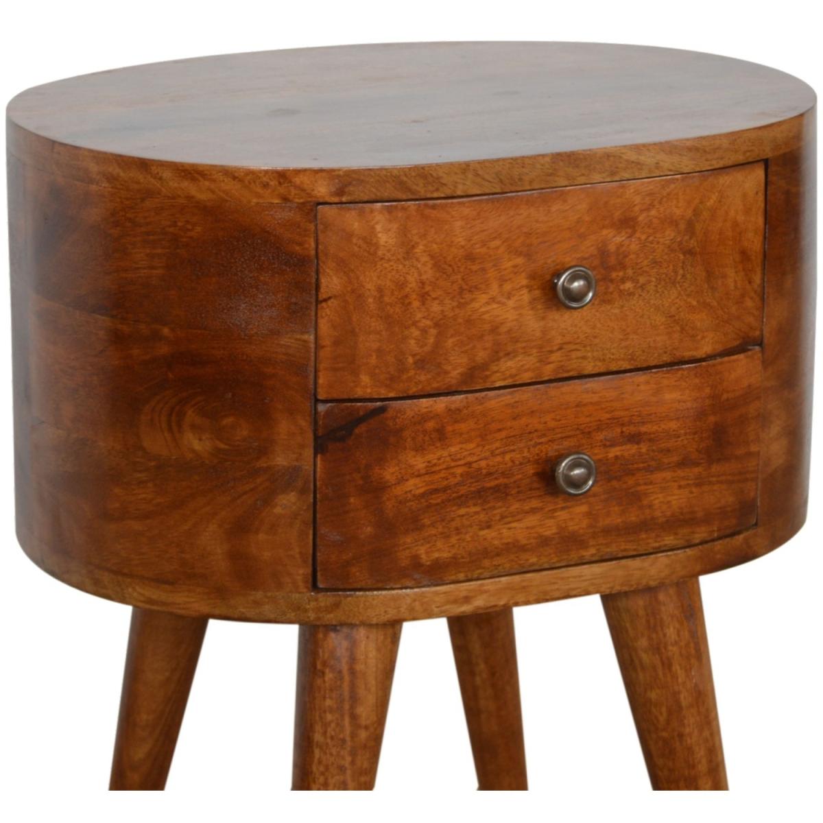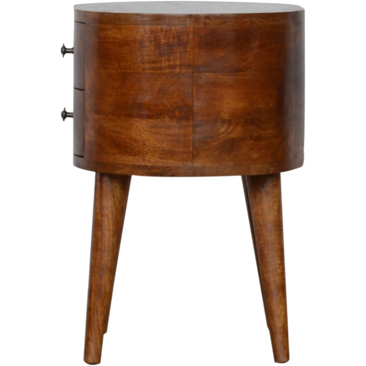 Chestnut Rounded Wood Bedside Table - Mango Wood