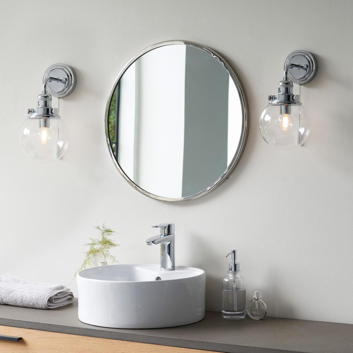 I really like this bathroom wall light pull cord shade for bringing a touch of industrial chic to your space. Its chrome finish and clear glass globe give it a clean, modern look that works well in contemporary and minimalist interiors, as well as in more eclectic or vintage-inspired schemes. Practical tip: it's ideal for adding a subtle, functional feature in bathrooms, especially when paired with other chrome fixtures. The transparent globe ensures it disperses light evenly, making it suitable for task lighting near mirrors or sinks. To style it effectively, consider pairing with matching chrome accessories or textured tiles to create a cohesive and stylish bathroom that’s both functional and visually appealing.