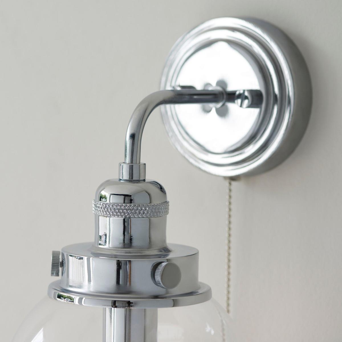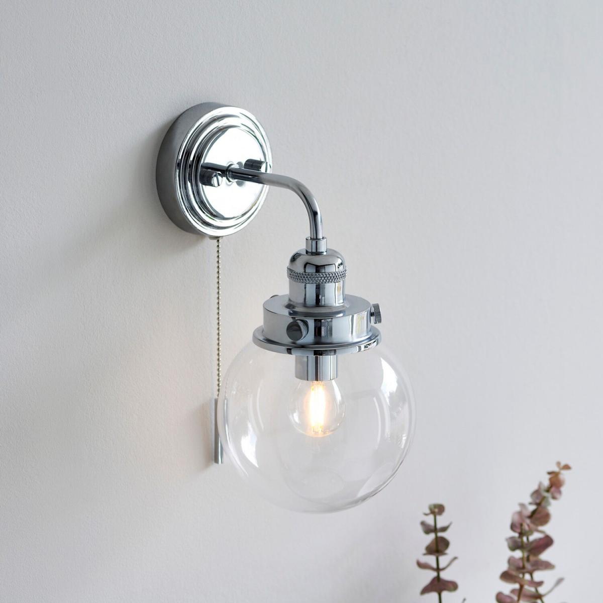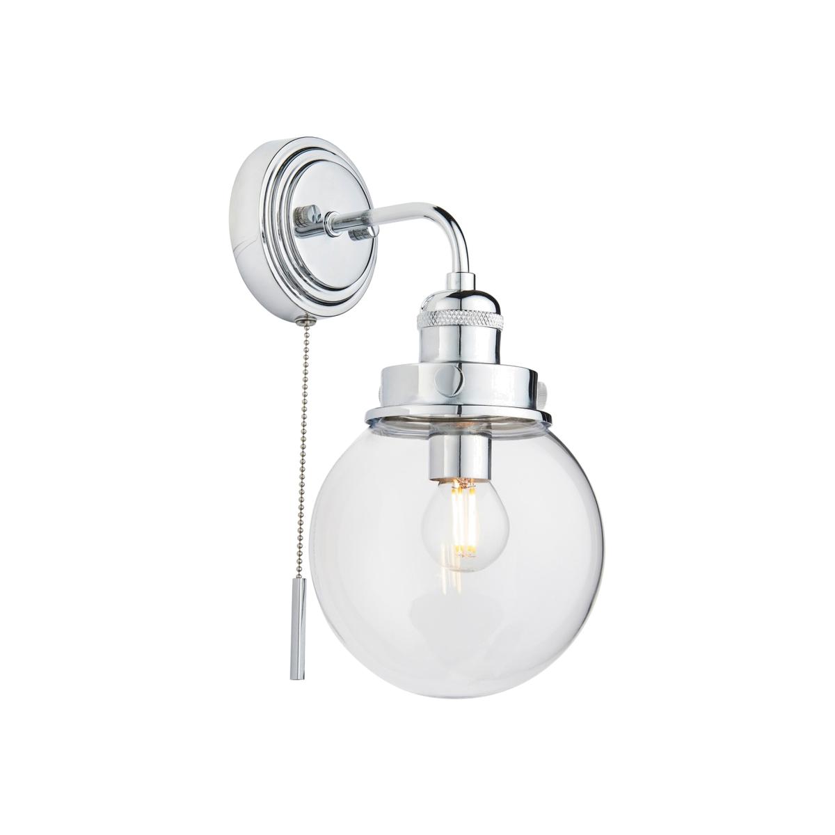 Cheswick Globe Bathroom Wall Light Pull Cord Shade IP44 - Chrome Plate & Clear Glass