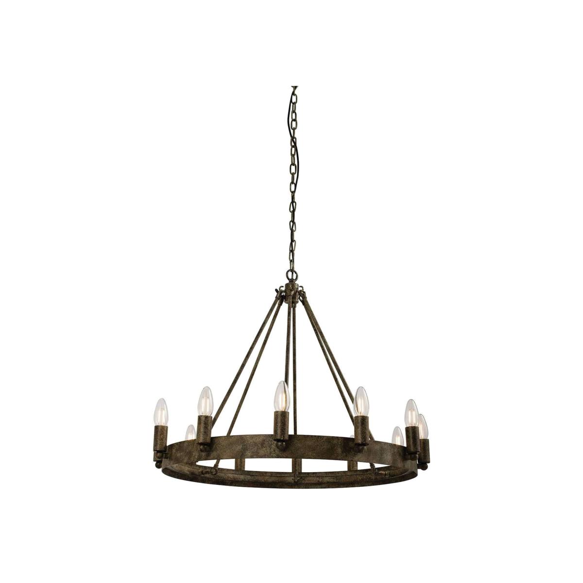 Large 12 light ceiling pendant comprising of a metal ring supporting 12 Candle style light fittings all in an aged metal effect paint. Height adjustable at time of fitting, suitable for use with LED lamps and dimmable
