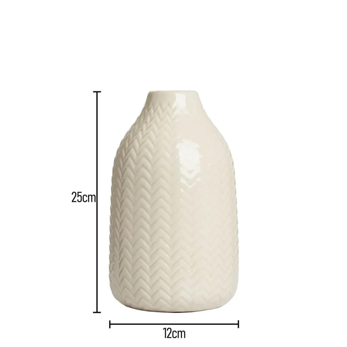 Introduce a touch of timeless elegance to your space with our Chevron Ceramic Vase in Cream, a classic piece that adds a sense of sophistication. The chevron pattern creates a visually appealing texture, while the creamy hue complements any decor style. Ideal for any living room or bedroom, this vase can be styled on bedside tables or sideboards.