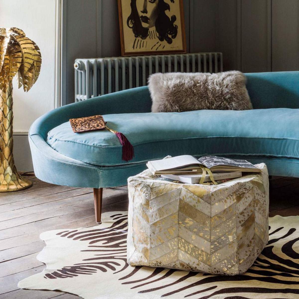 I love the chevron cowhide pouffe for adding texture and pattern to both contemporary and eclectic interiors. It works particularly well in living rooms with muted colour palettes, where it can serve as a statement piece or a versatile footrest. It’s practical too-top it with a tray to turn it into a casual side table or use it as extra seating when needed. To style it effectively, pair it with plush cushions or a throw to soften its bold pattern, and consider placing it on a neutral rug to anchor the look. Its natural cowhide finish also introduces a tactile element, making it a functional yet stylish addition to a variety of schemes.