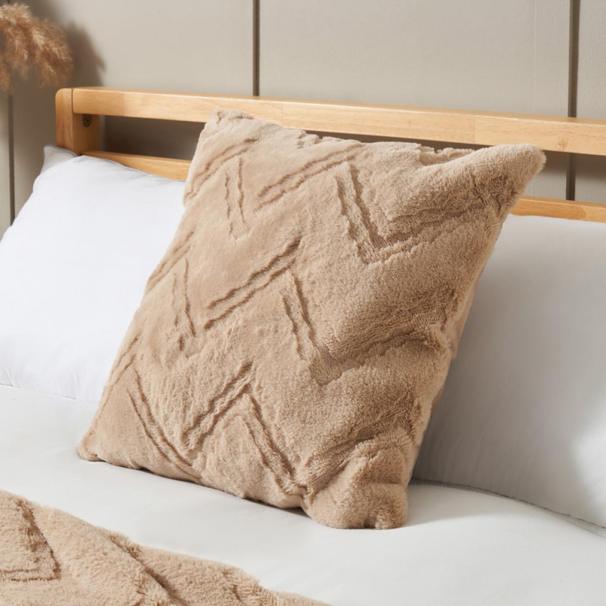 Elevate your soft furnishings with the Chevron Faux Fur Cushion in Natural, a tactile treat that blends texture and tone beautifully. Its chevron pattern adds subtle movement, while the faux fur finish brings warmth and softness to any setting. Measuring 45x45cm, it s a versatile piece that works across sofas, beds and accent chairs.